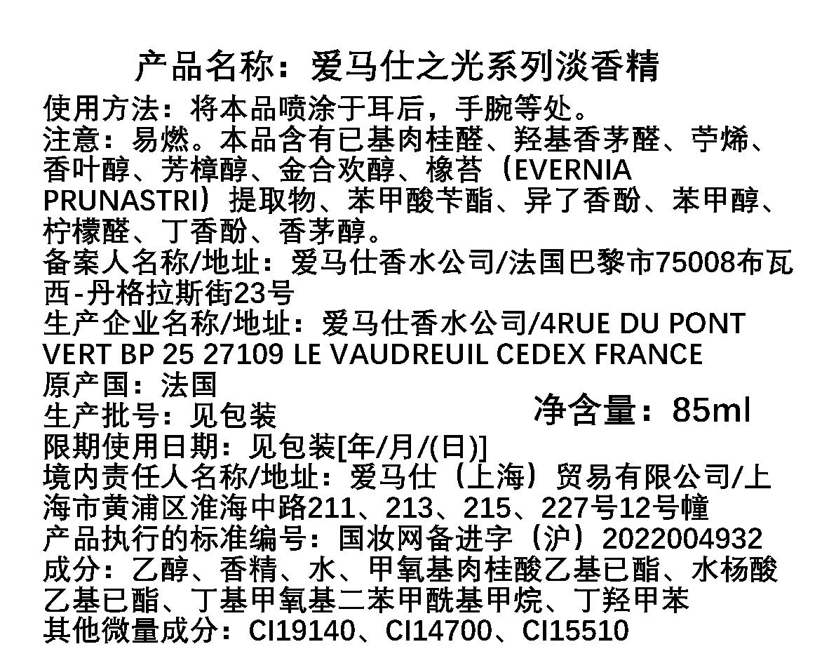 Hermes爱马仕 爱马仕之光香水
