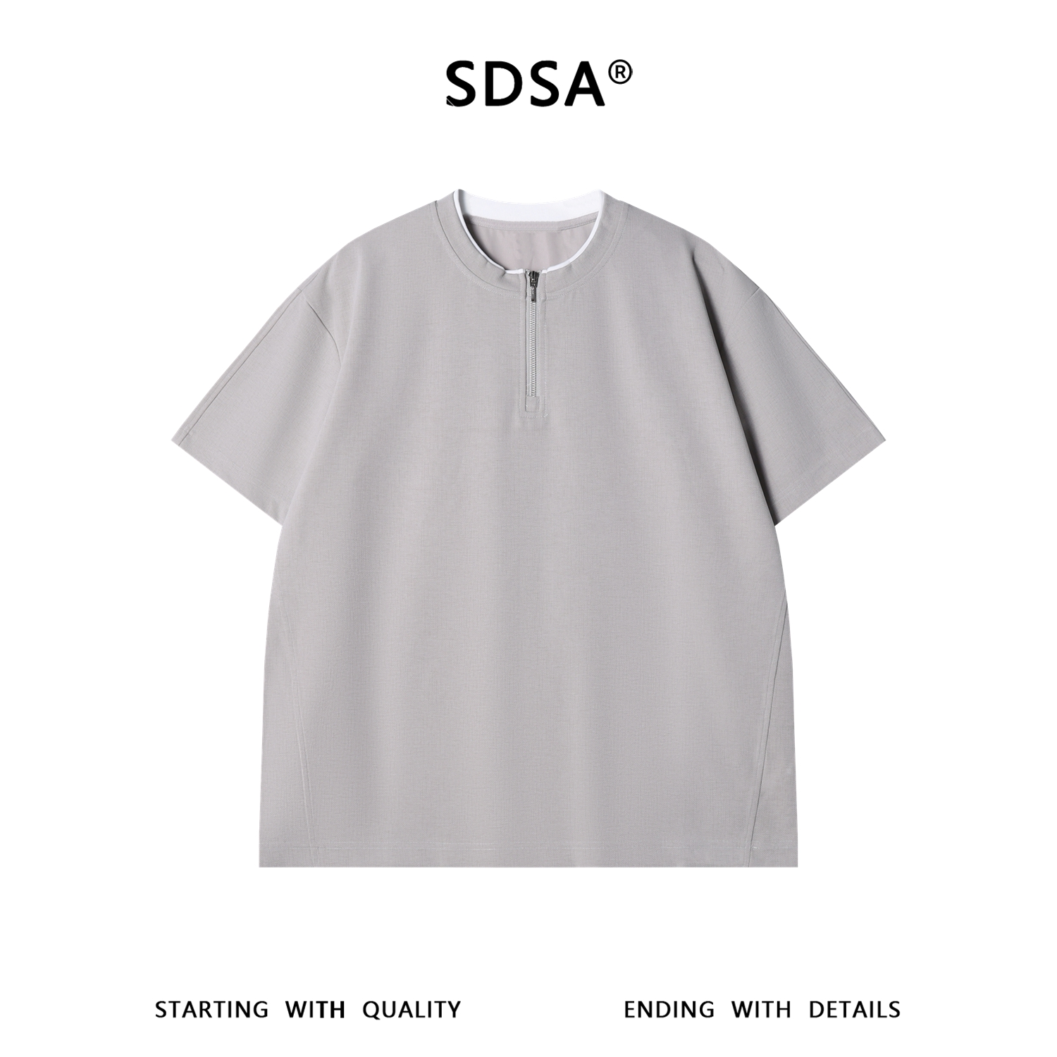 SDSA男装2026新款轻奢半拉链立领撞色边短袖T恤宽松挺括休闲上衣