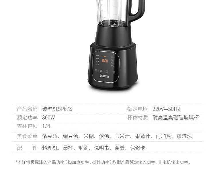 苏泊尔(SUPOR)小型破壁机家用多功能预约加热料理机豆浆机榨汁机果汁搅拌辅食机 SP67S【送礼优选】