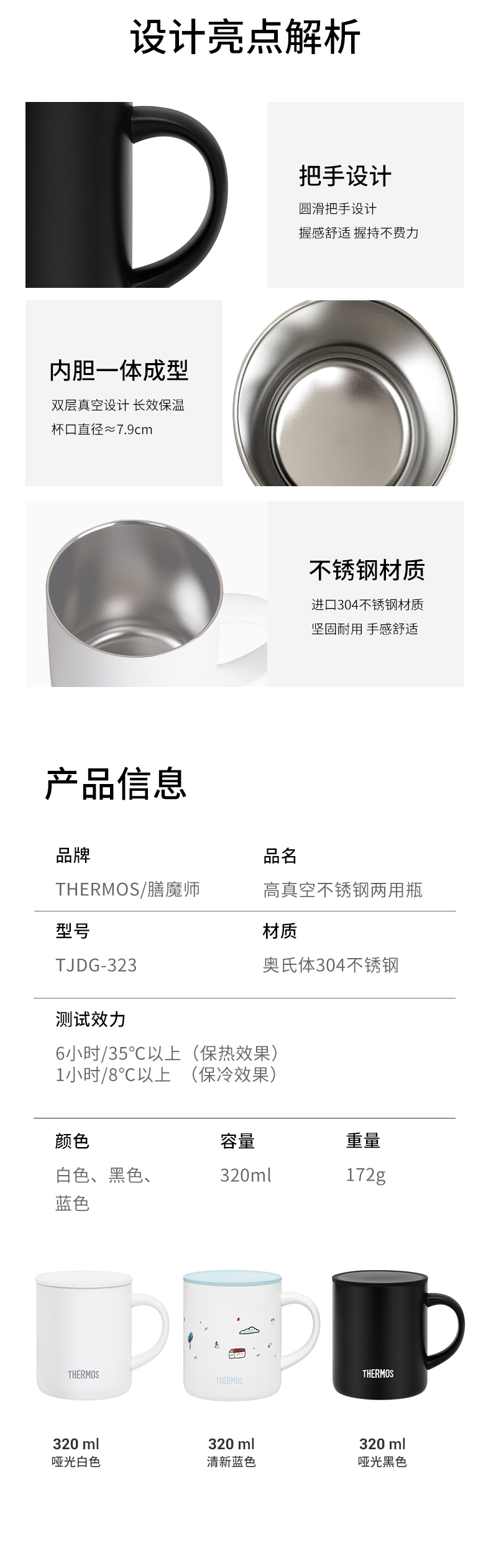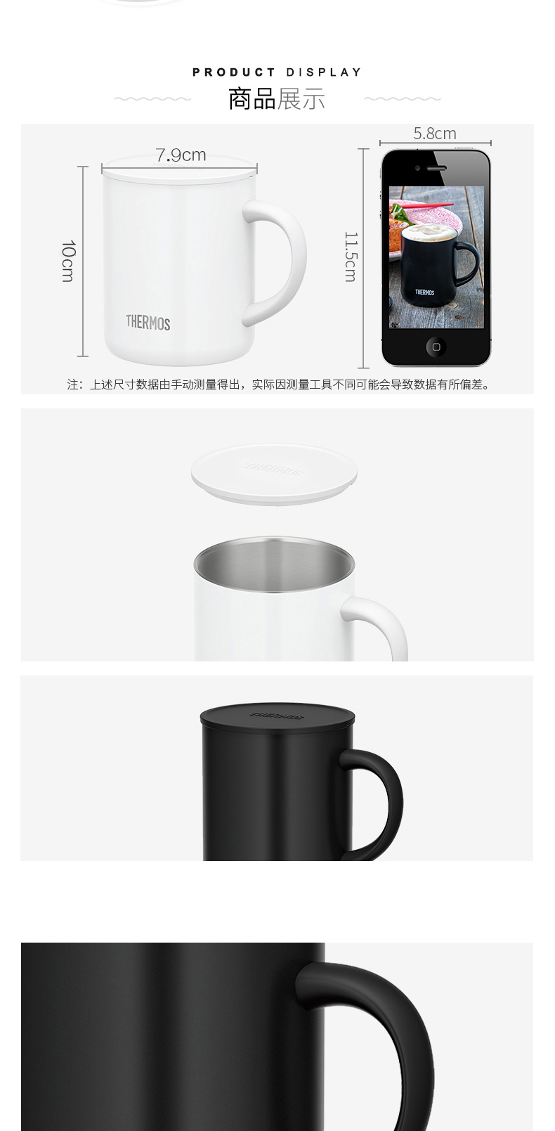THERMOS膳魔师马克保温杯时尚简约带盖咖啡牛奶办公马克水杯白色TJDG-323