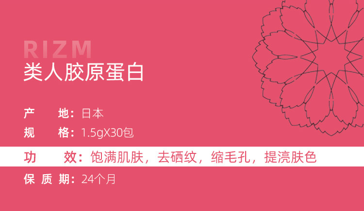 日本Rizm人源胶原蛋白水解粉胶原蛋白粉肽粉搭配童颜丸