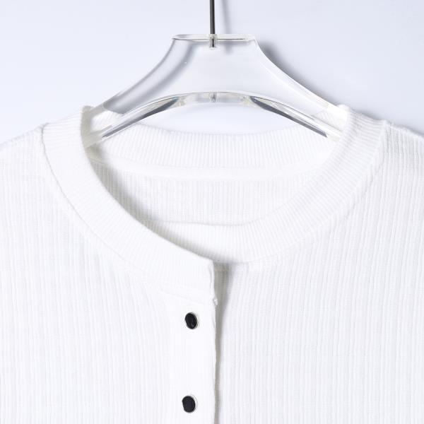 T3706夏季高级感新款男士十字条纹半纽扣短袖T恤舒适百搭潮牌圆领上衣