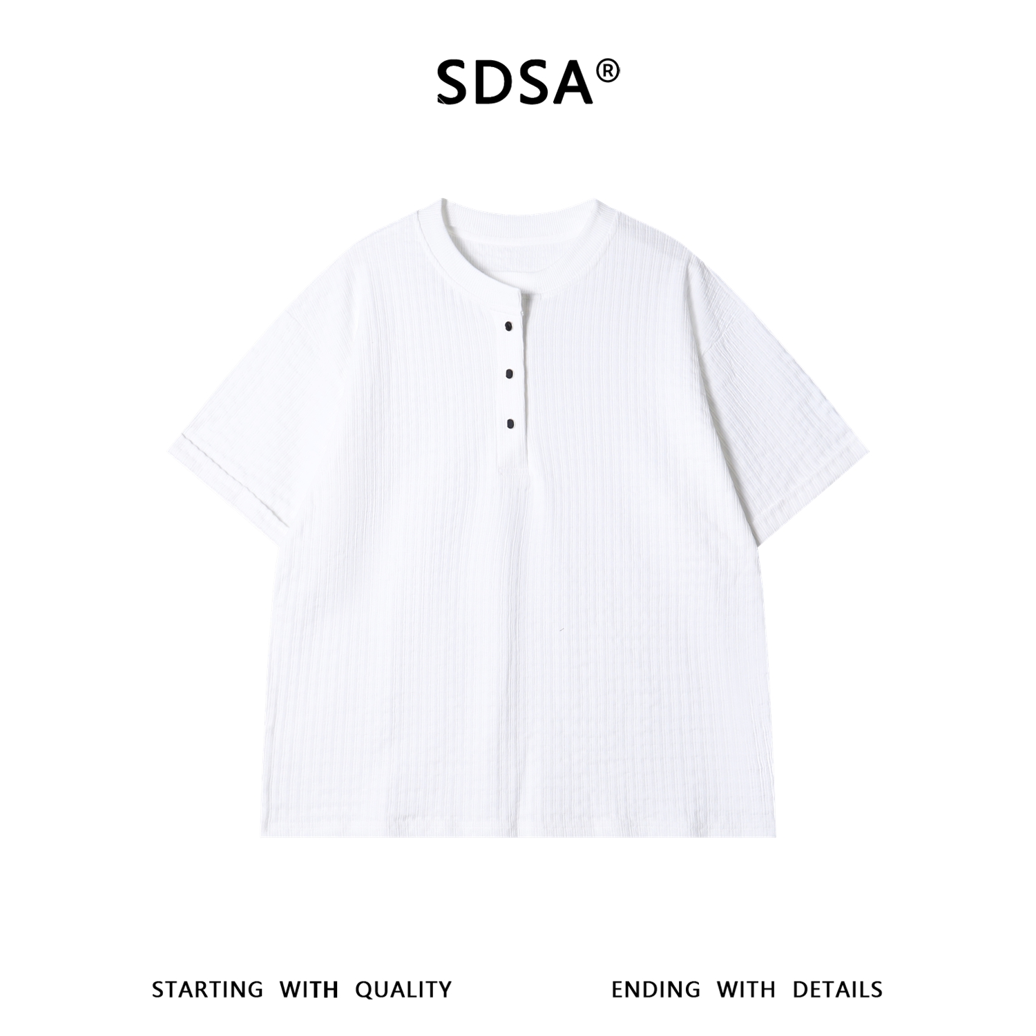 SDSA男装2026新款肌理感半纽扣亨利领短袖T恤宽松圆领休闲上衣