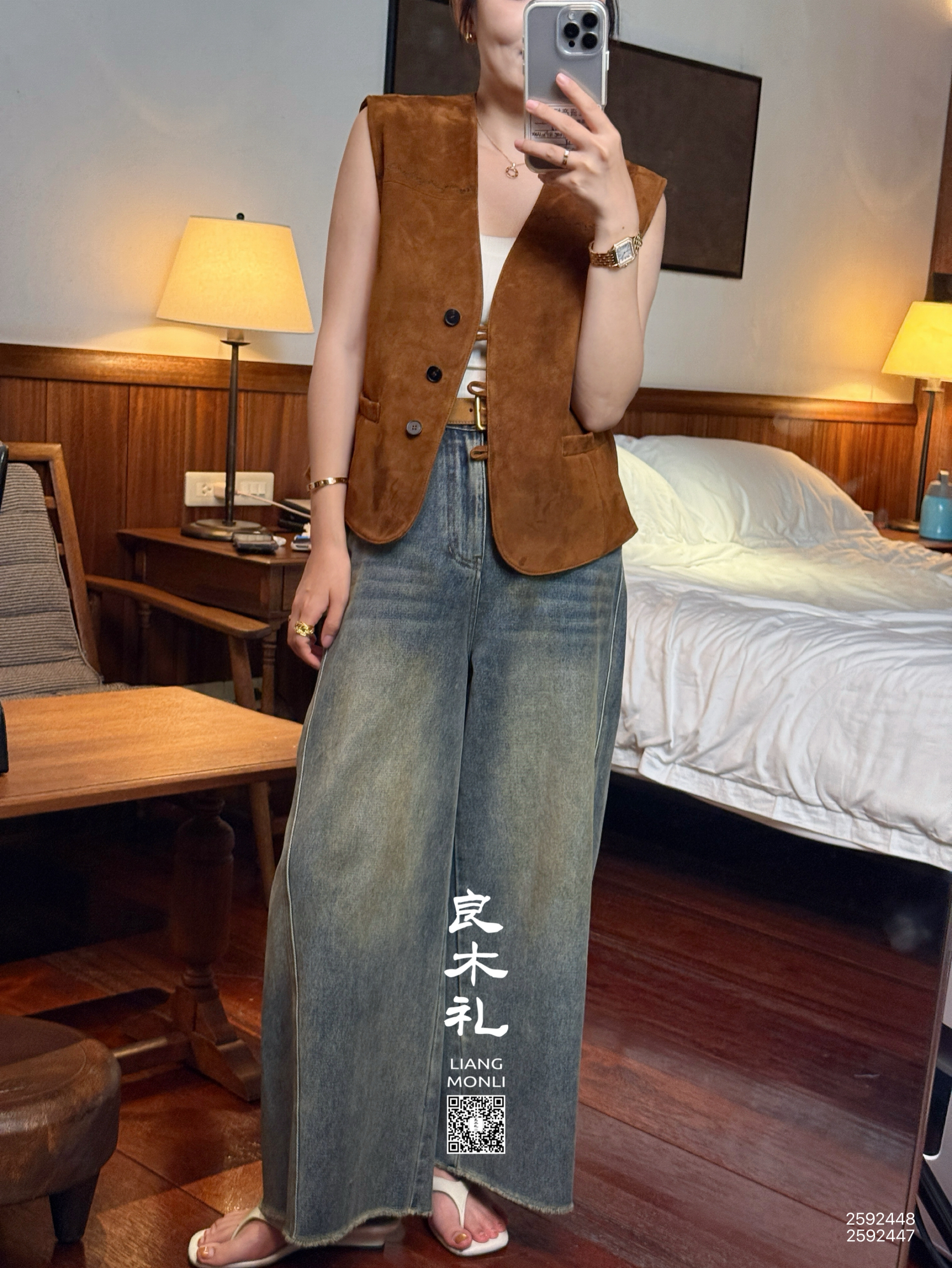 【卖完不补】良木礼亚麻马甲连衣裙套装(2E036-027)