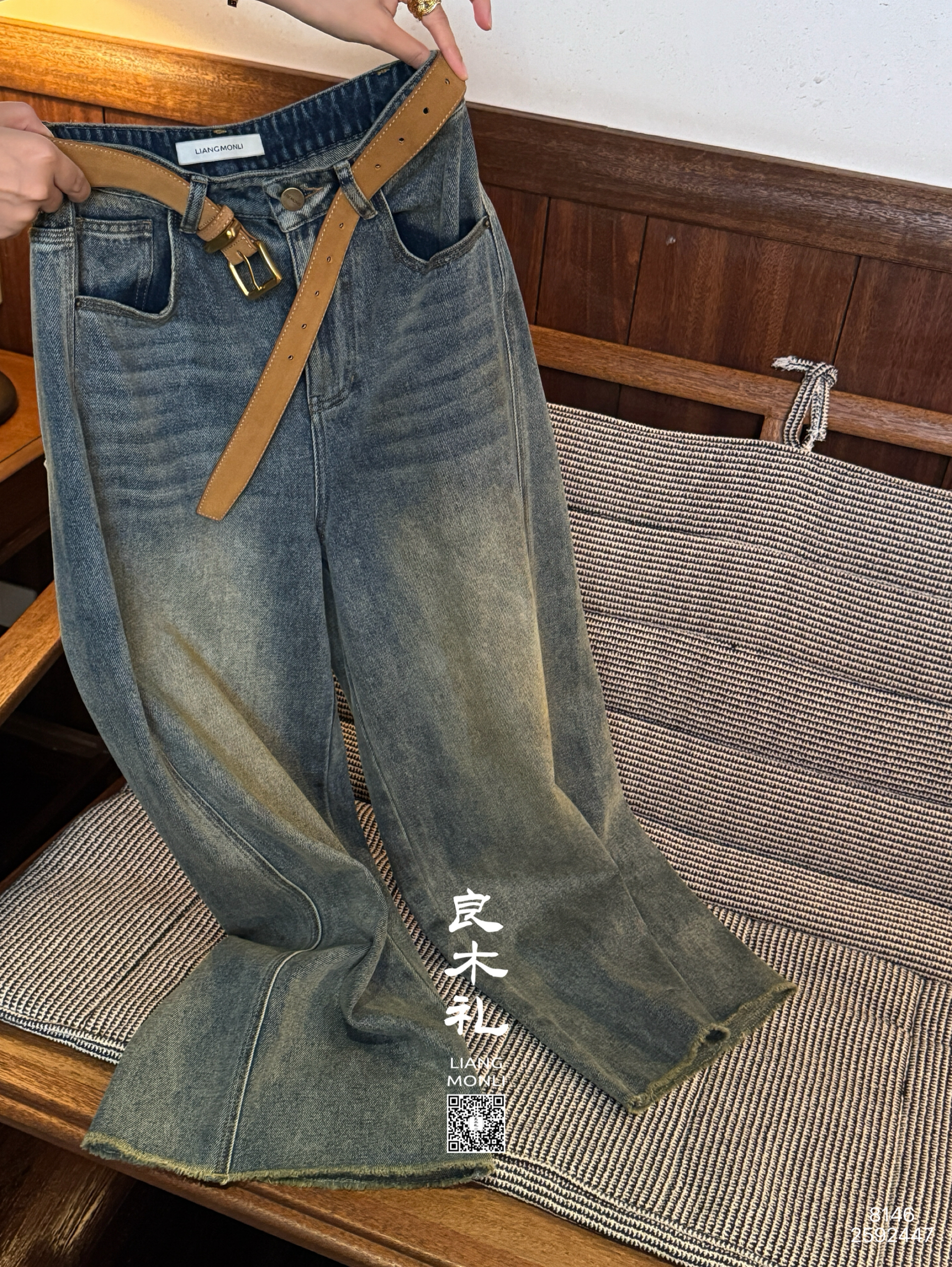【特价不退不换】良木礼牛仔九分裤(腰带)(Q2592447)