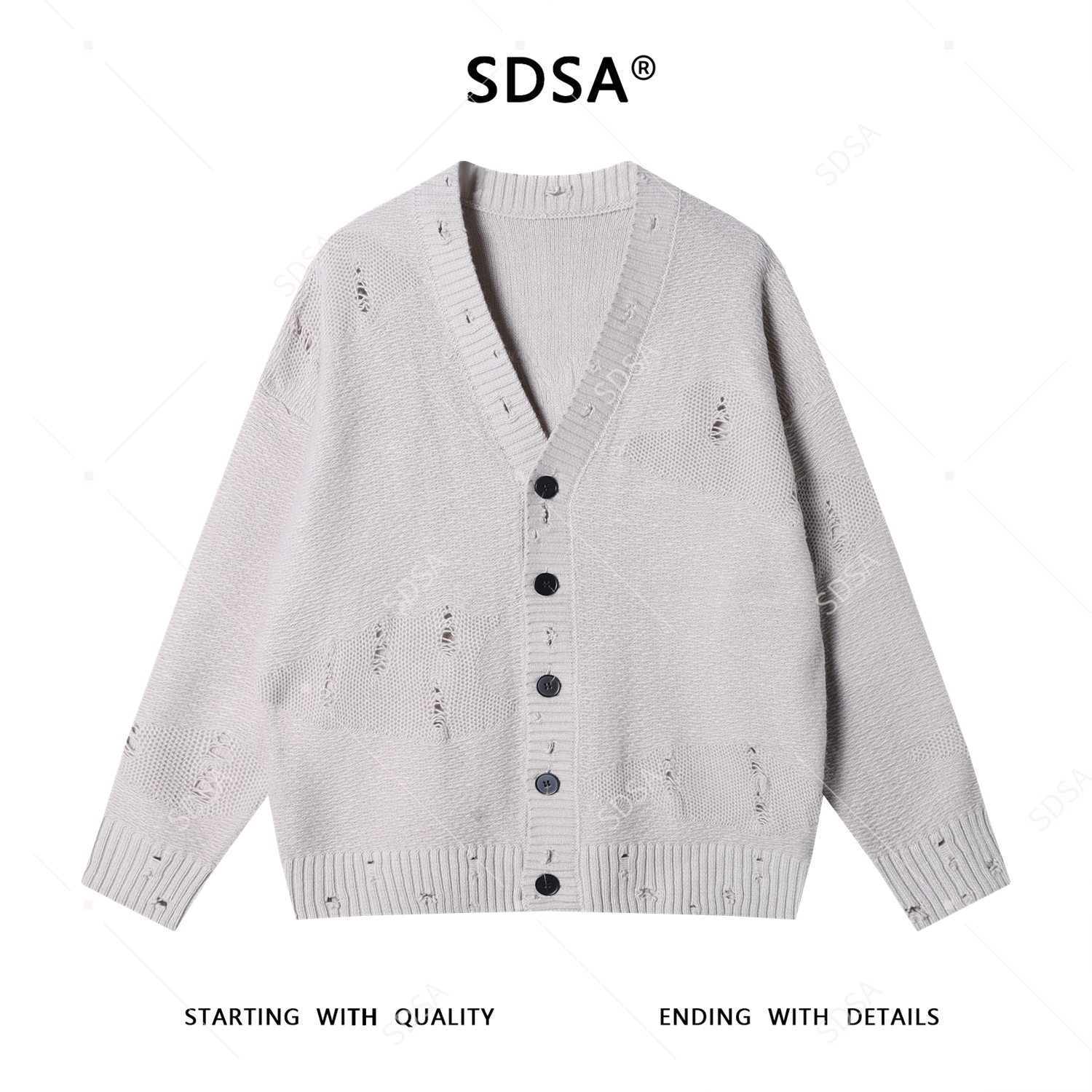 243019SDSA秋冬新款痞帅男装美式勾破纯色纽扣开衫毛衣百搭开衫针织衫