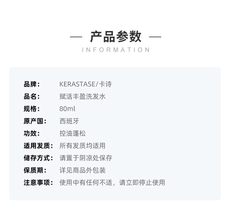 【秒杀】卡诗白金赋活丰盈洗发水蓬松清洁无硅油洗发露80ml
