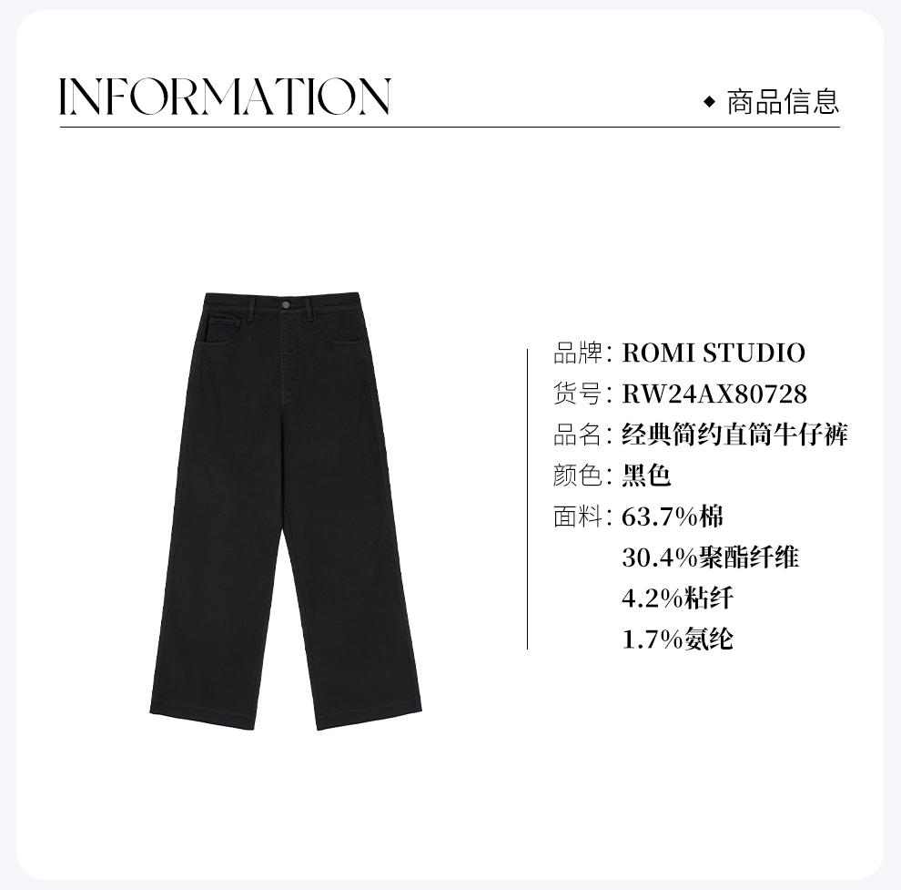 ROMI STUDIO“抓绒牛仔”小太阳底抓绒弹力直筒黑牛仔裤RW24AX80728【现货】