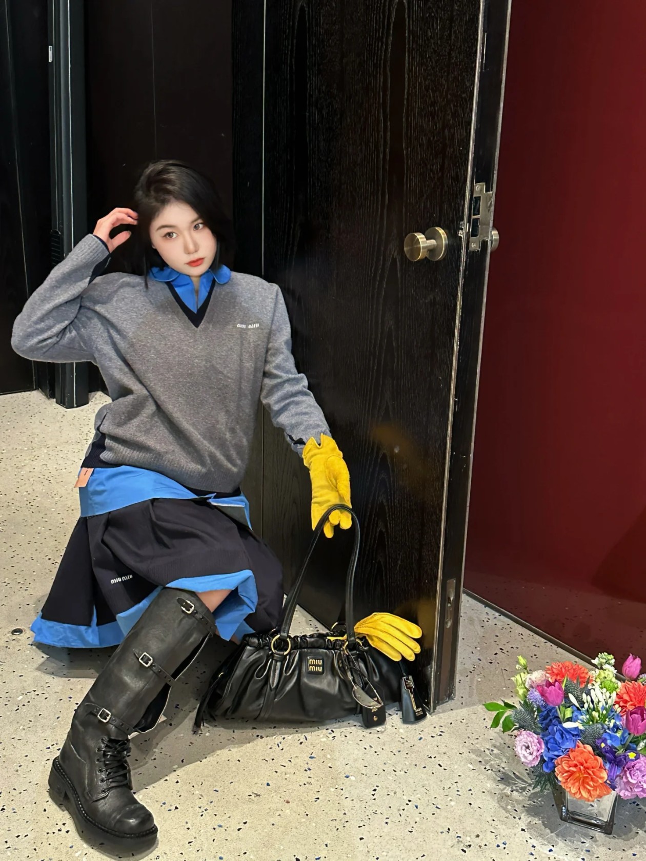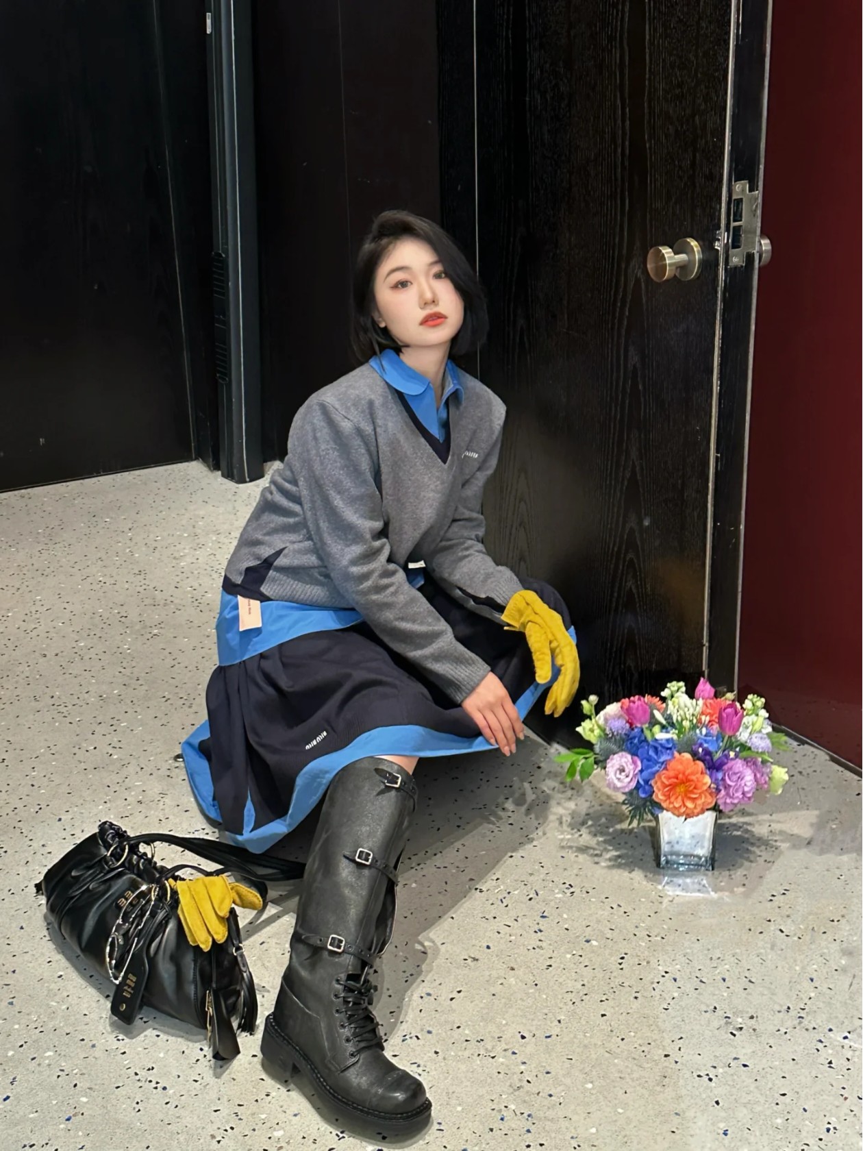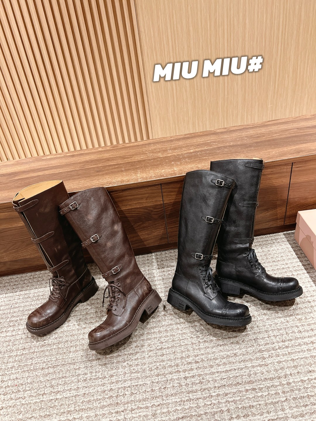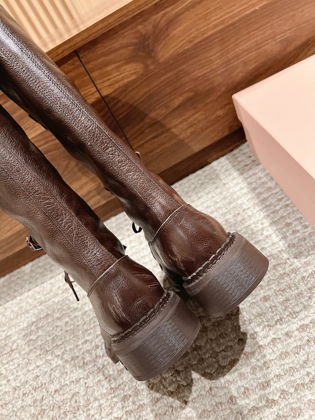 缪缪秋冬走秀款 机车风复古长靴 酷飒酷飒的 延续了爆款风格