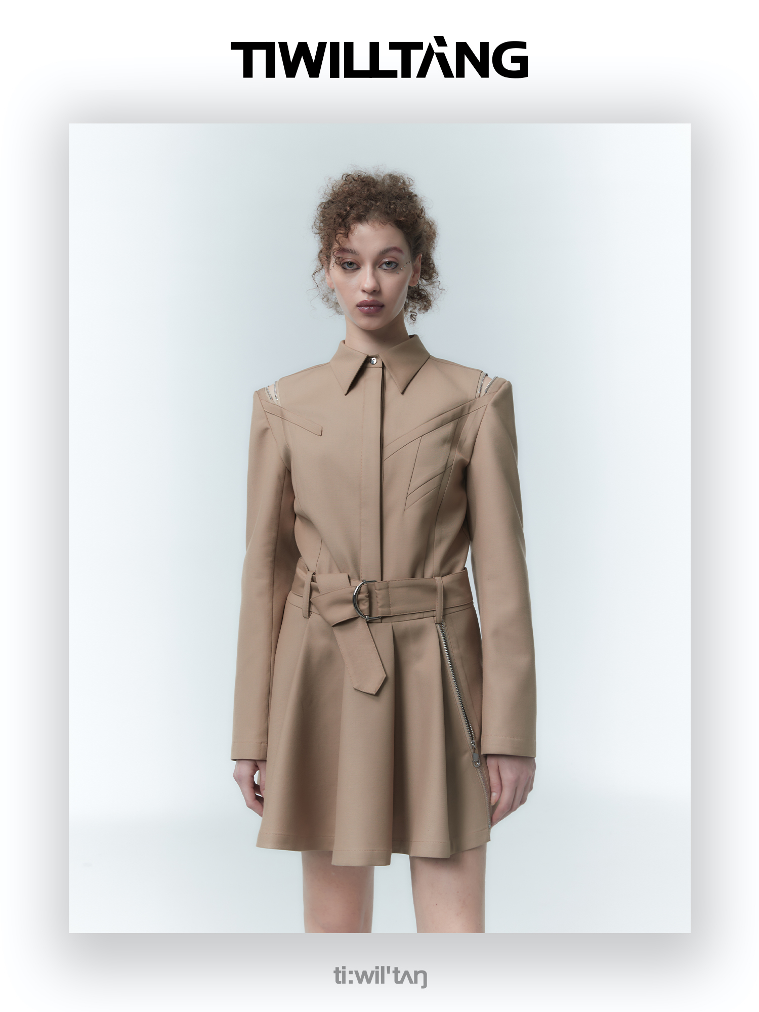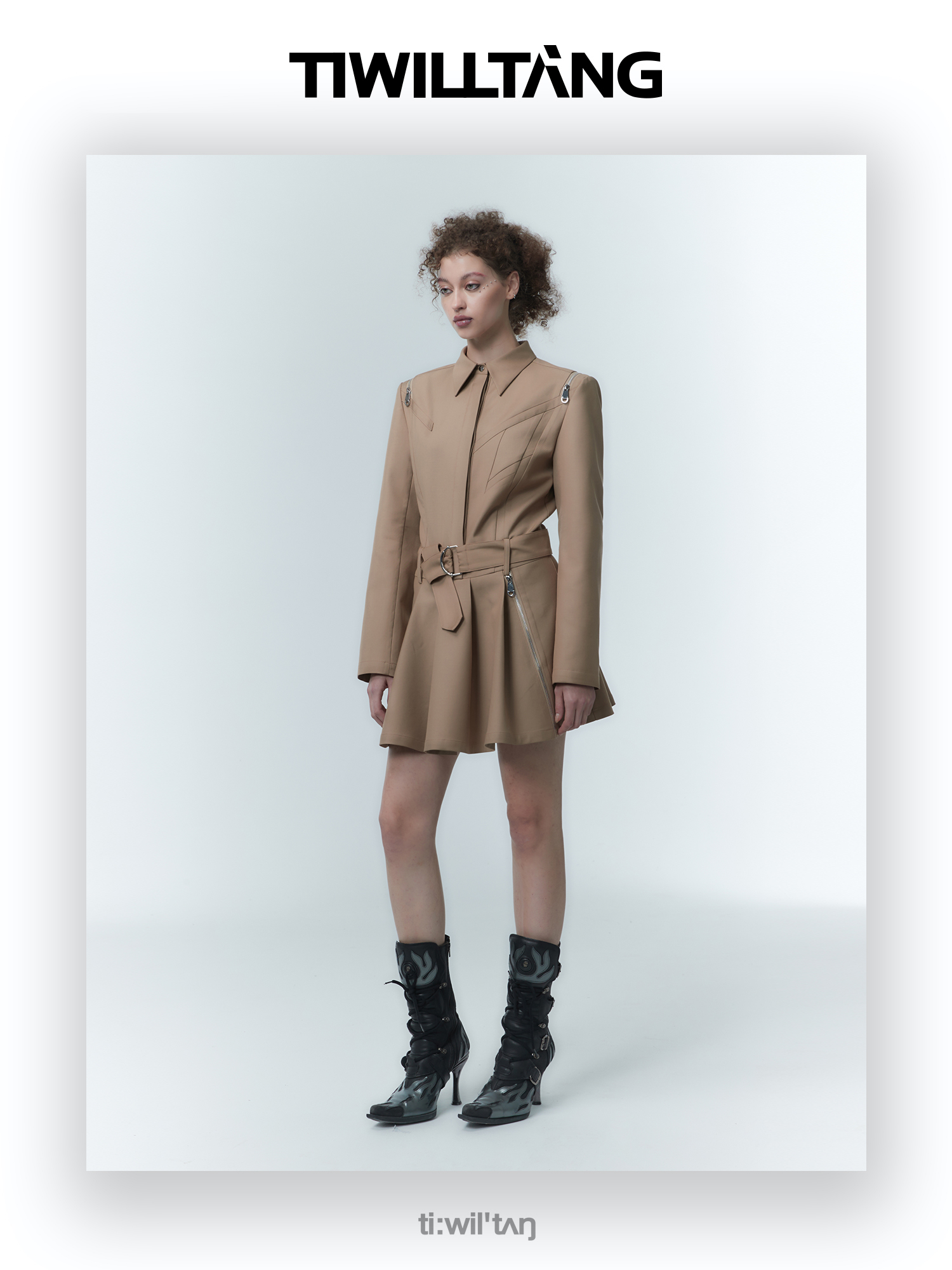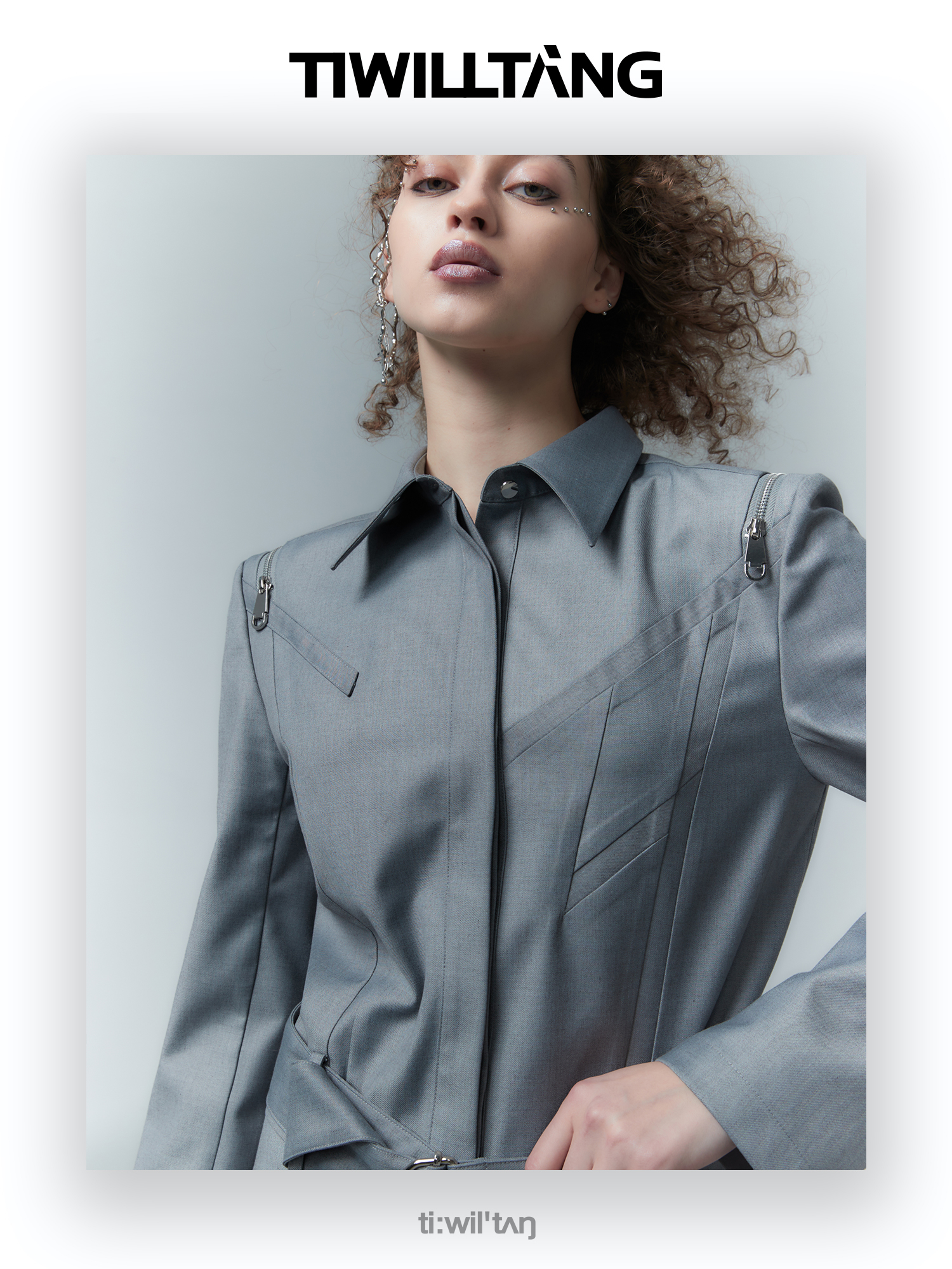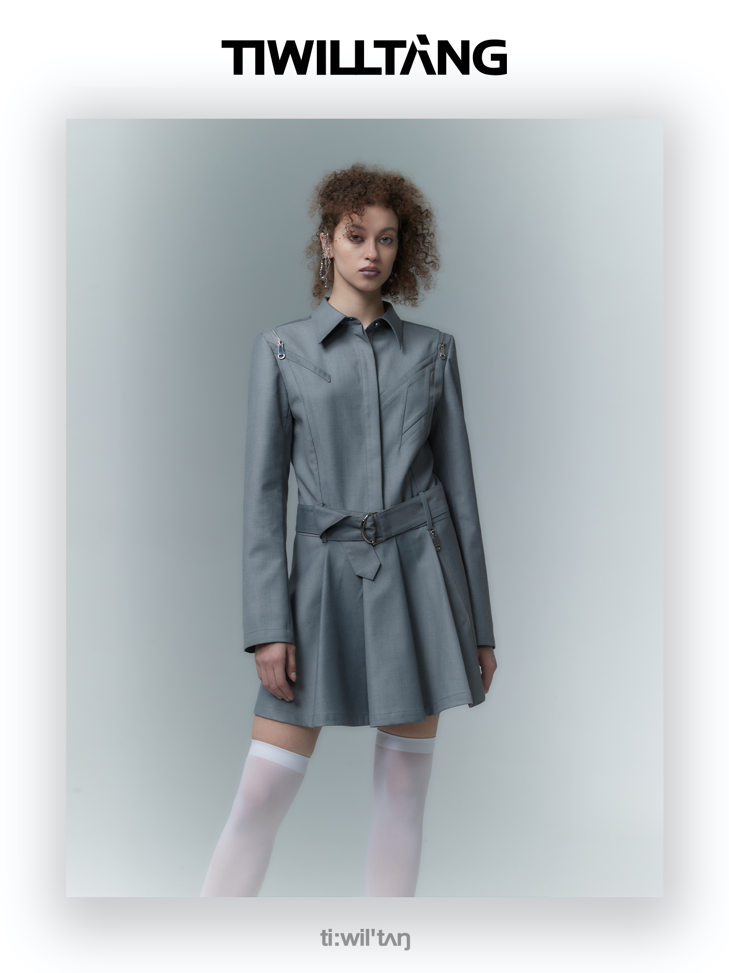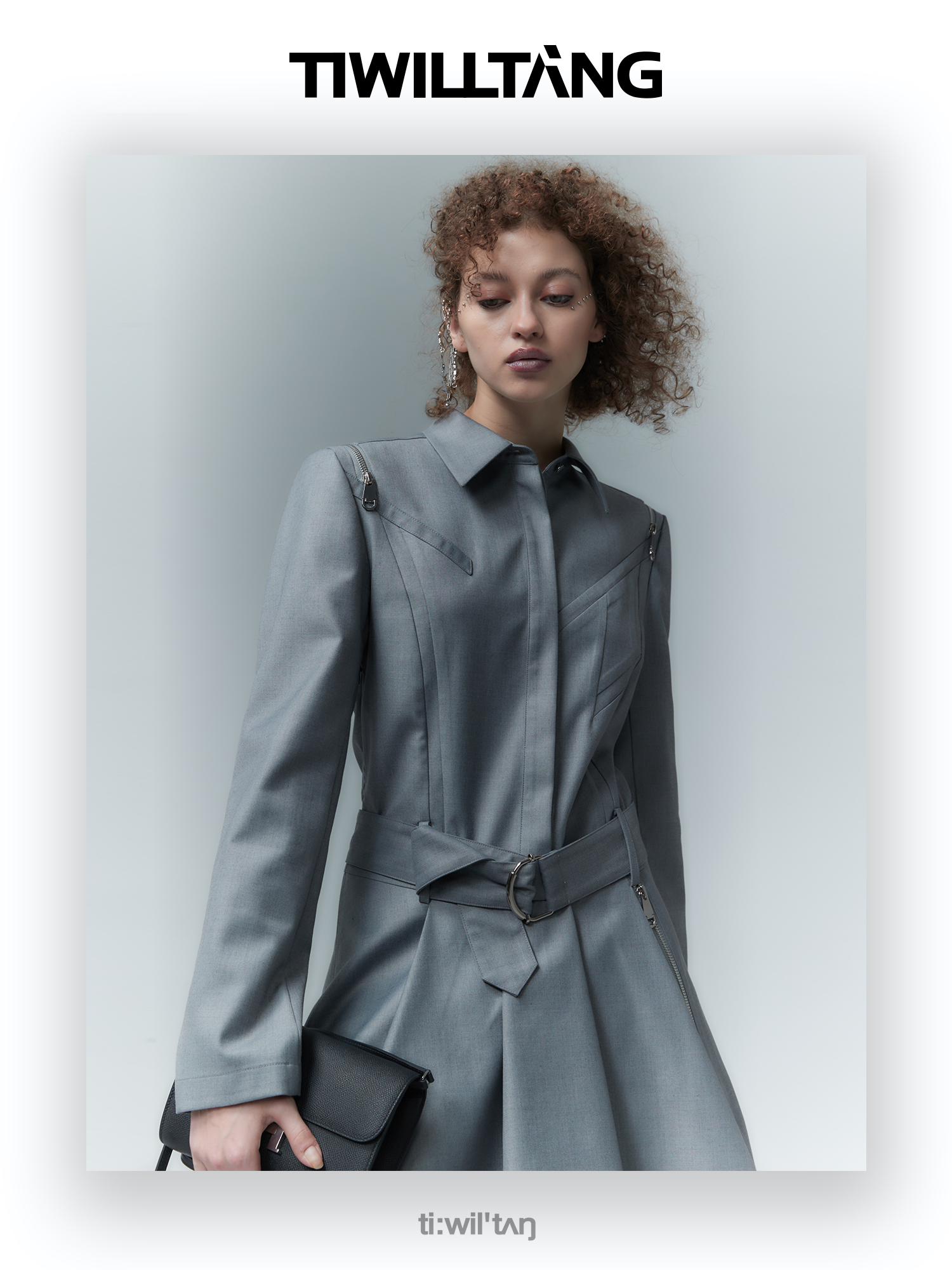 TIWILLTANG启世录“烟色玫瑰”拉链分割连衣裙女春季长袖衬衫裙