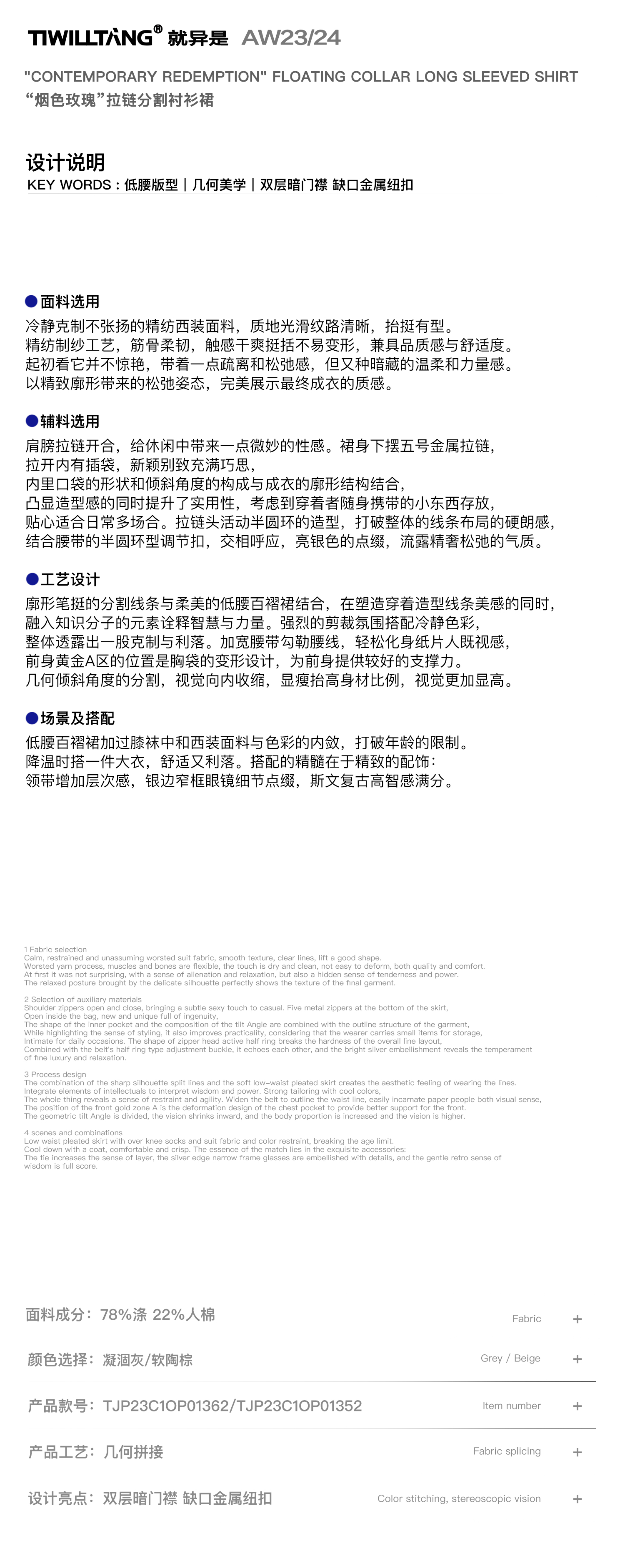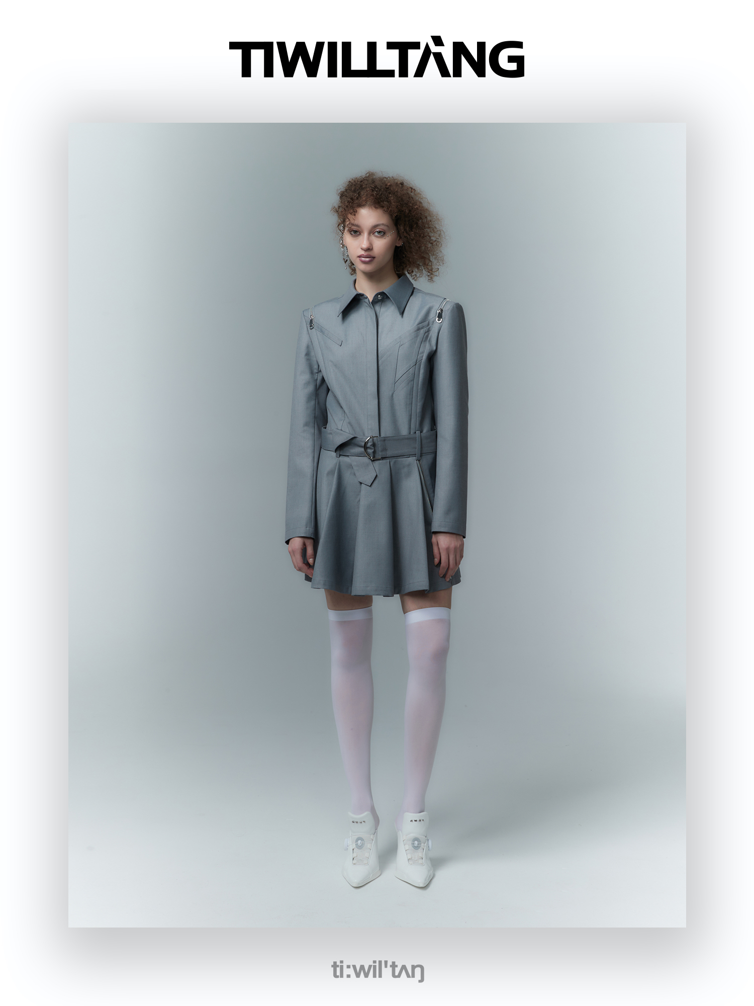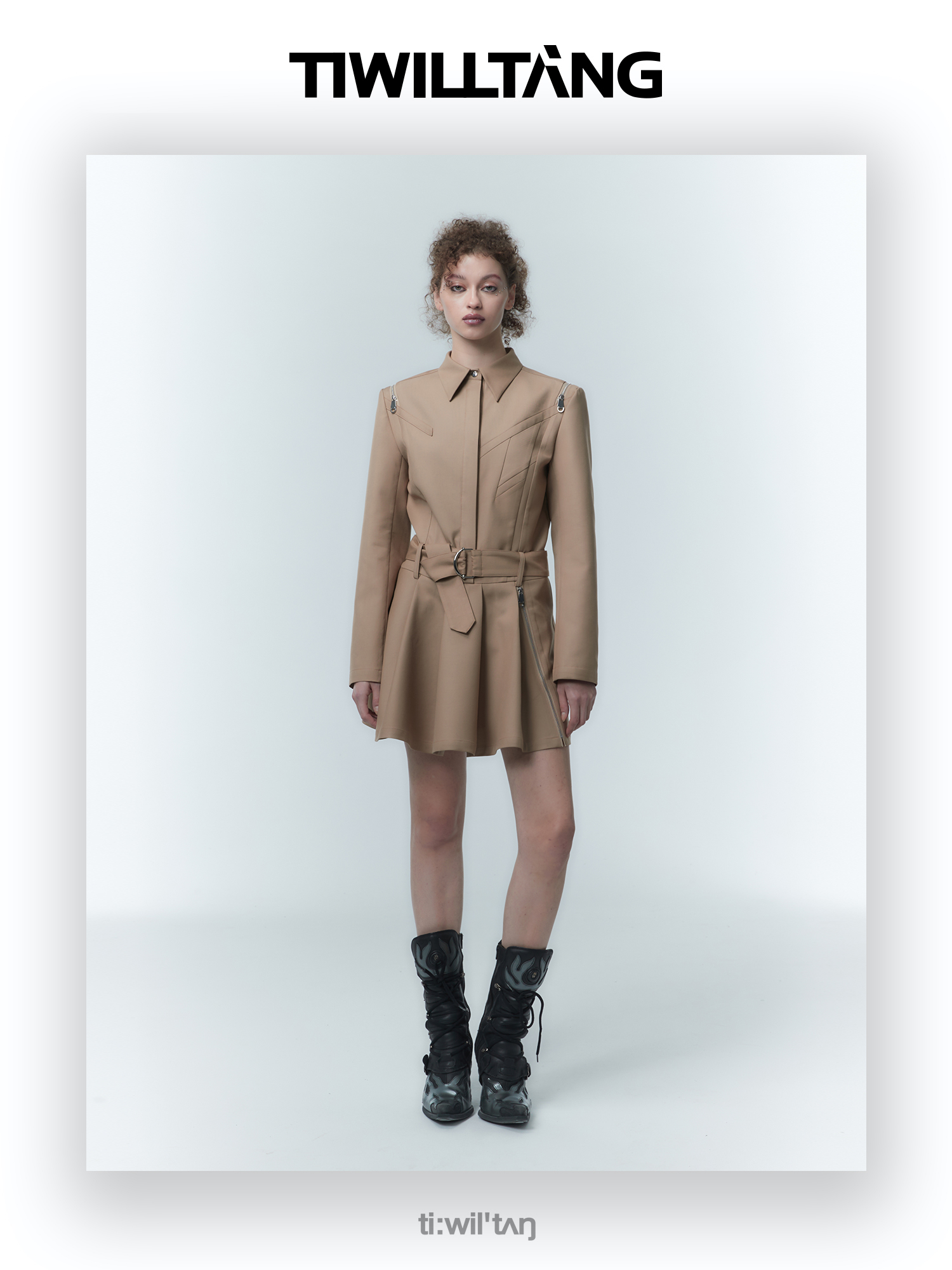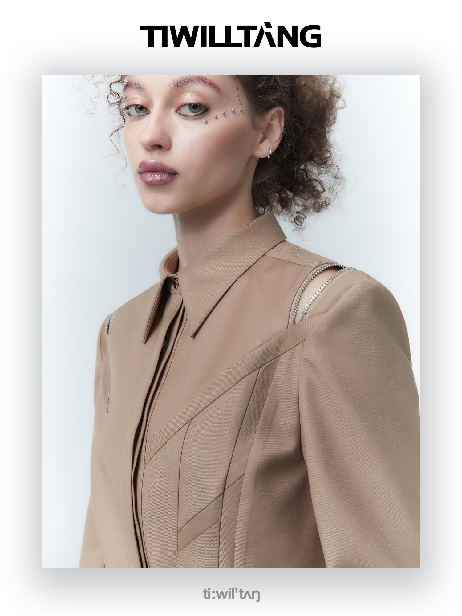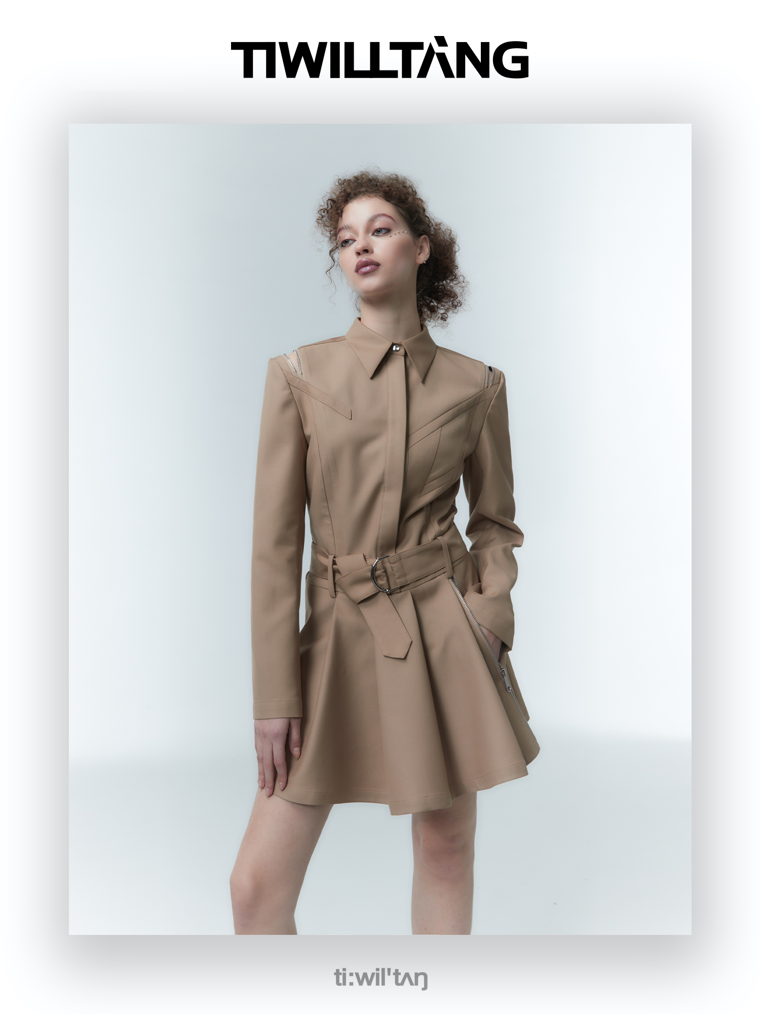 TIWILLTANG启世录“烟色玫瑰”拉链分割连衣裙女春季长袖衬衫裙