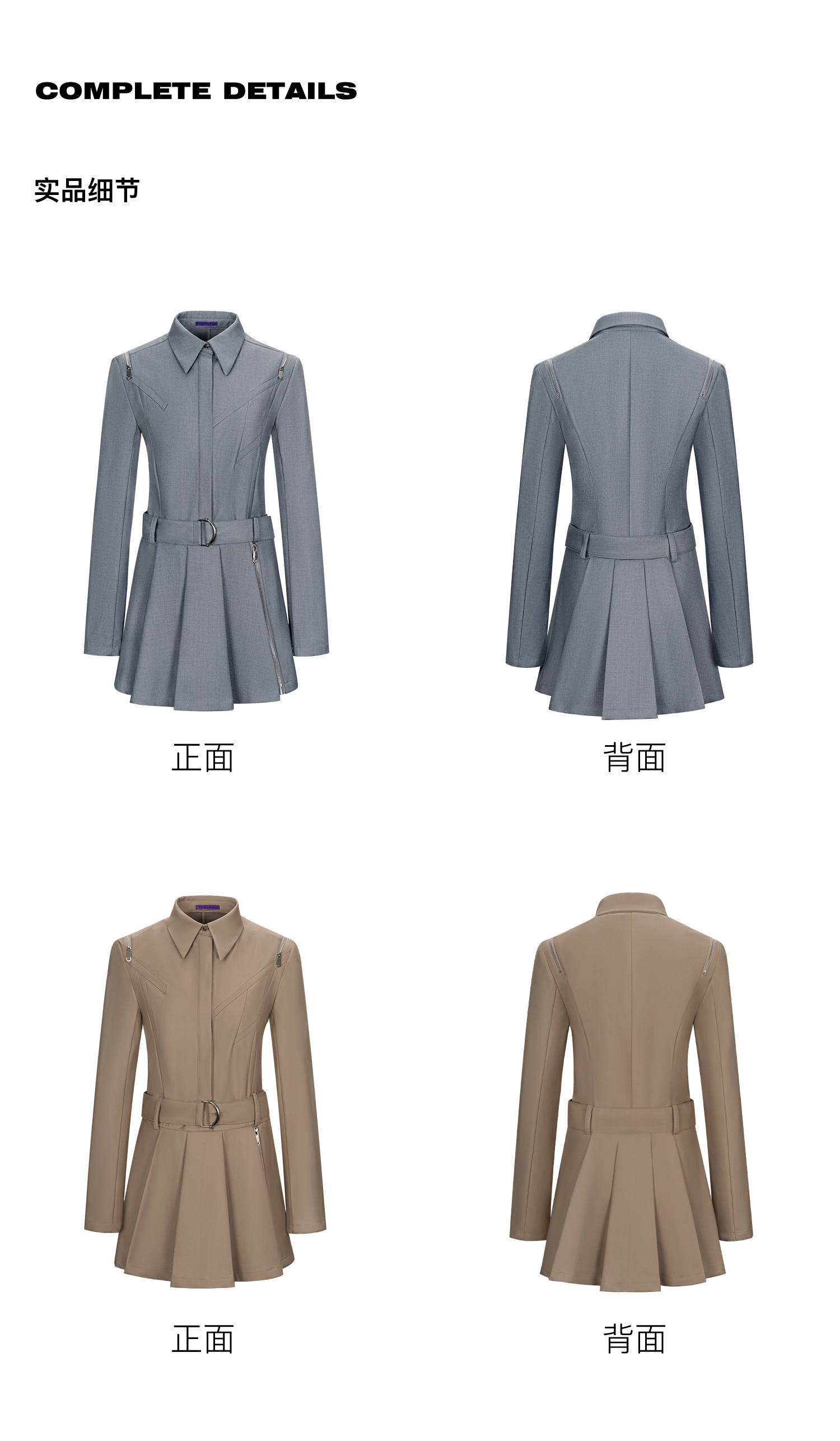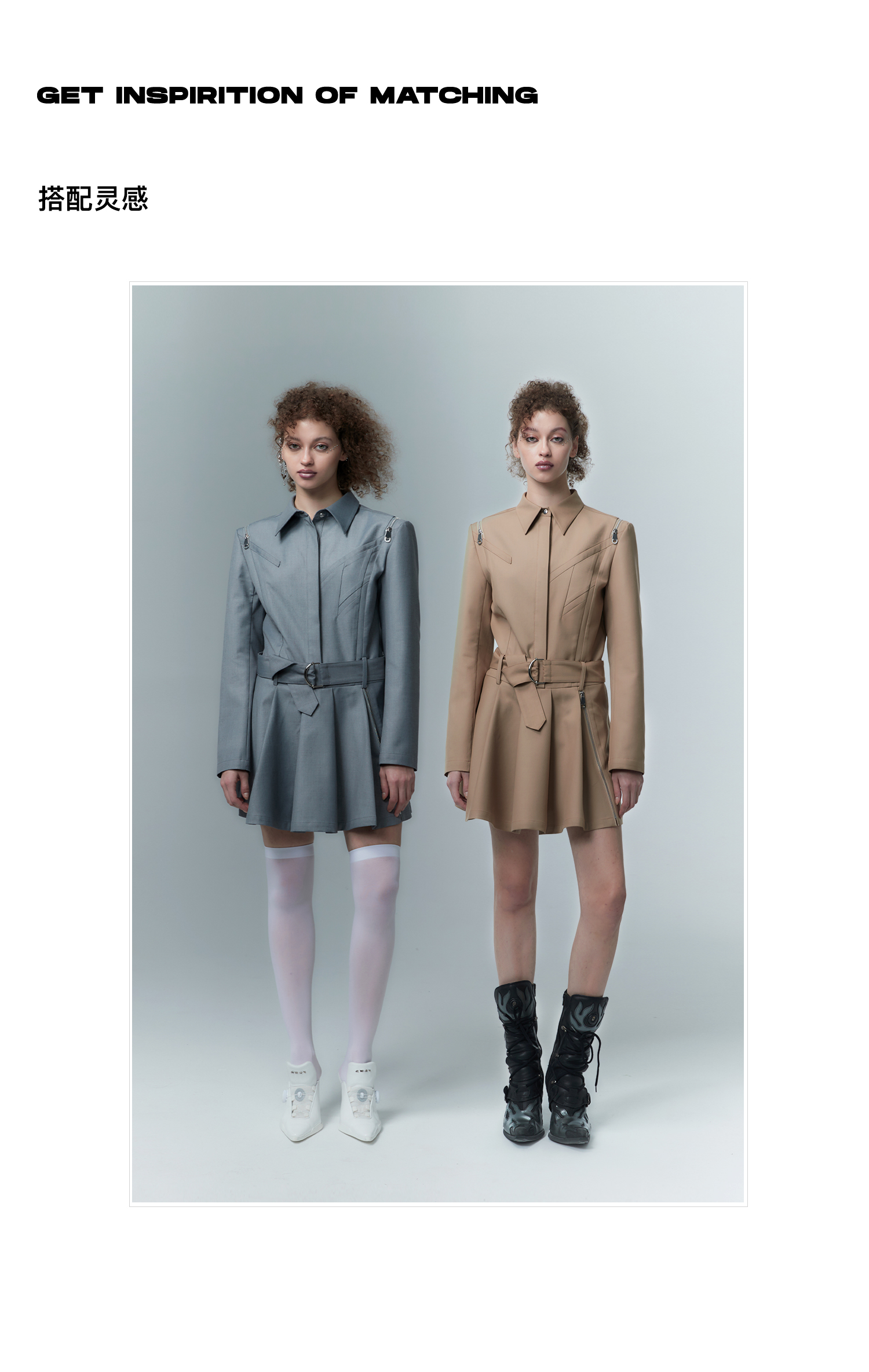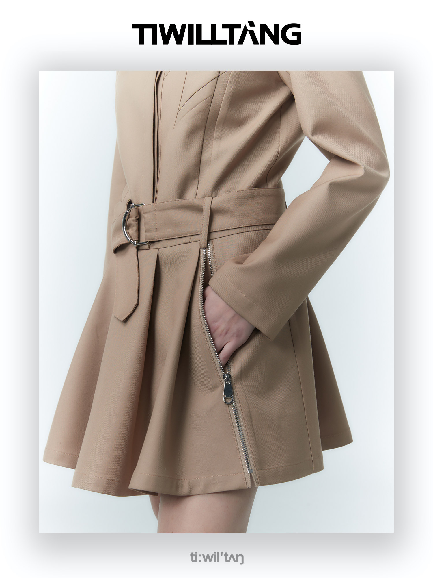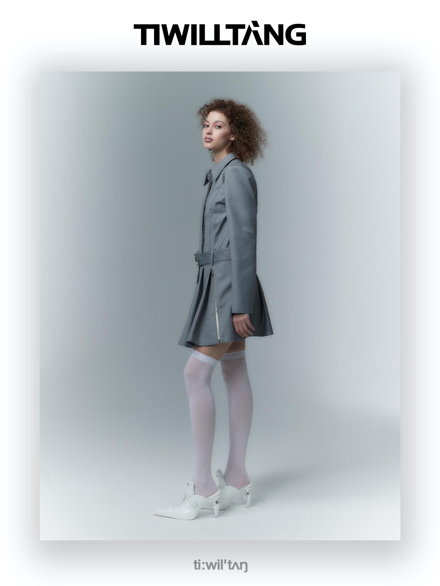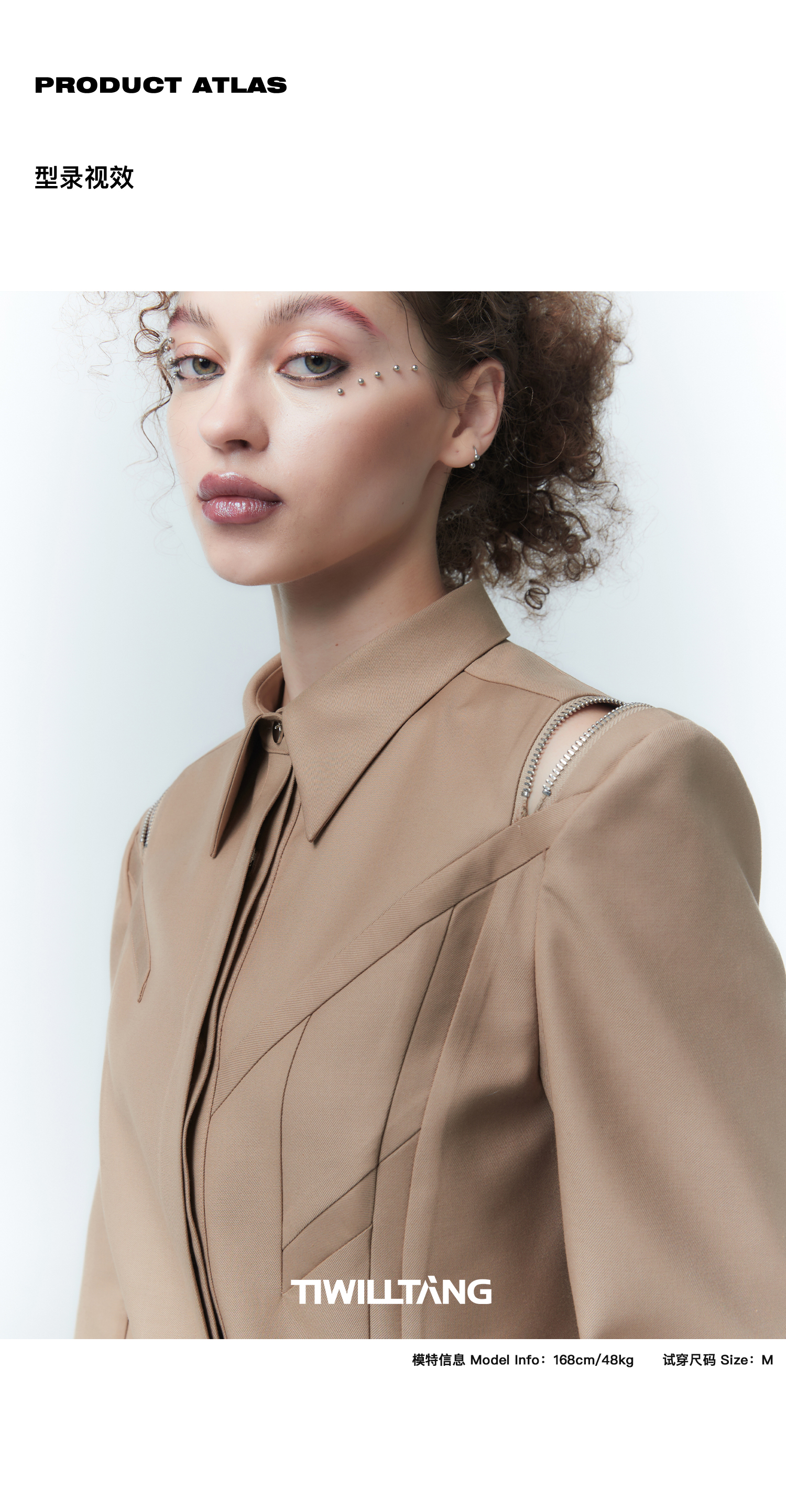 TIWILLTANG启世录“烟色玫瑰”拉链分割连衣裙女春季长袖衬衫裙
