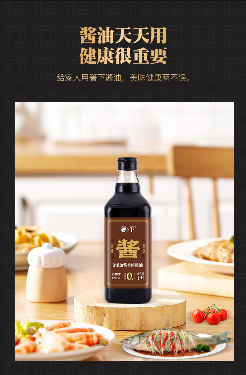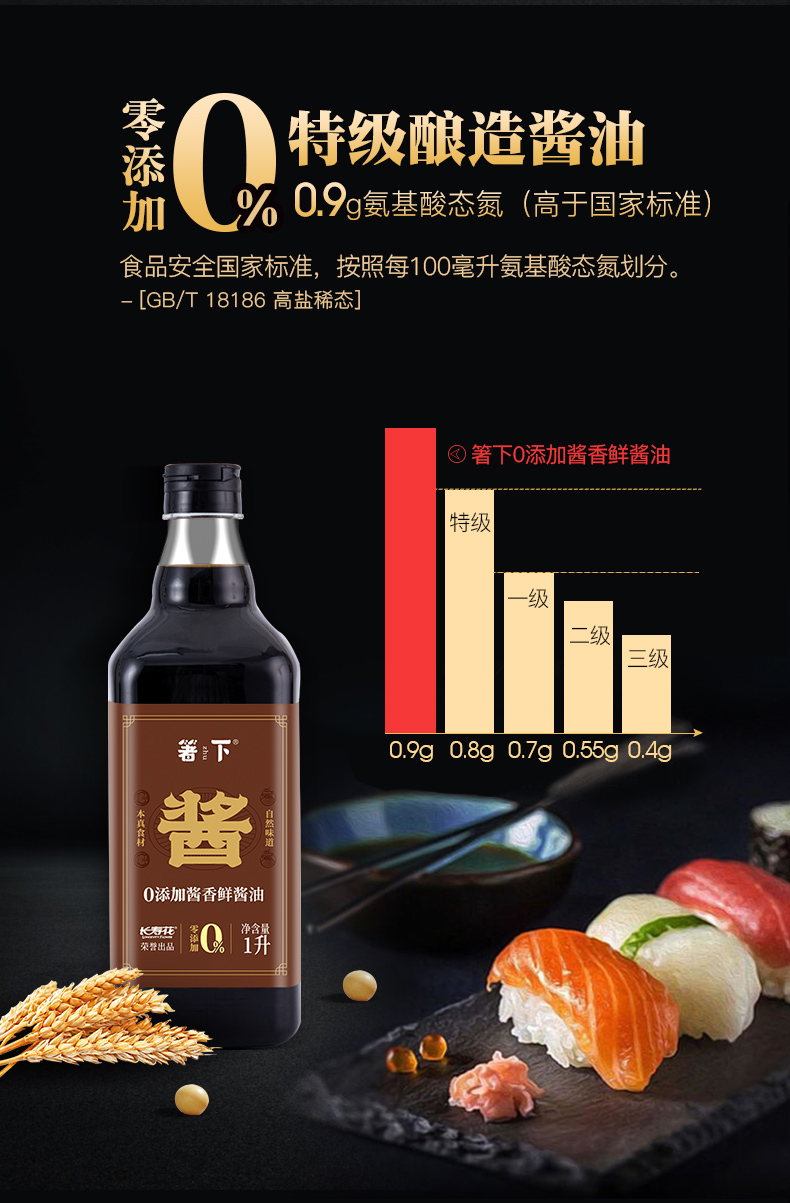 箸下0零添加儿童酱油特级生抽酱香鲜酿造酱油1L/瓶调味凉拌家点蘸