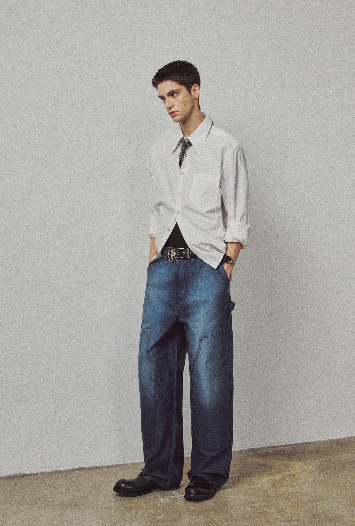 714street竹节纹渐变水洗直筒牛仔裤2026春季微宽松长裤男女同款
