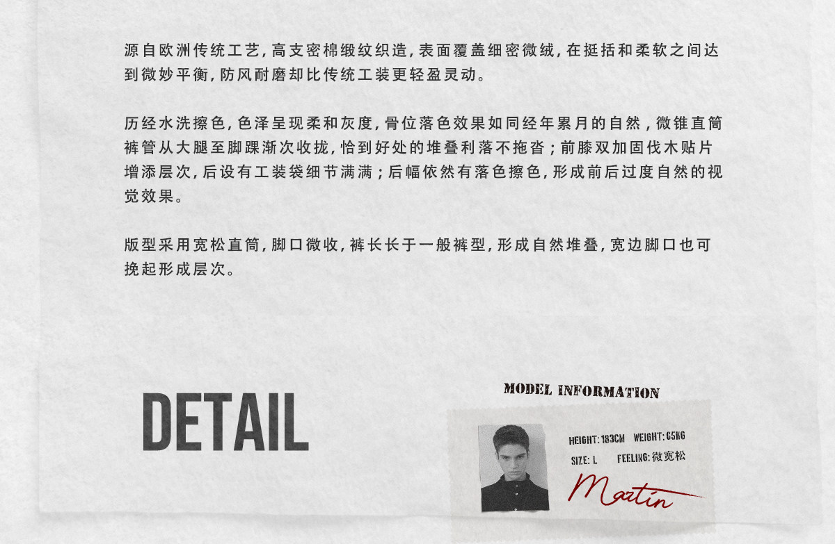 714street高端线BEHALF Moleskin法工百年面料鼹鼠皮水洗马骝长裤