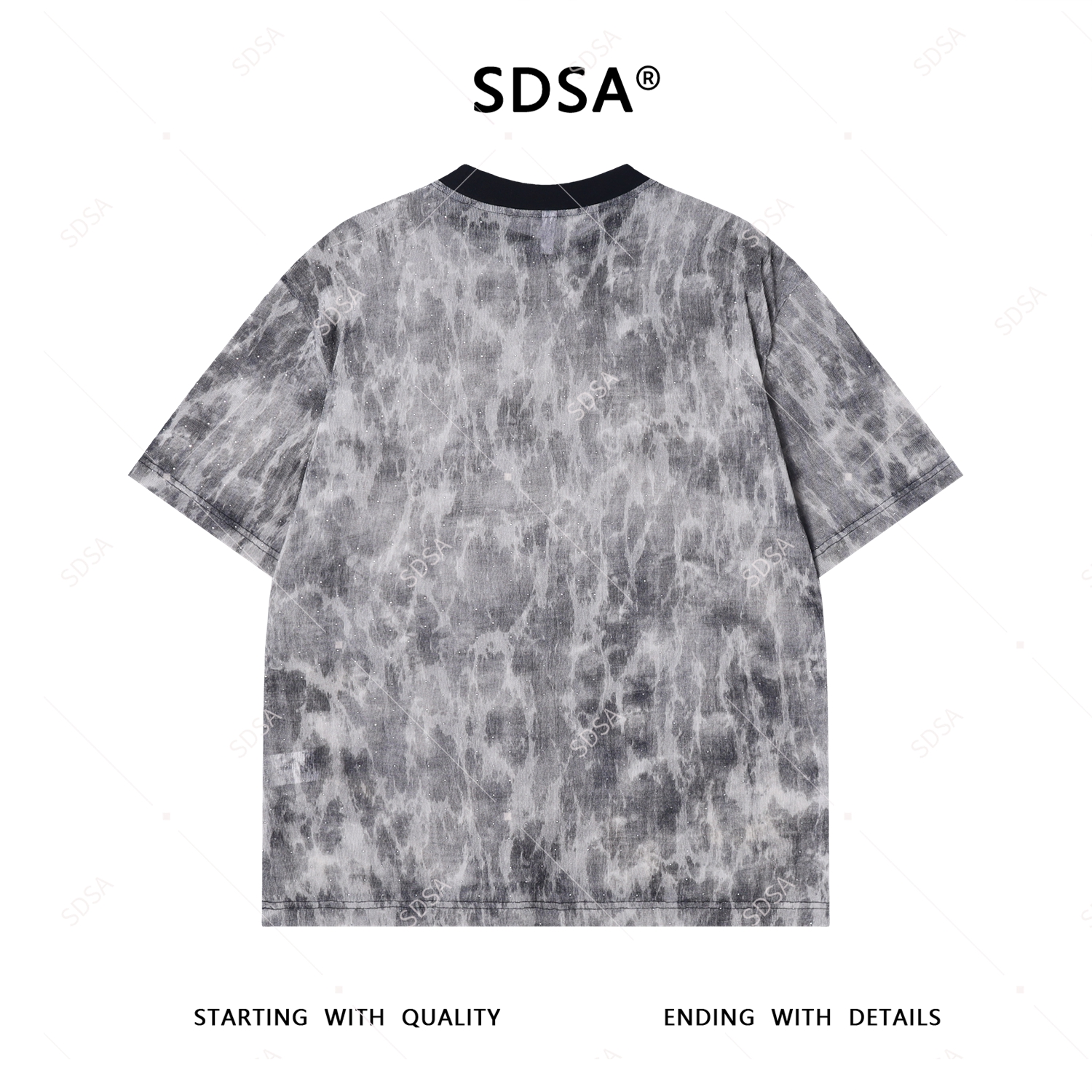 T3722夏季高级感新款男士美式扎染烫钻短袖T恤宽松复古舒适圆领上衣