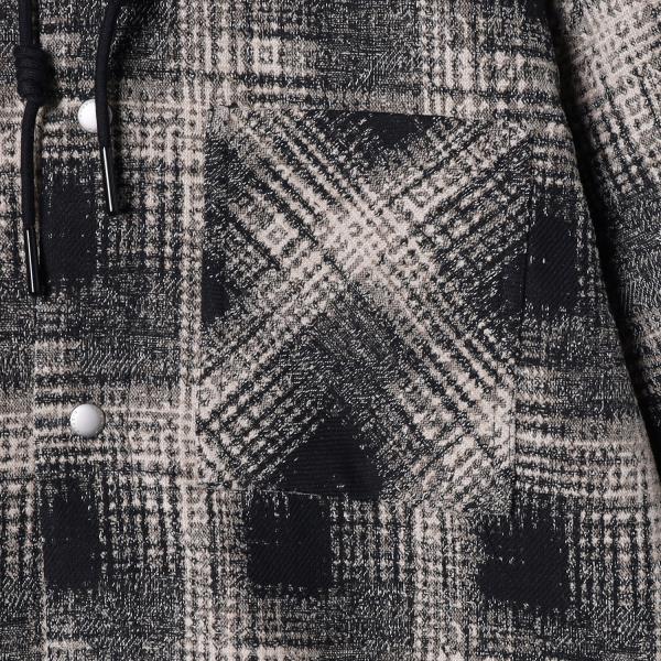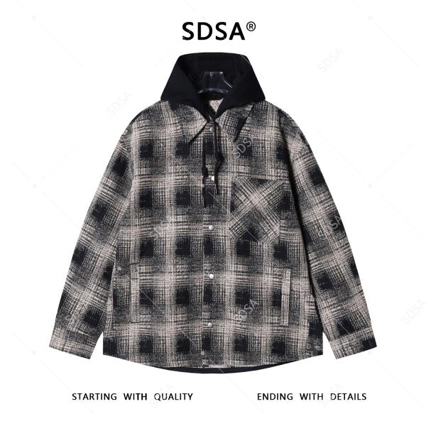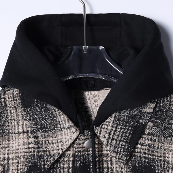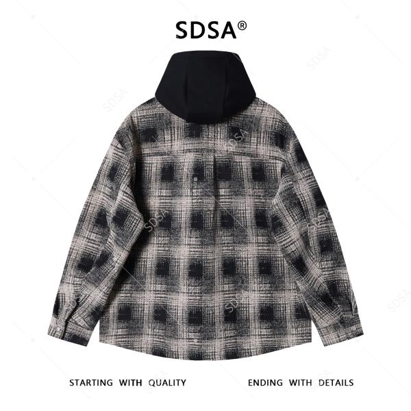 SDSA秋冬新款痞帅男装韩版撞色格纹拼接抽绳连帽衬衫百搭时尚外套