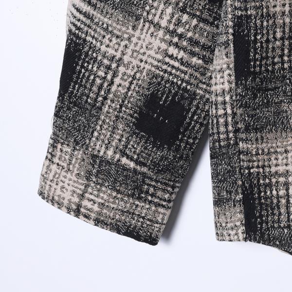 WY242秋冬季新款潮牌美式ins格子拼接假两件外套男百搭复古宽松上衣