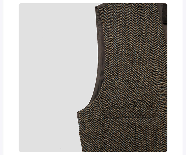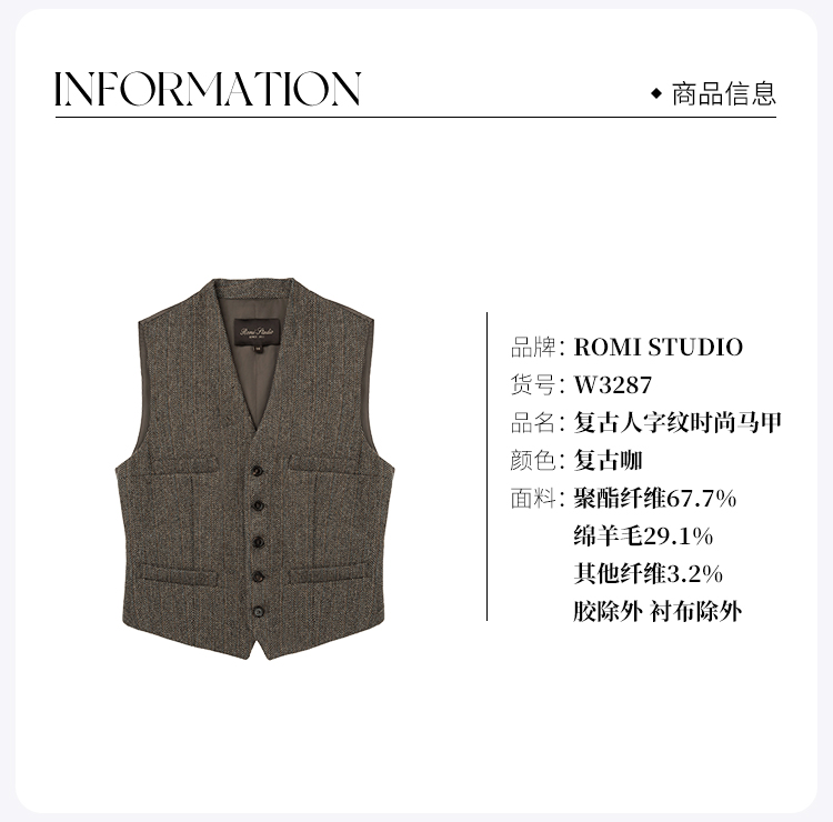 ROMI STUDIO“棕标系列”早秋羊毛混纺英伦复古人字纹时尚马甲W3287