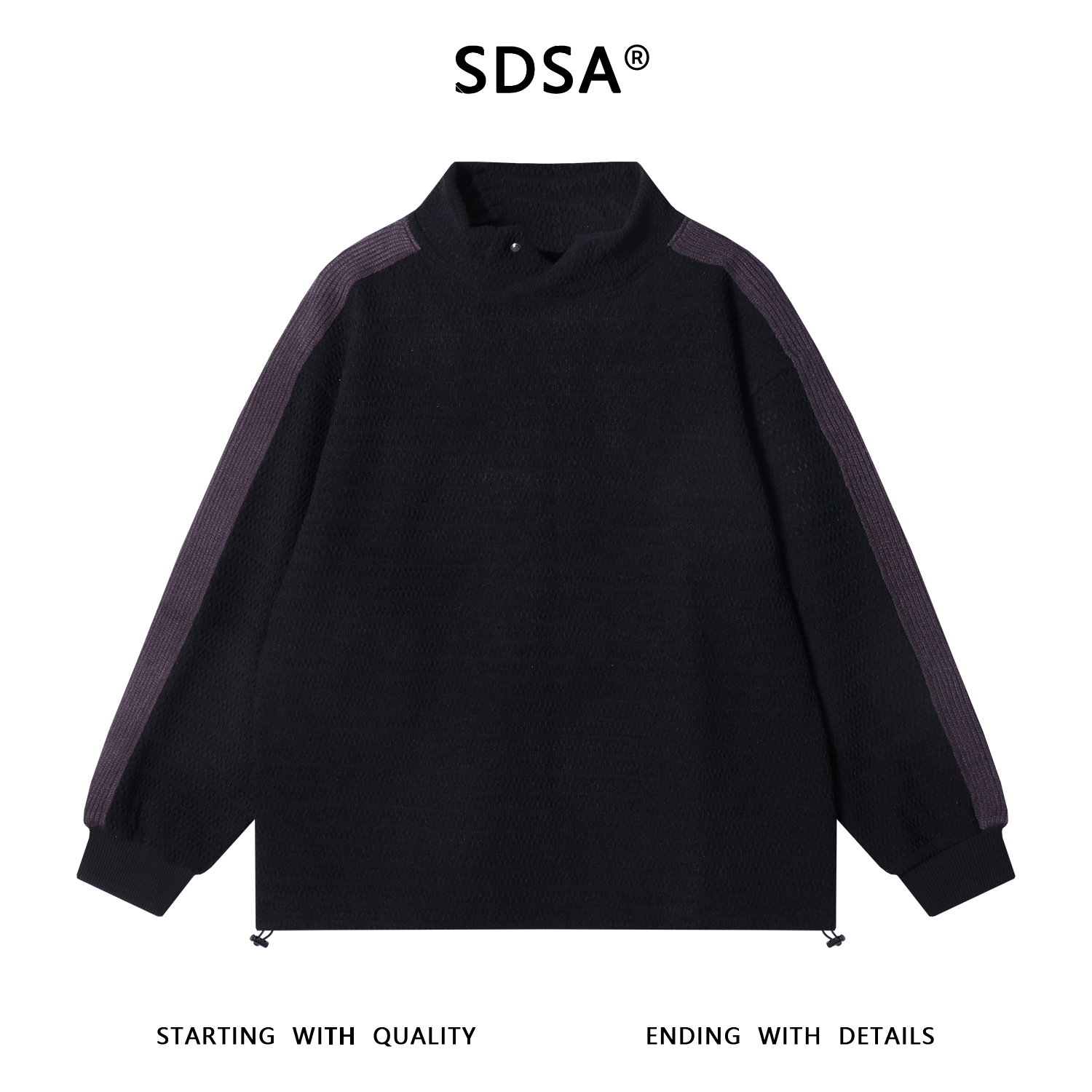52092SDSA秋冬新款痞帅男装潮牌撞色肌理感立领卫衣下摆松紧设计百搭