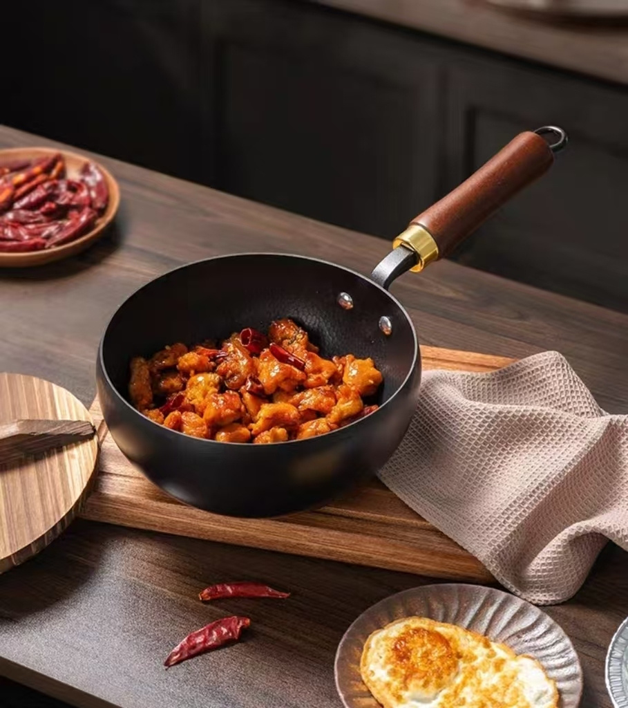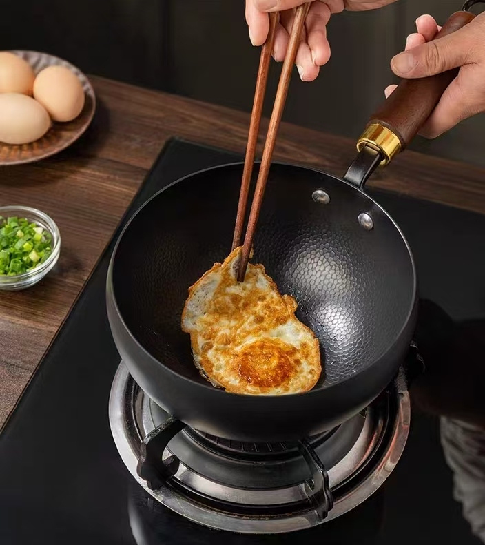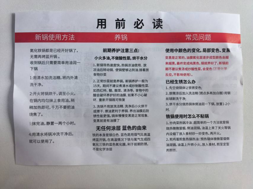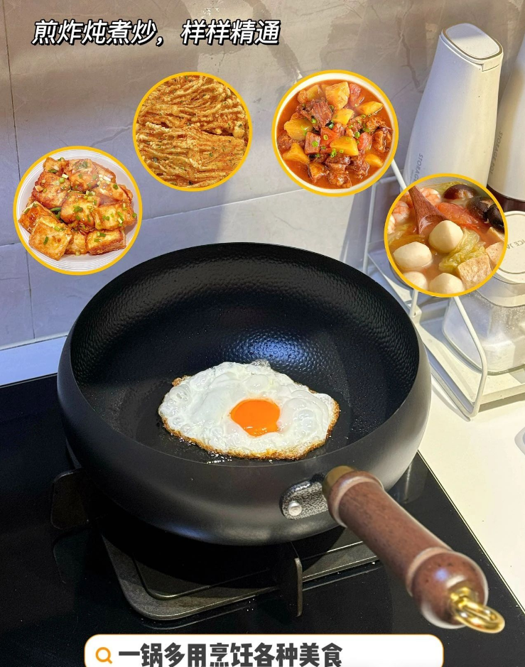 铁锅由高纯度铁经过12小时深度氮化,不易生锈