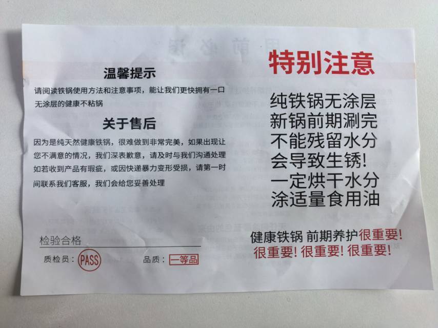 2、正常炒菜就是养锅,新锅养护一般为15天,期间不建议煮清水或炒制酸性菜,如西红柿、醋、酸菜、清汤等,食物中的酸会破坏养护好的油膜,如果不小心破坏,重新开锅既可恢复