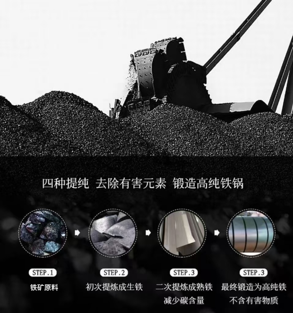 ✅99%含铁量,4道古法提纯:从铁矿石到精铁历经1360℃四重熔炼,杂质含量<1% ,更纯,更厚实