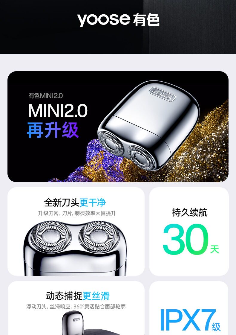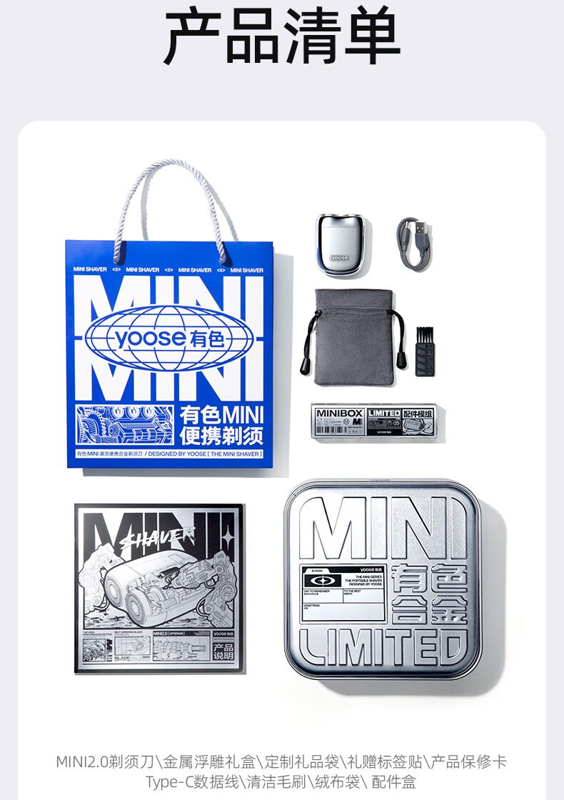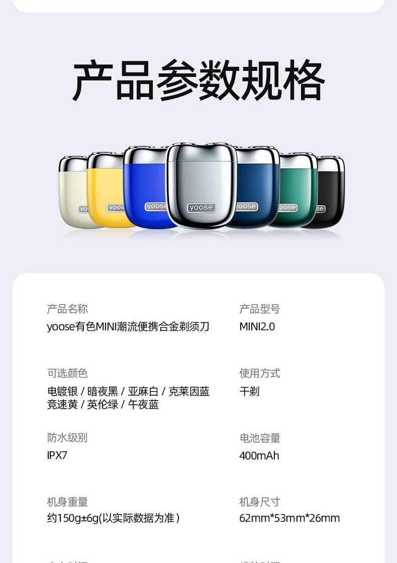yoose/有色车载剃须刀男士车内专用电动迷你MINI2.0便携刮胡刀男友礼物 拆封后不支持七天无理由