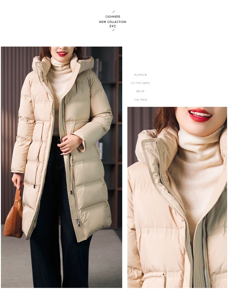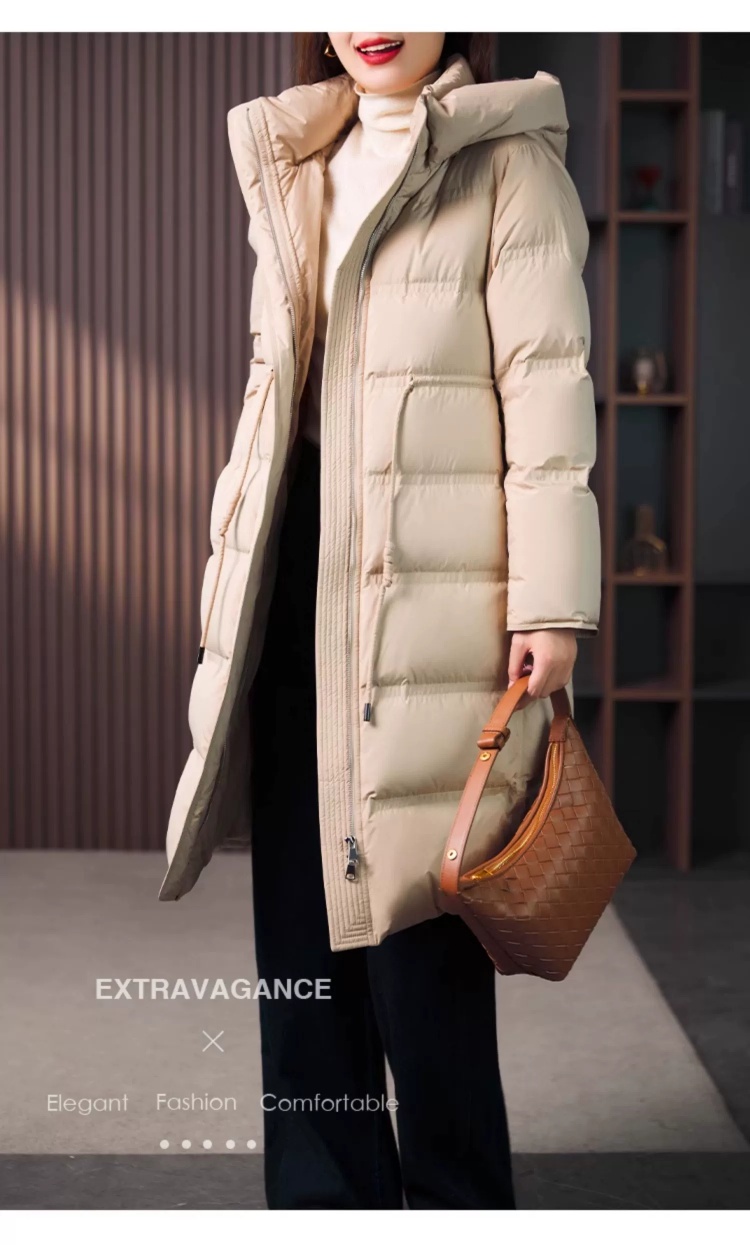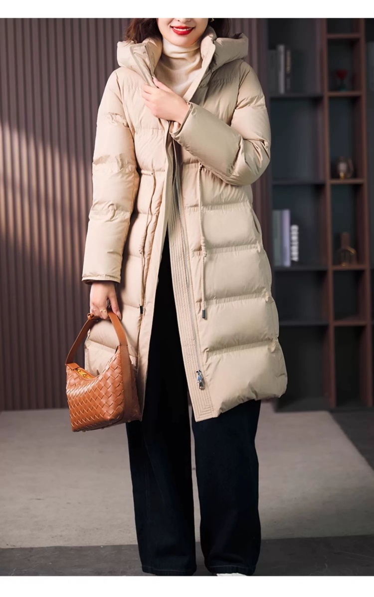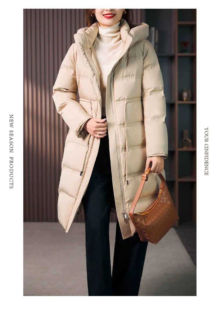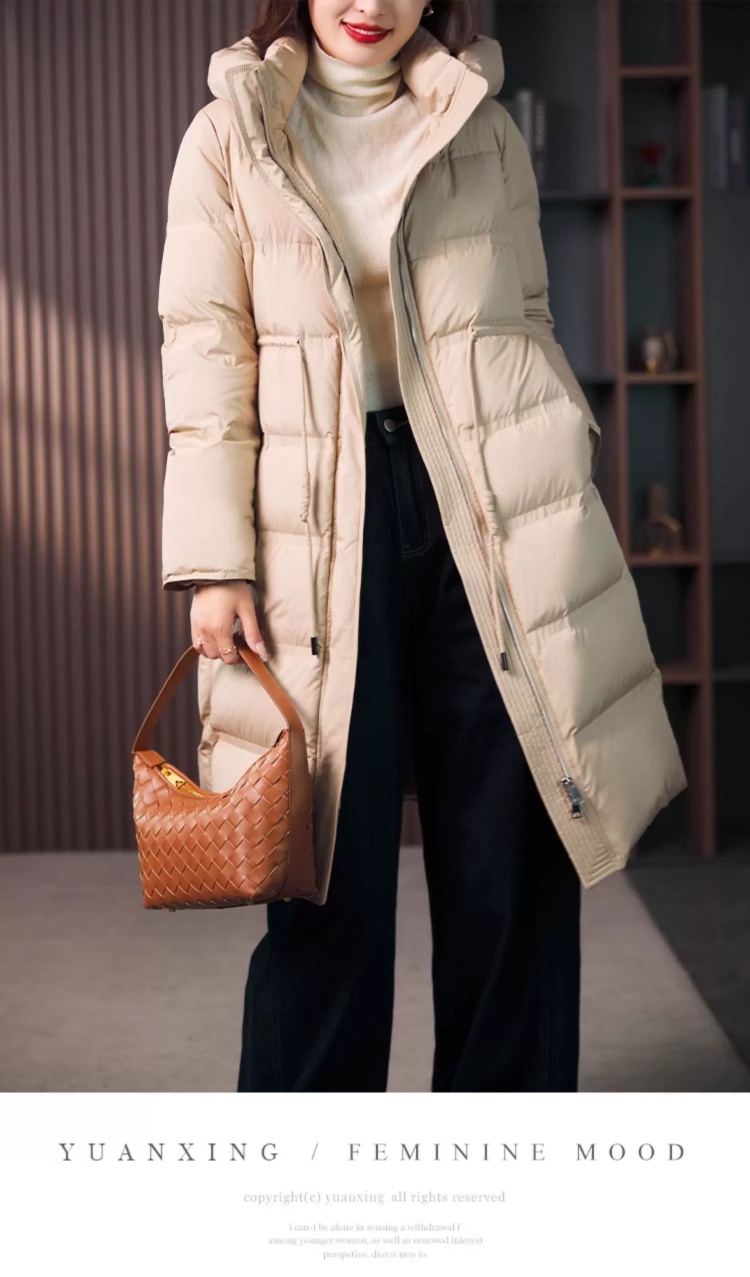原形90白鹅绒连帽气质羽绒服女2023冬季新款收腰修身加厚保暖外套