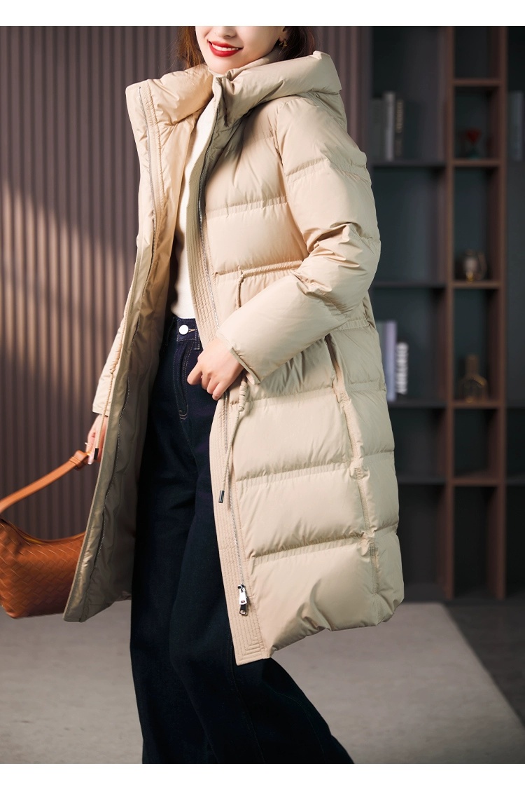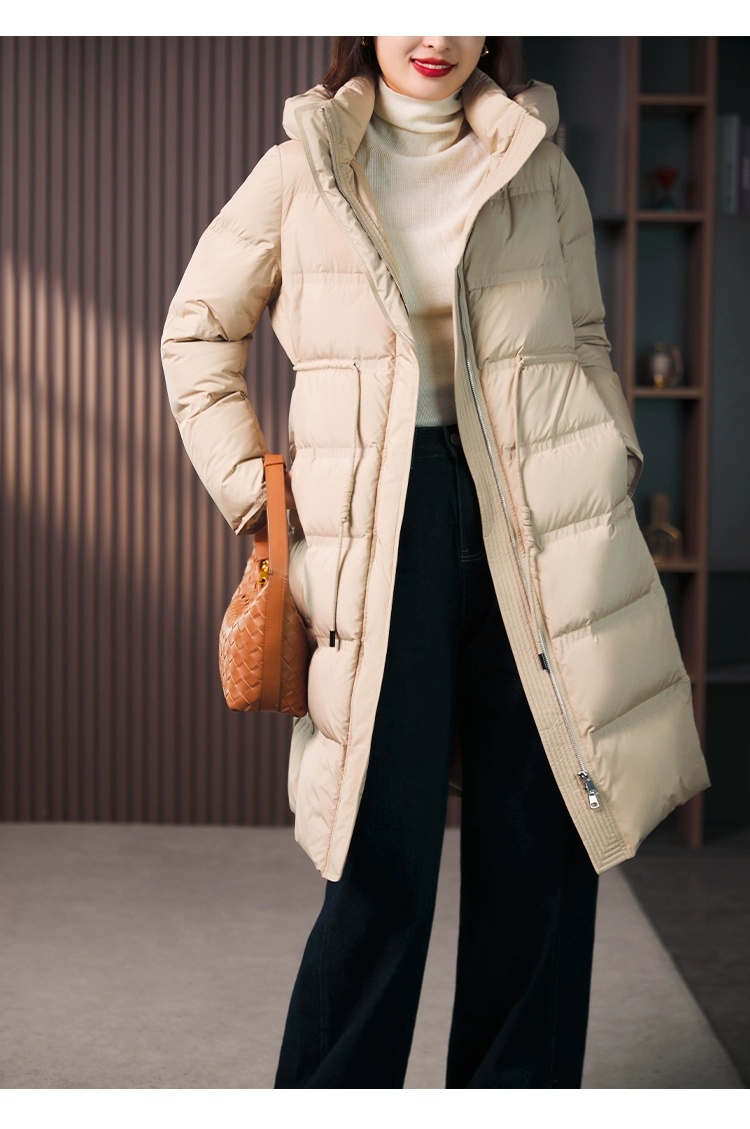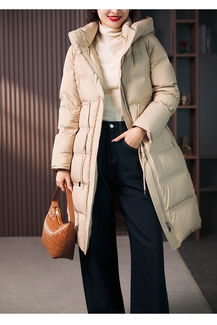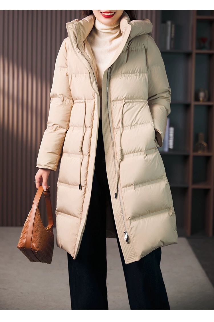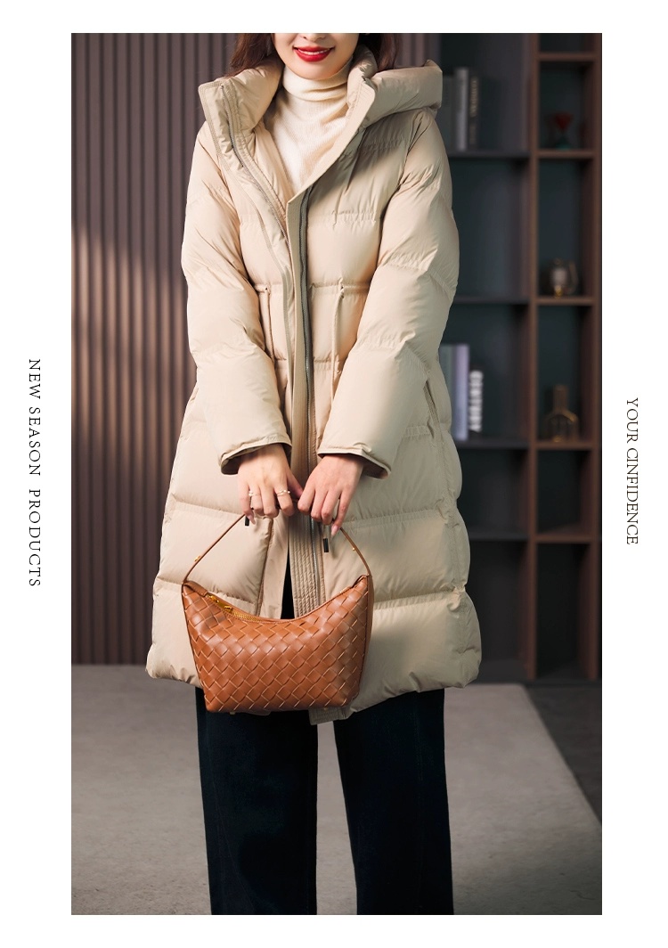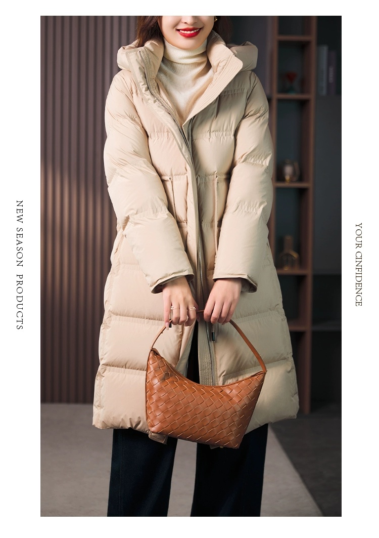 原形90白鹅绒连帽气质羽绒服女2023冬季新款收腰修身加厚保暖外套