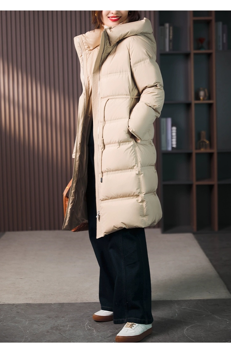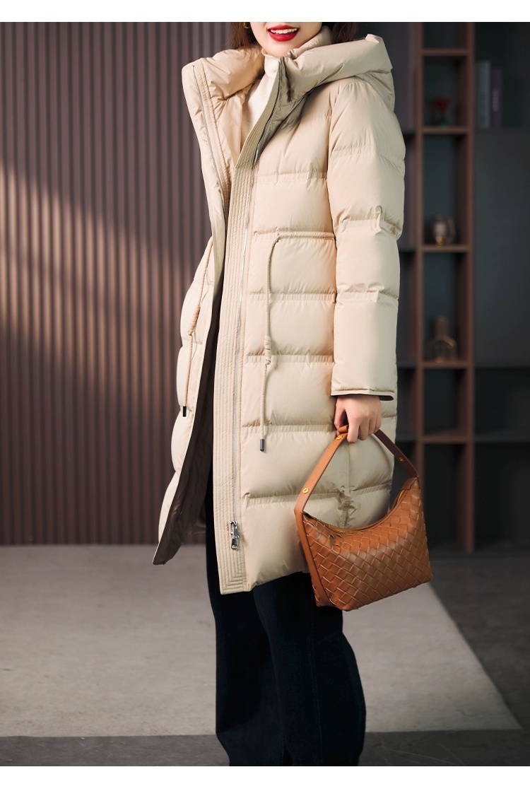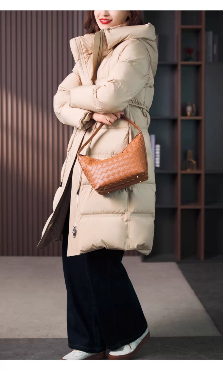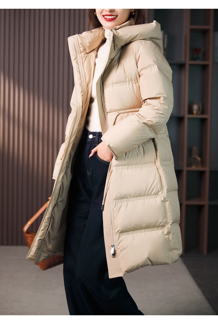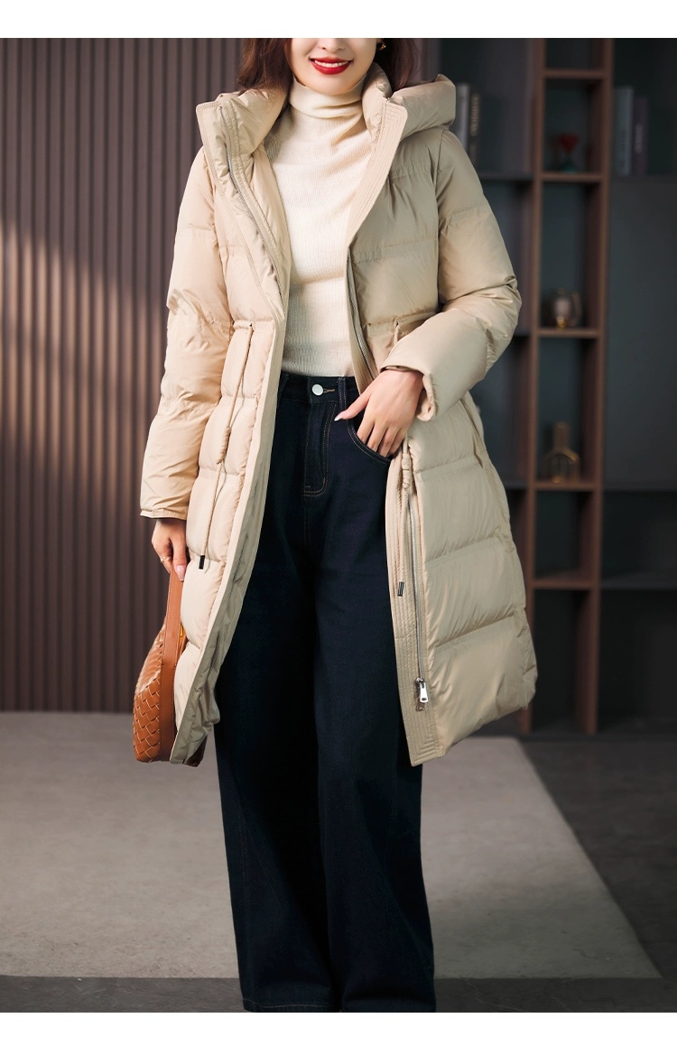 原形90白鹅绒连帽气质羽绒服女2023冬季新款收腰修身加厚保暖外套