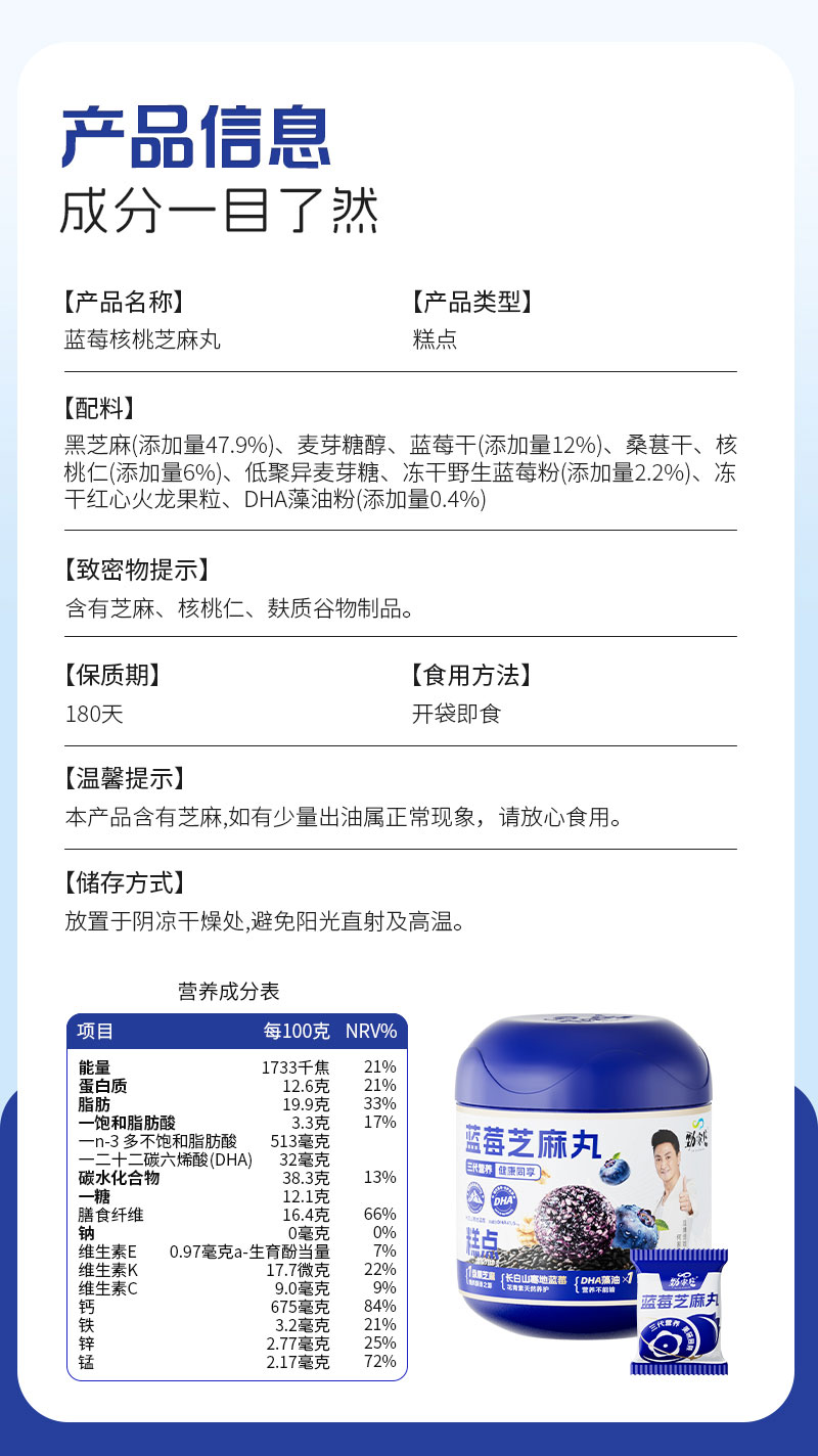 年货节 爆款 蓝莓芝麻丸 130克/罐 13粒/罐