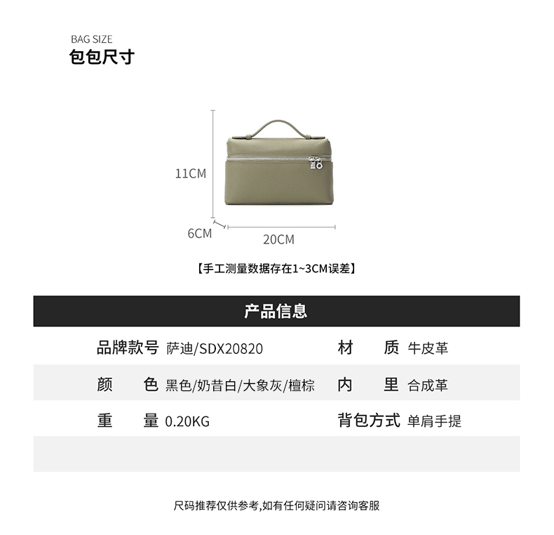 SADI萨迪 牛皮通勤手拎方盒化妆包SDX20820