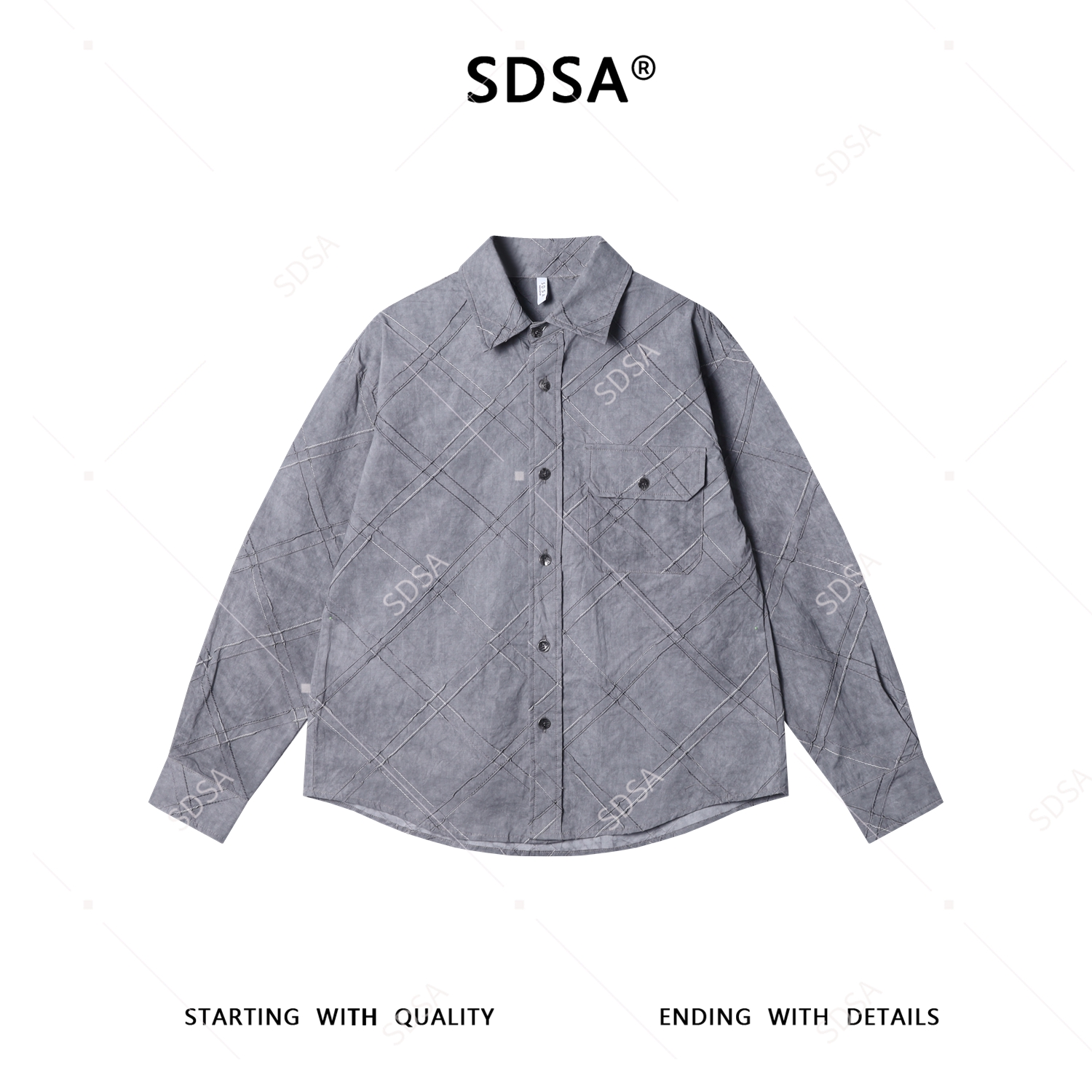 26CS03SDSA男士秋冬新款痞帅男装韩版扎染菱形设计长袖衬衫百搭时尚衬衣