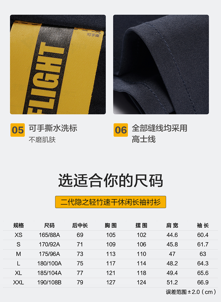 二代龙牙隐之轻竹速干休闲长袖衬衫