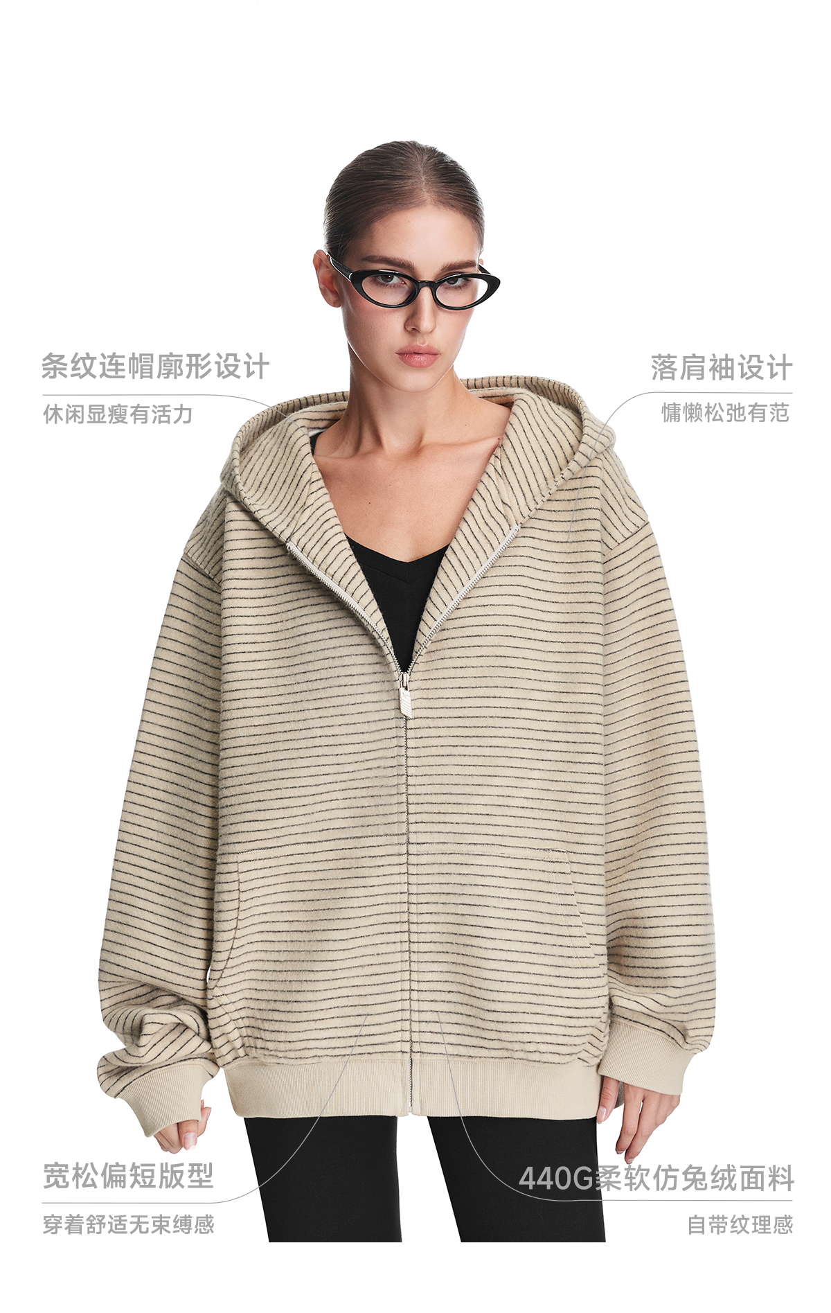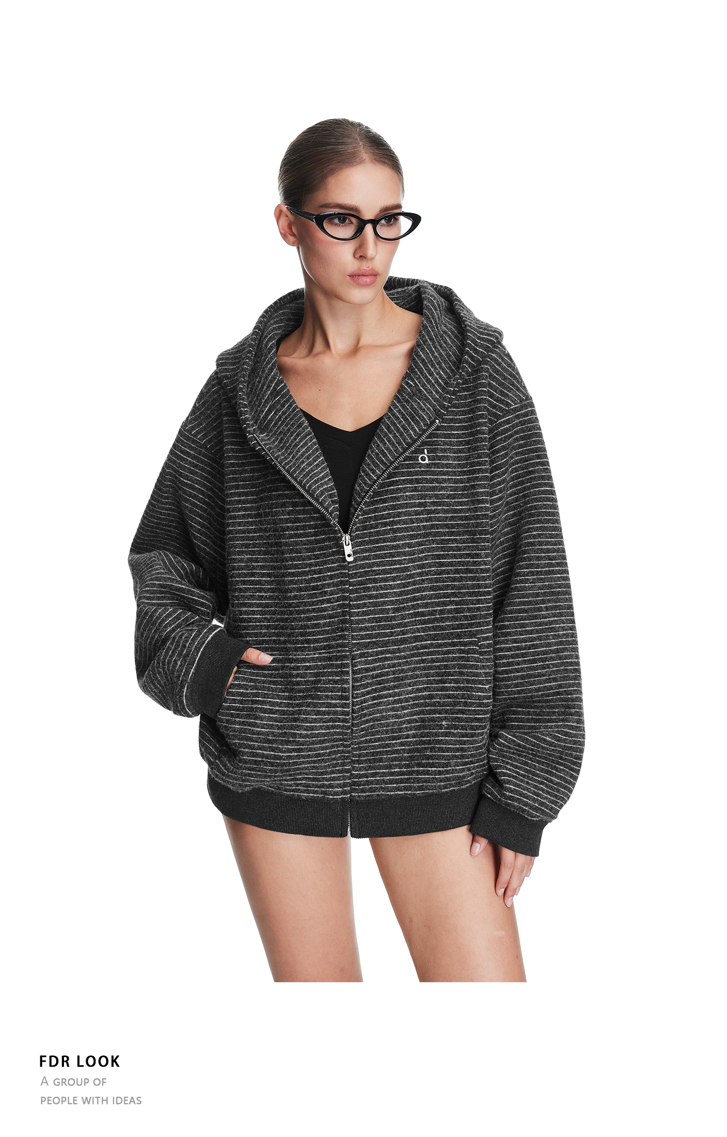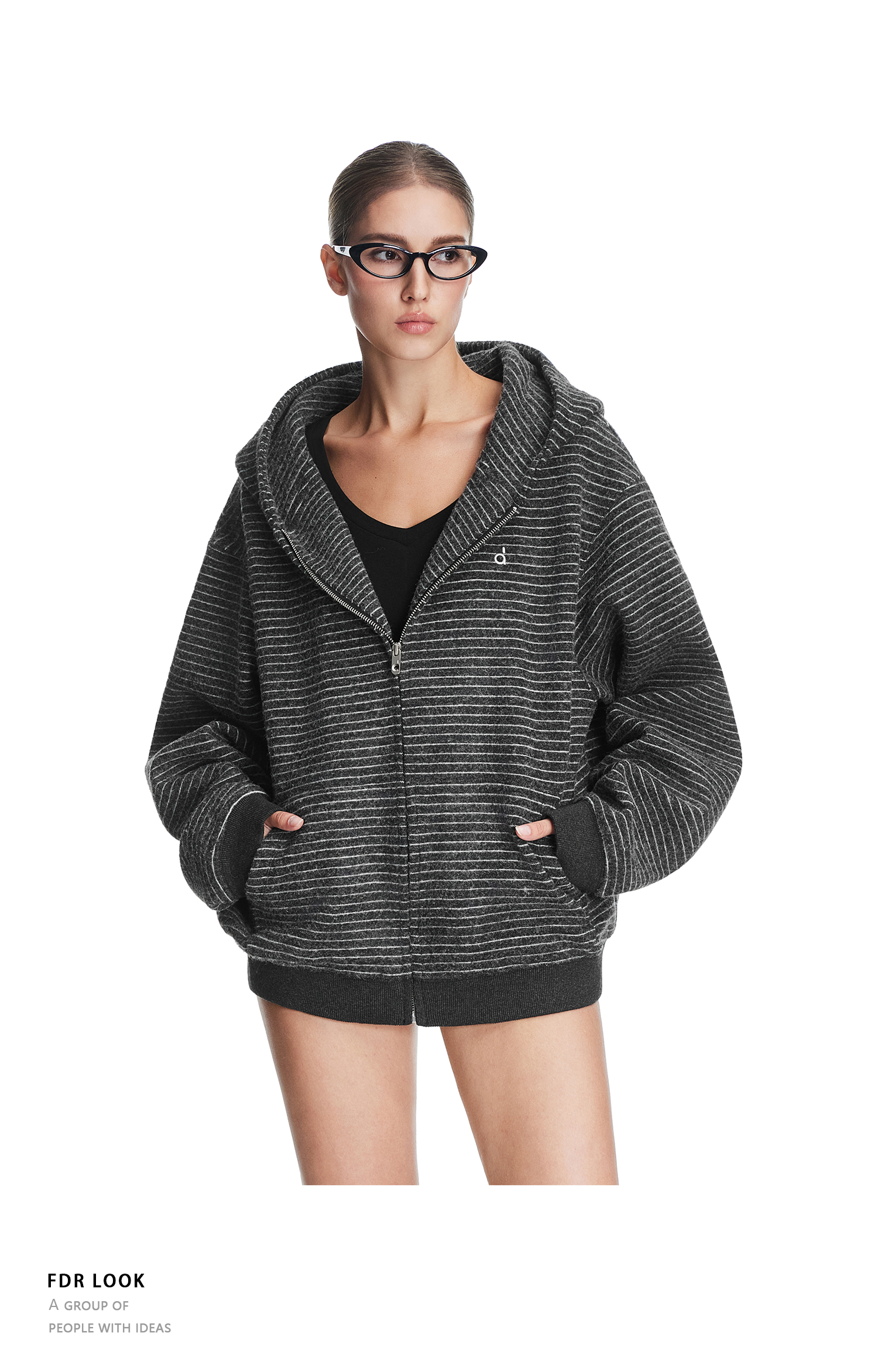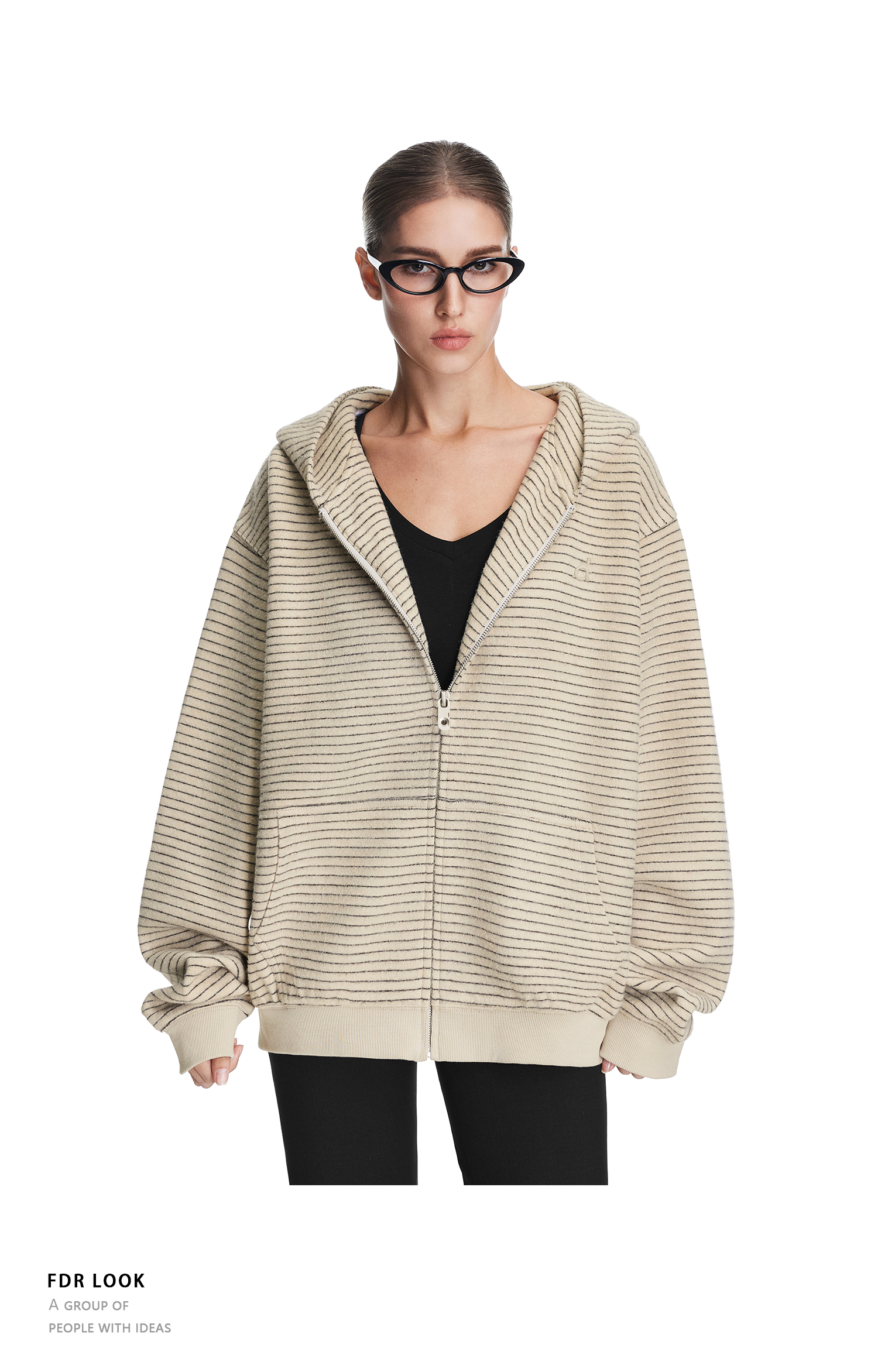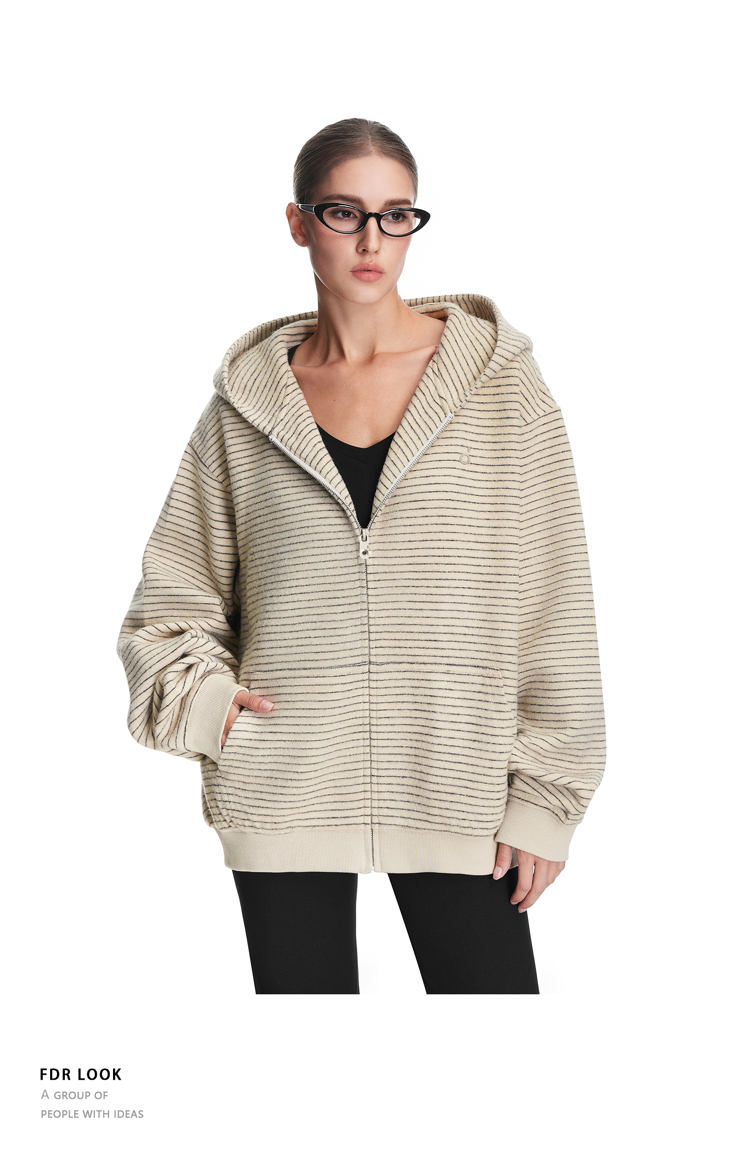 【林秋楠同款】FDR 亲肤保暖毛呢条纹连帽卫衣外套男女秋季上衣