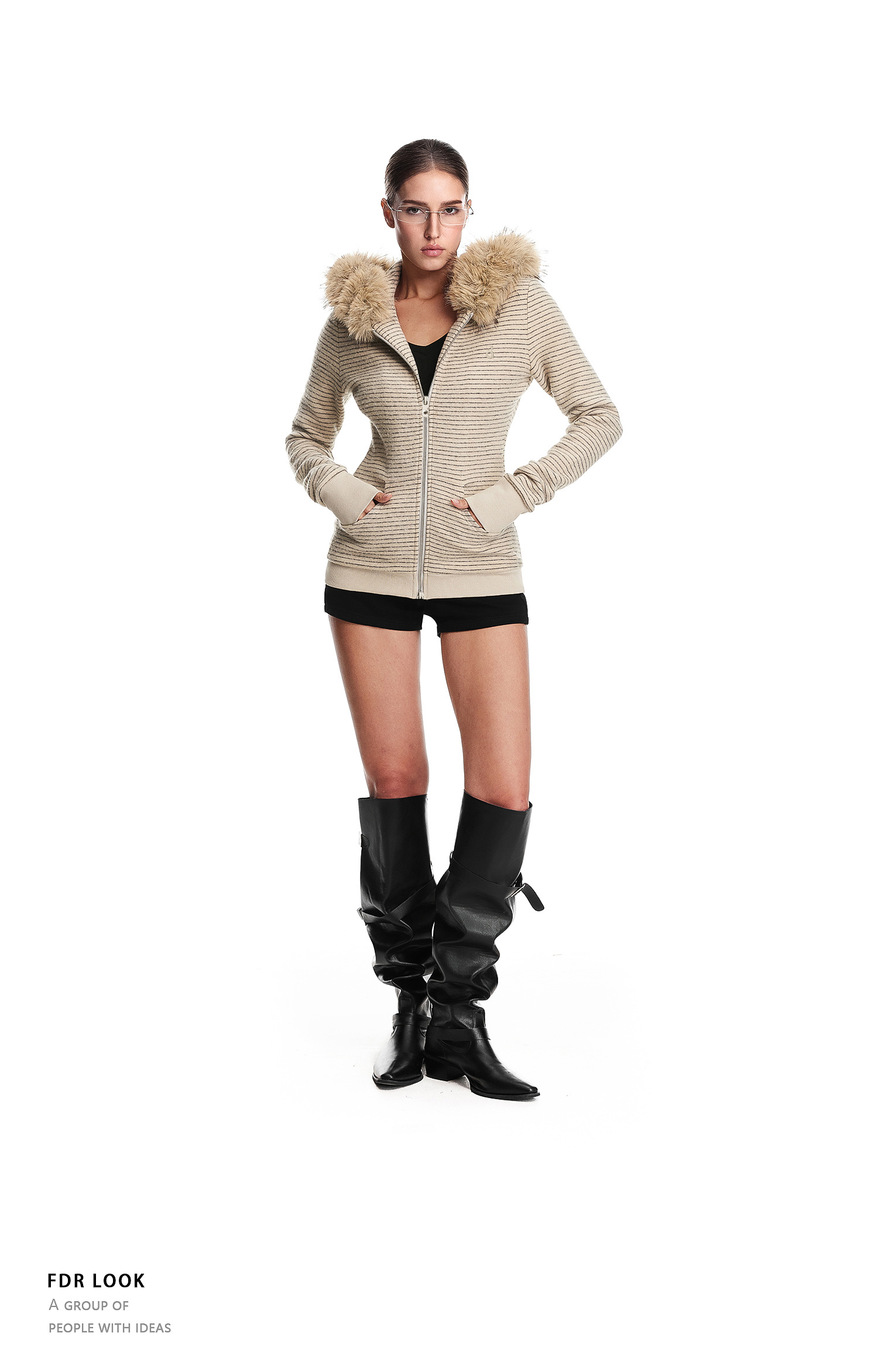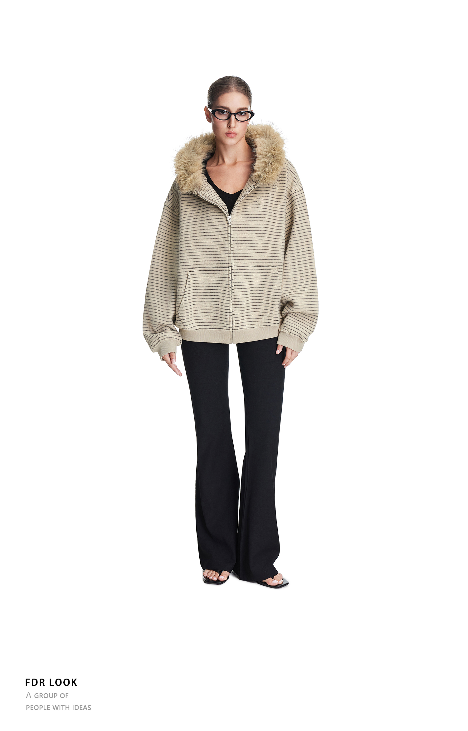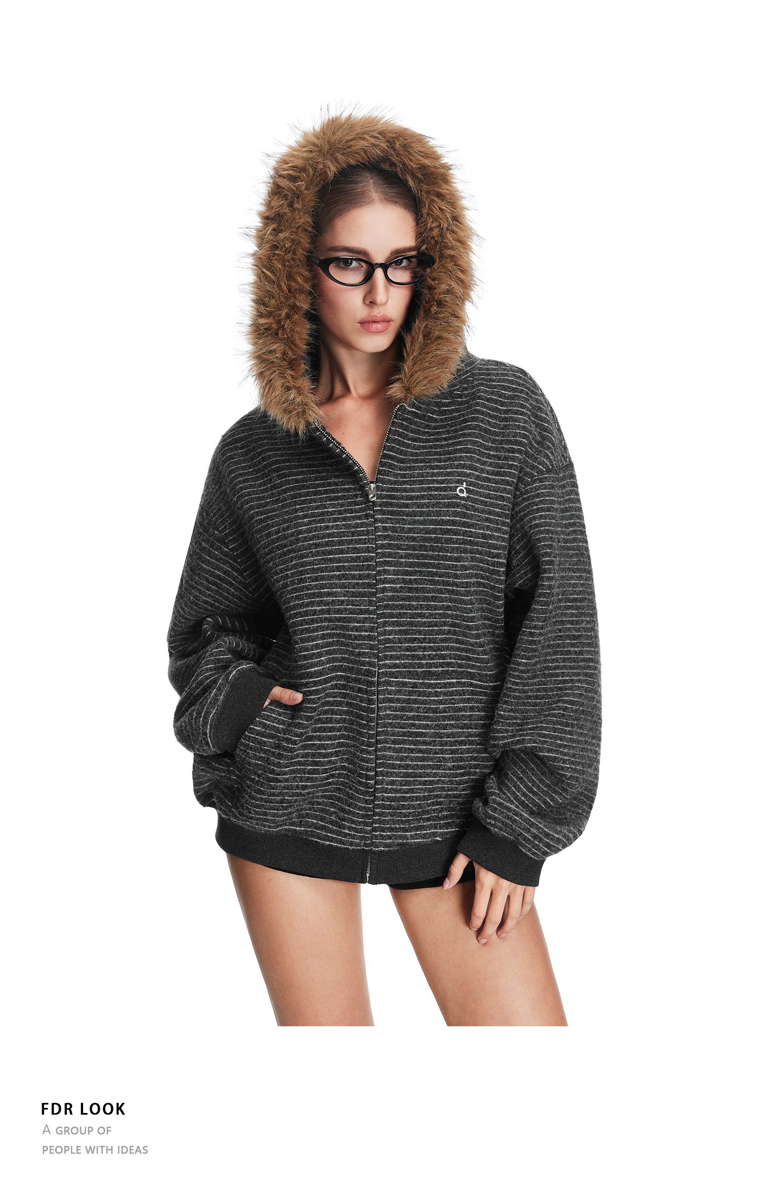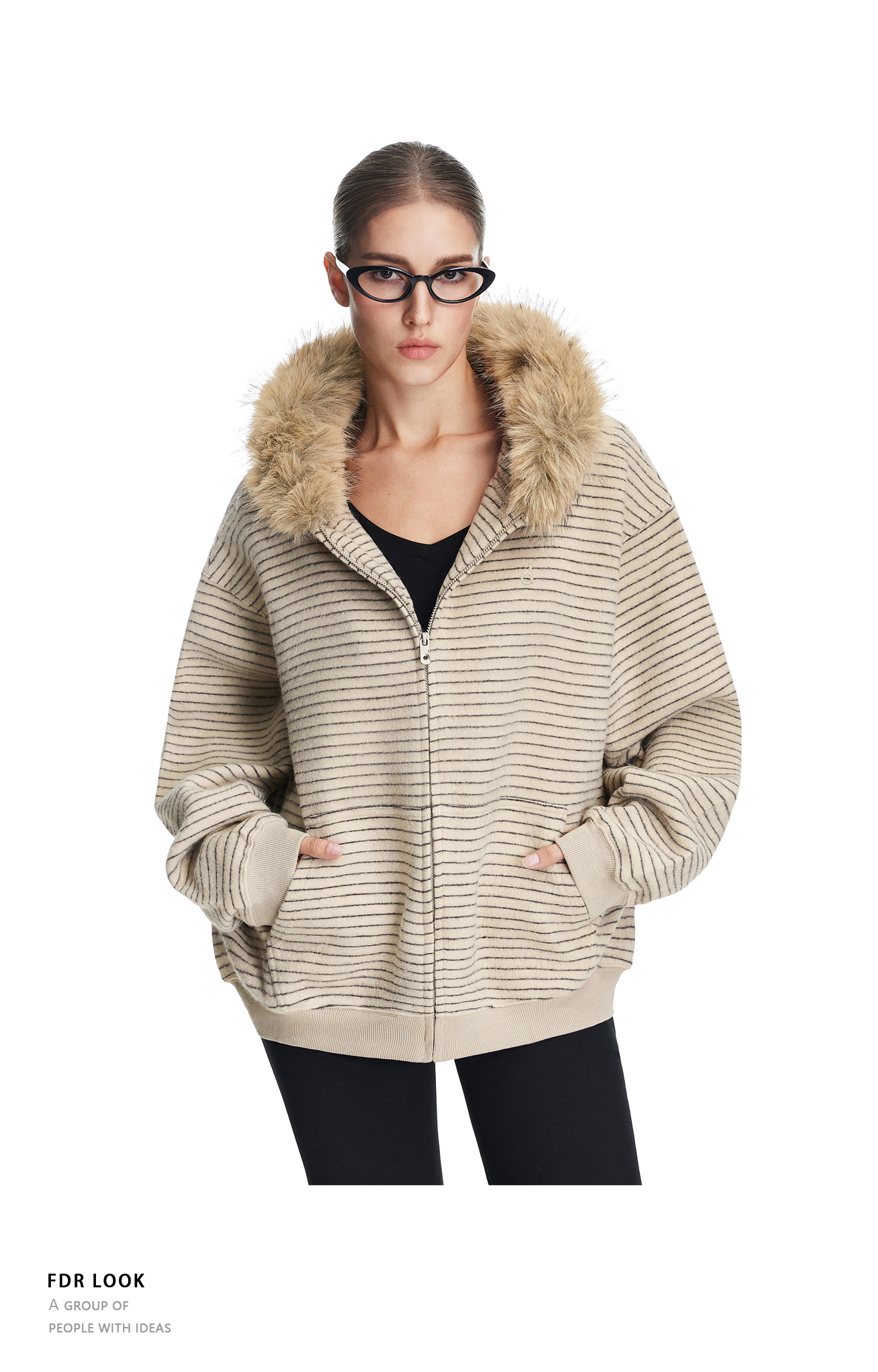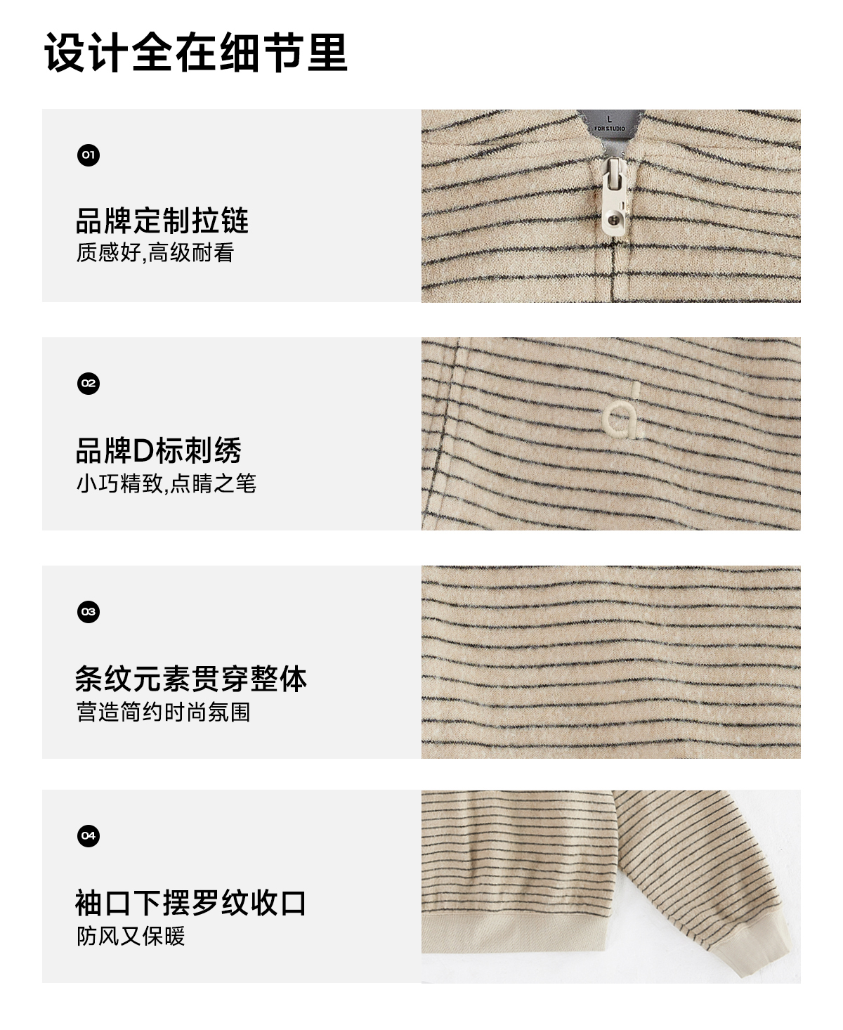 【林秋楠同款】FDR 亲肤保暖毛呢条纹连帽卫衣外套男女秋季上衣