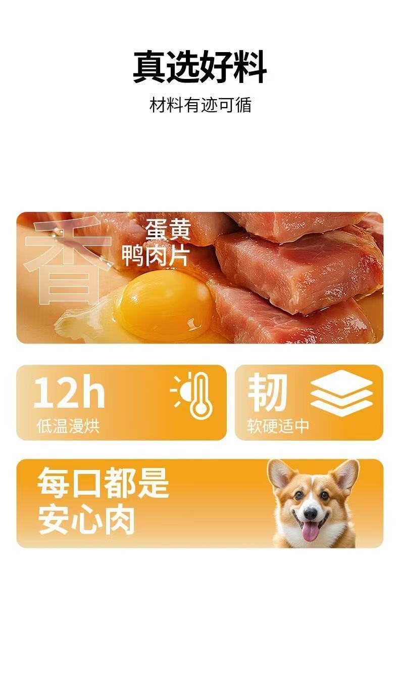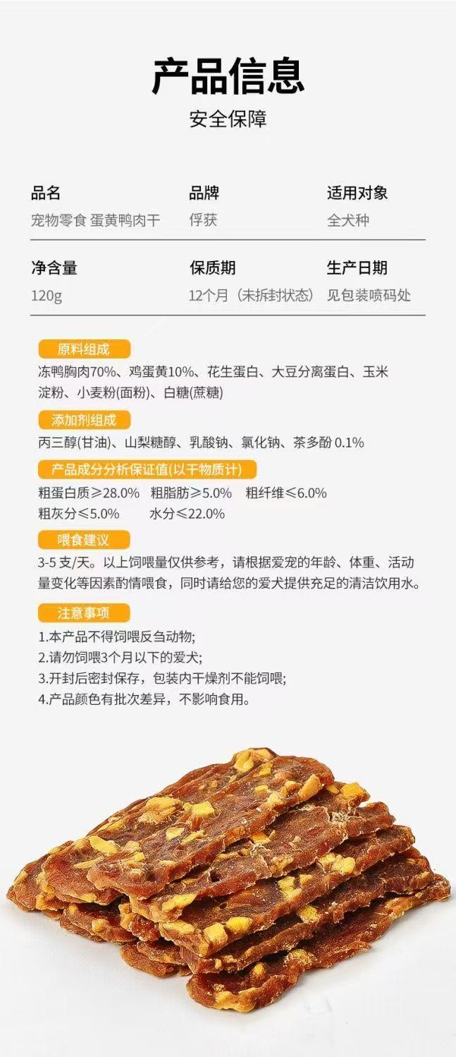 【爆款热卖】俘获G5蛋黄鸭肉干狗狗风干零食中小型犬训练鸭胸肉干营养烘干磨牙