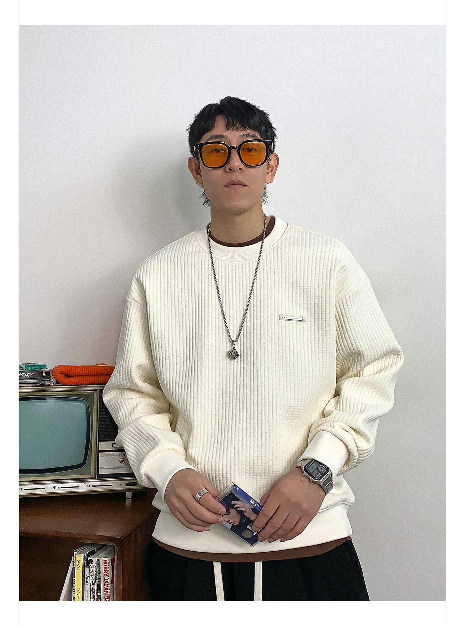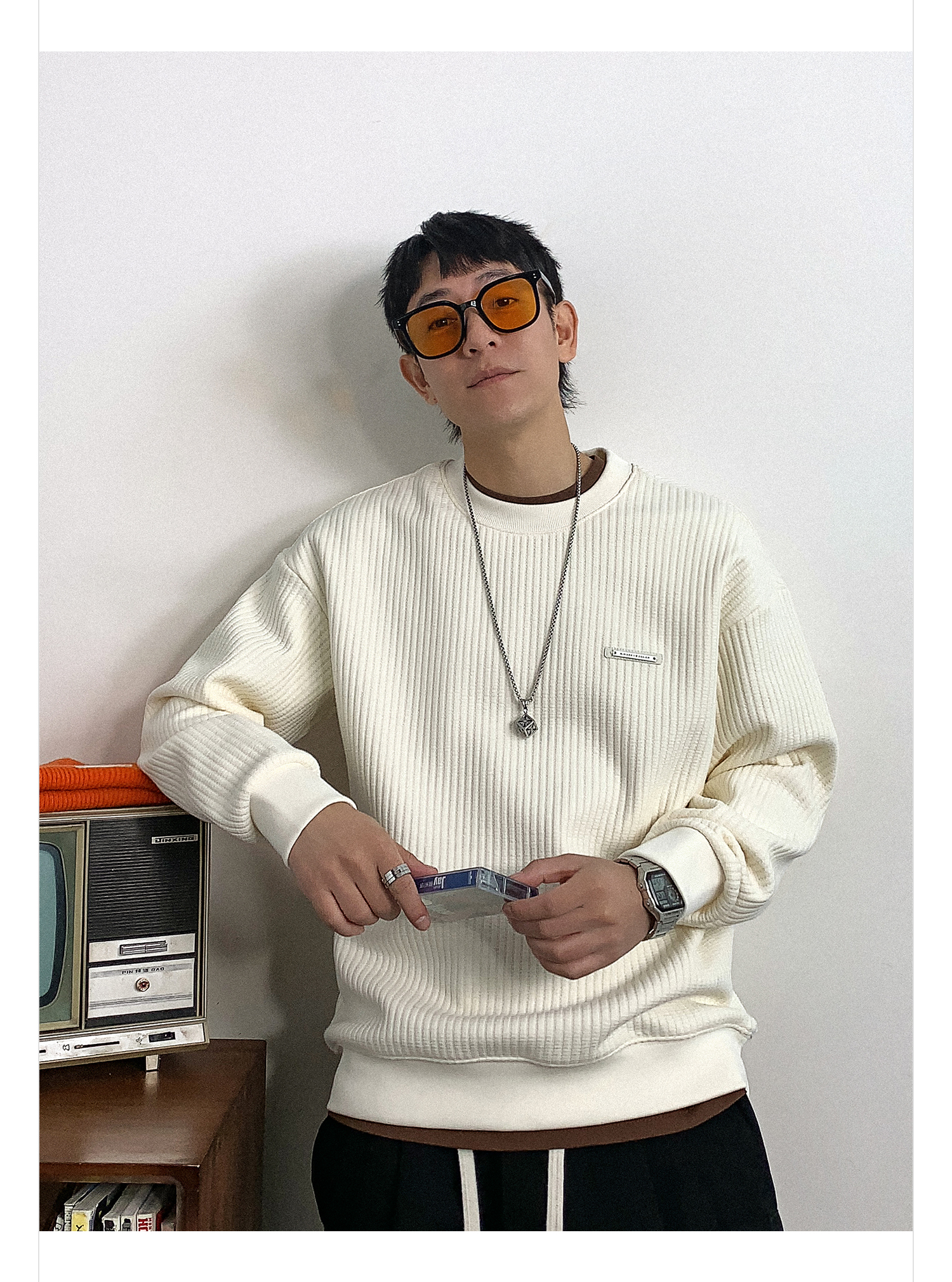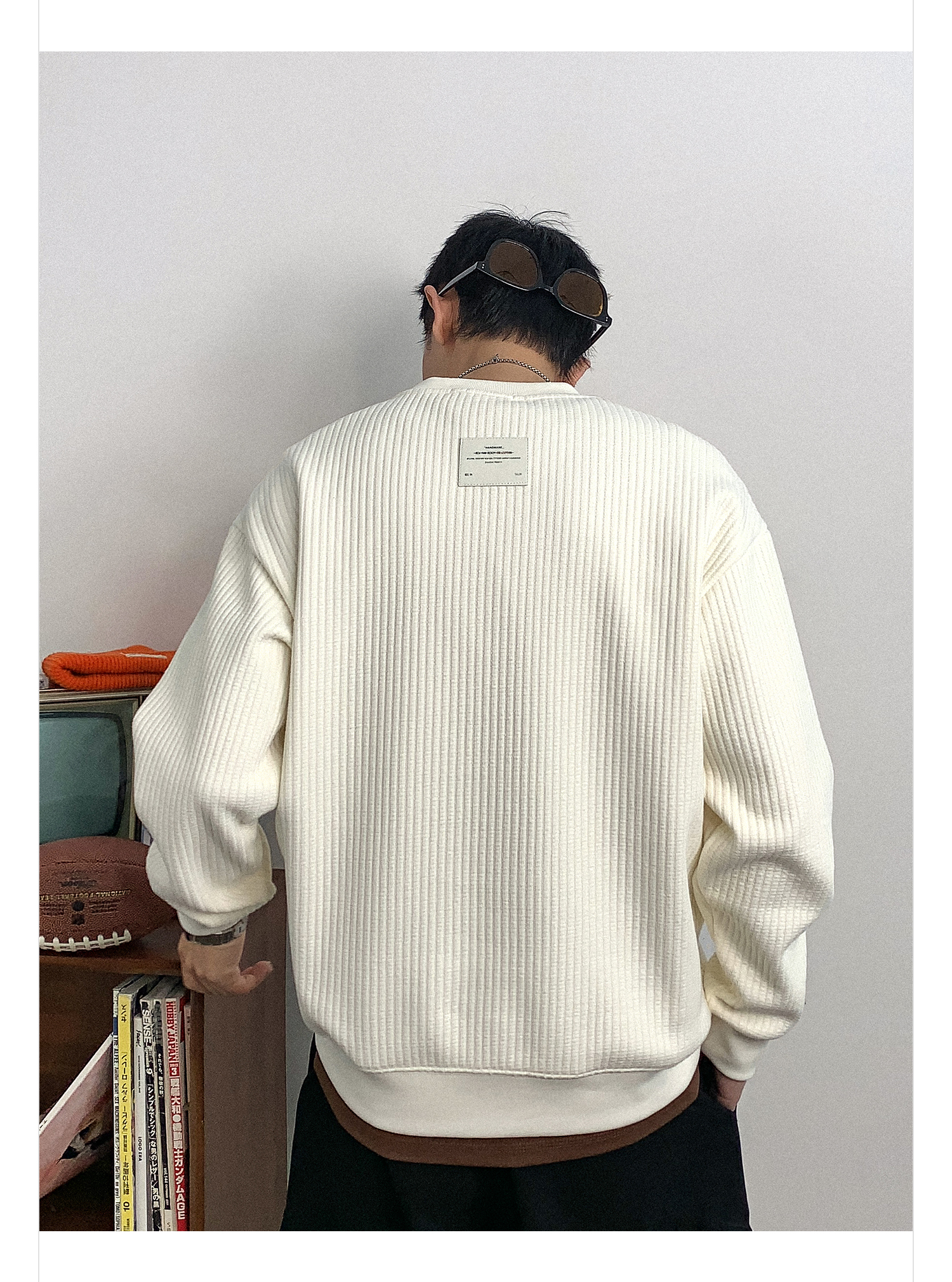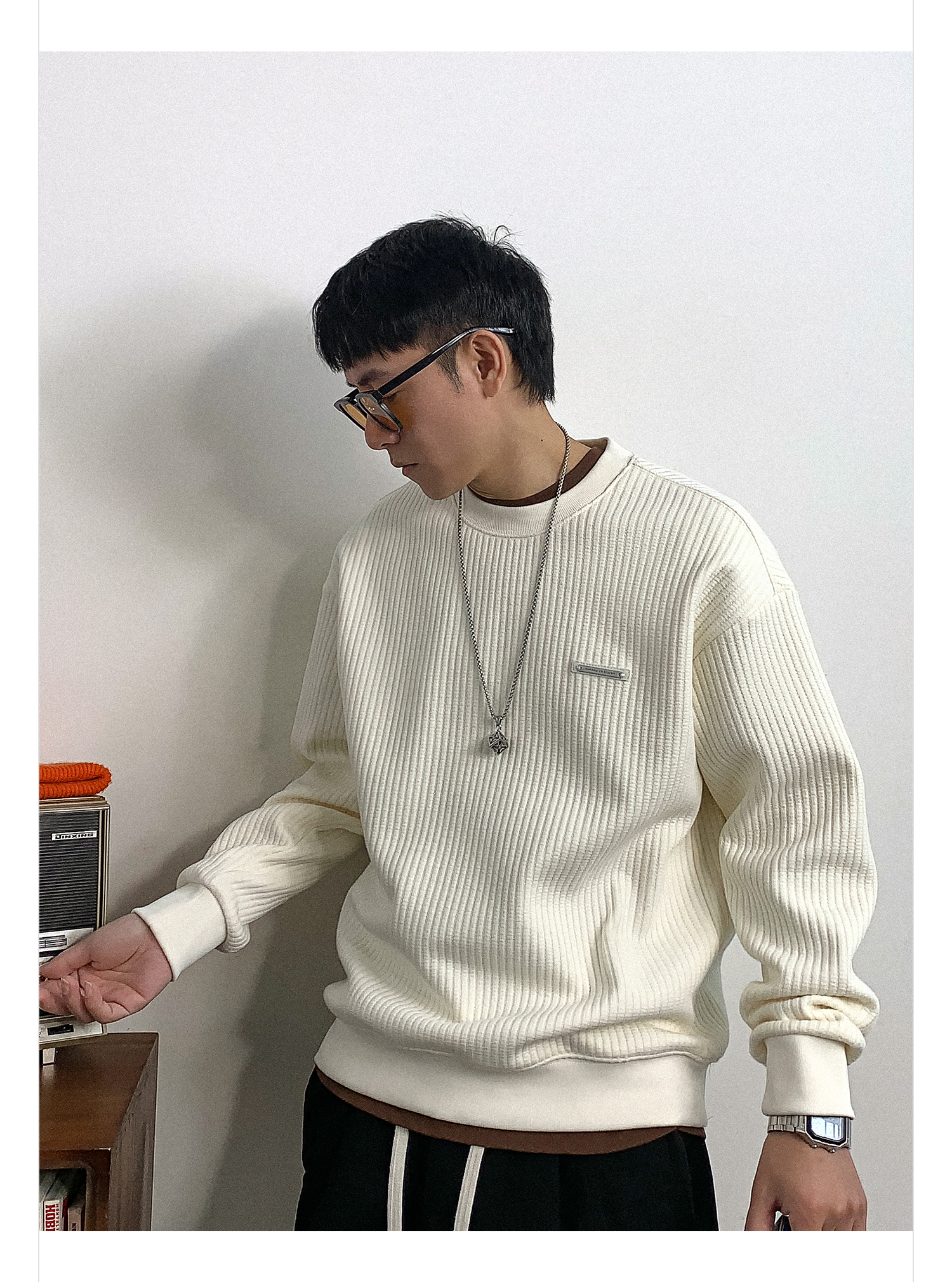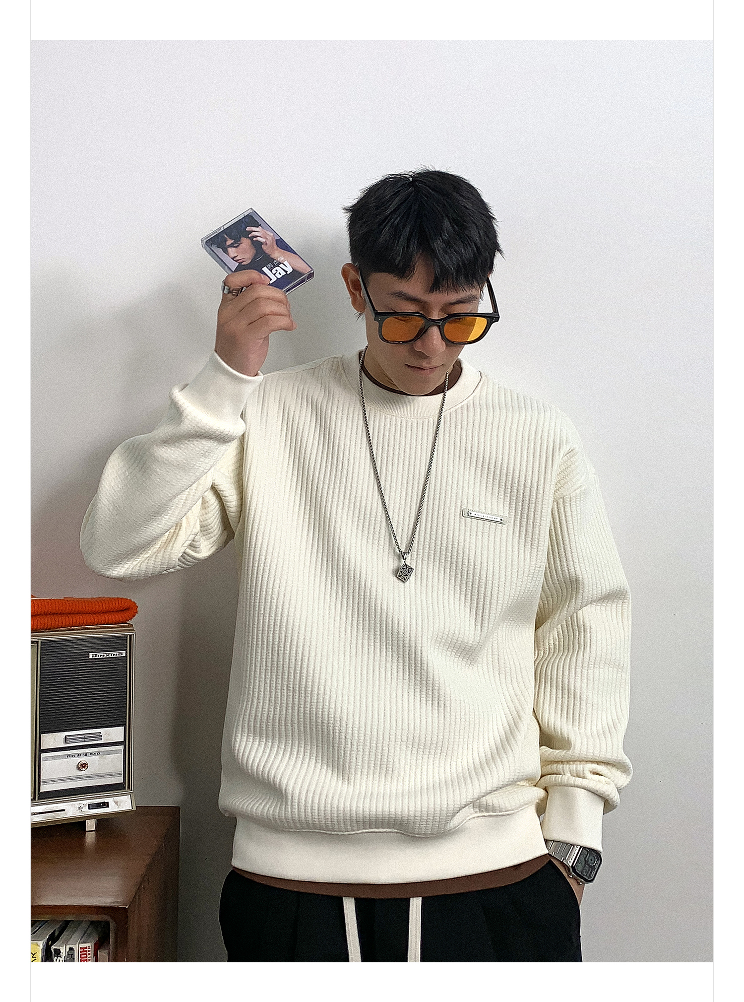 徐太浪时尚肌理纹圆领卫衣男秋冬季男装加绒宽松大码内搭打底上衣