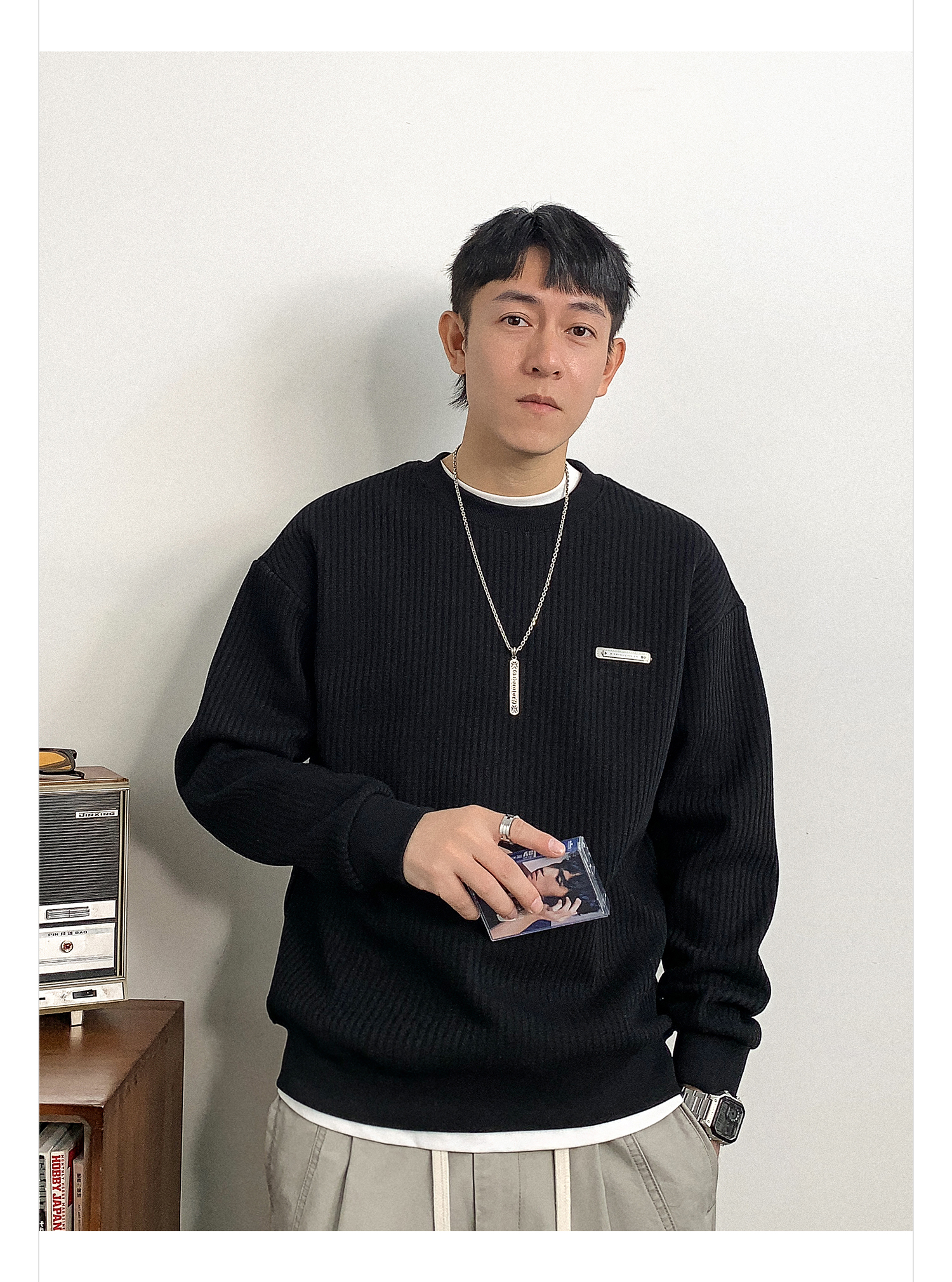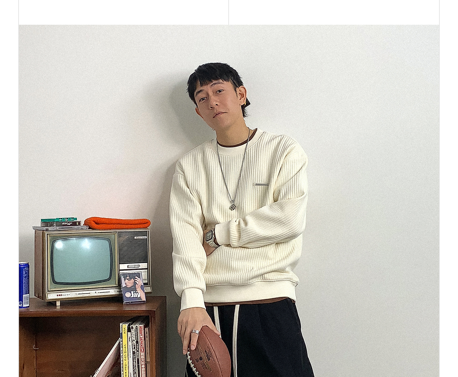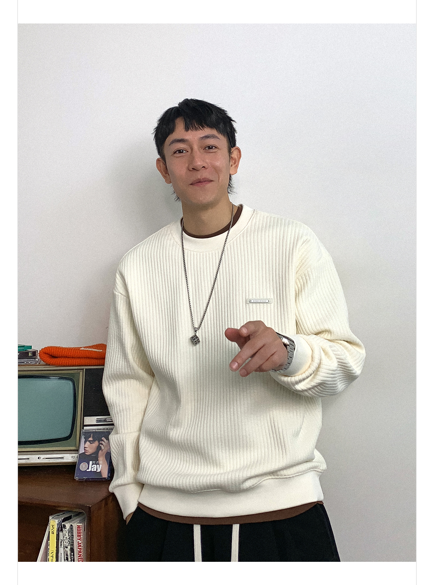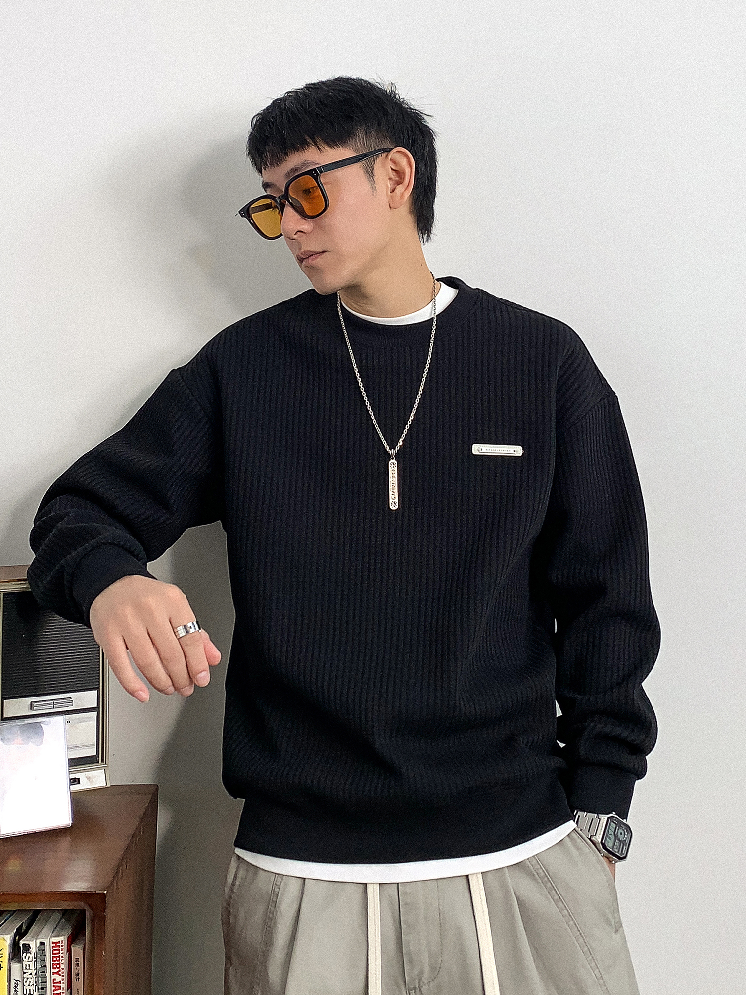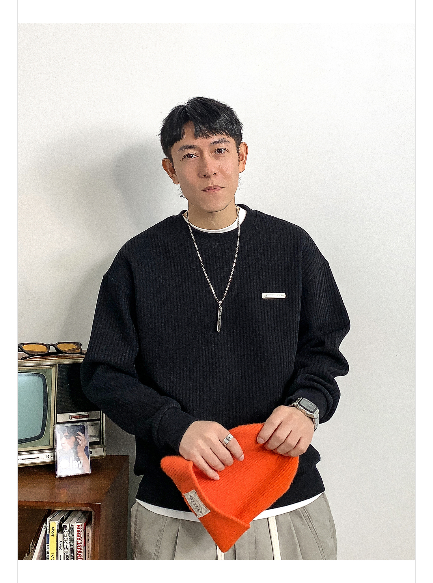 徐太浪时尚肌理纹圆领卫衣男秋冬季男装加绒宽松大码内搭打底上衣