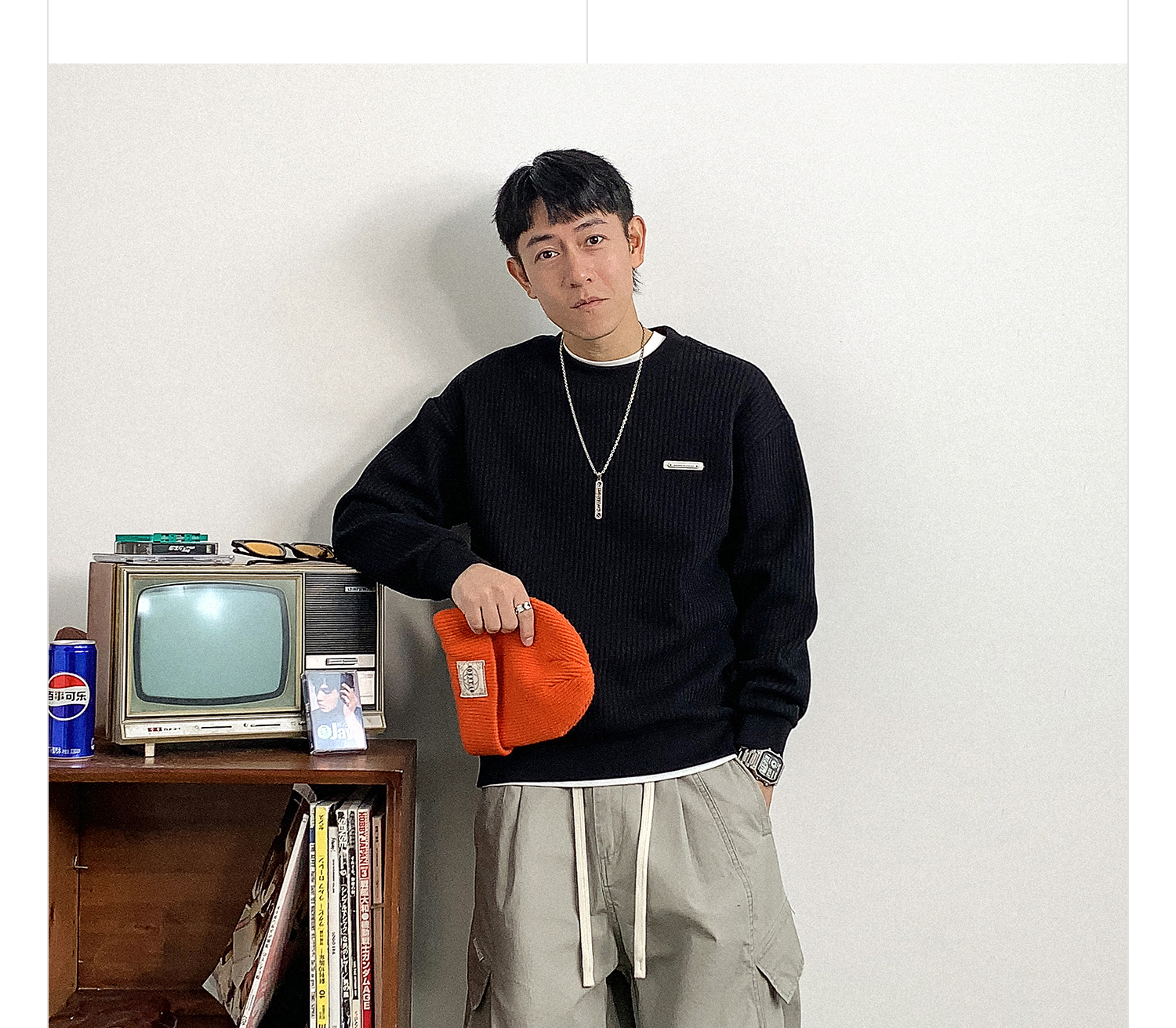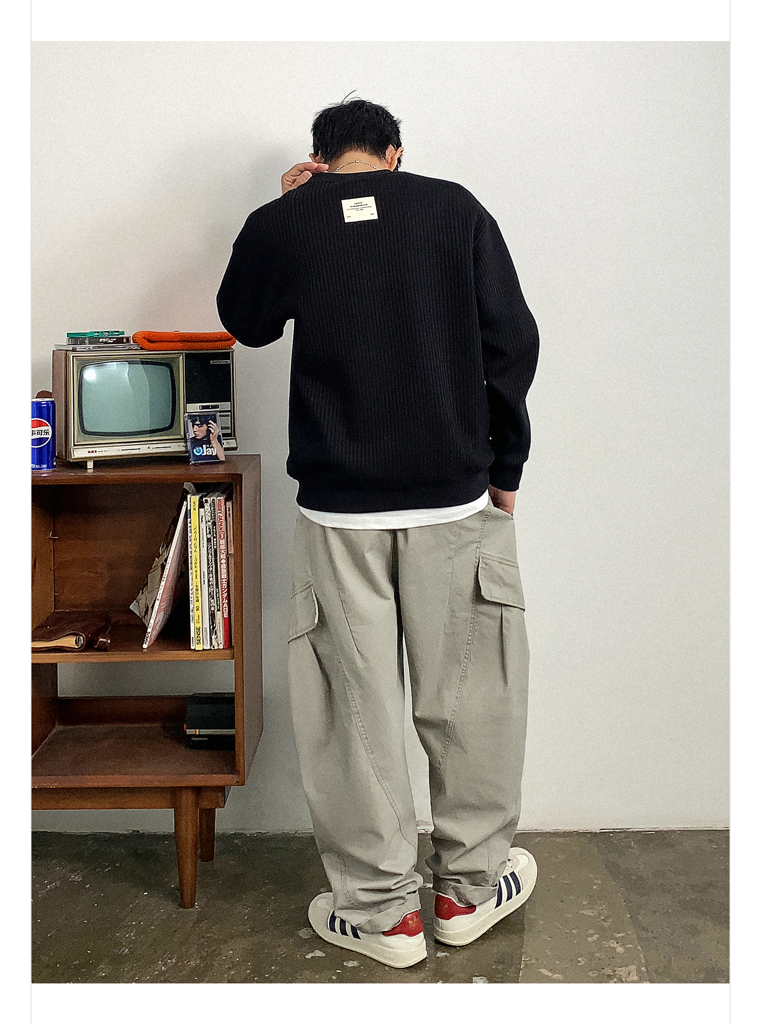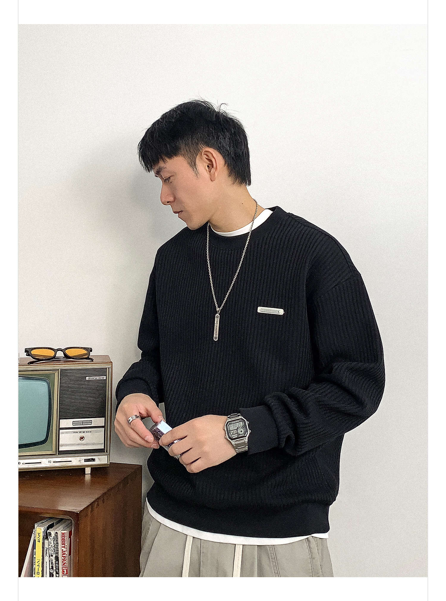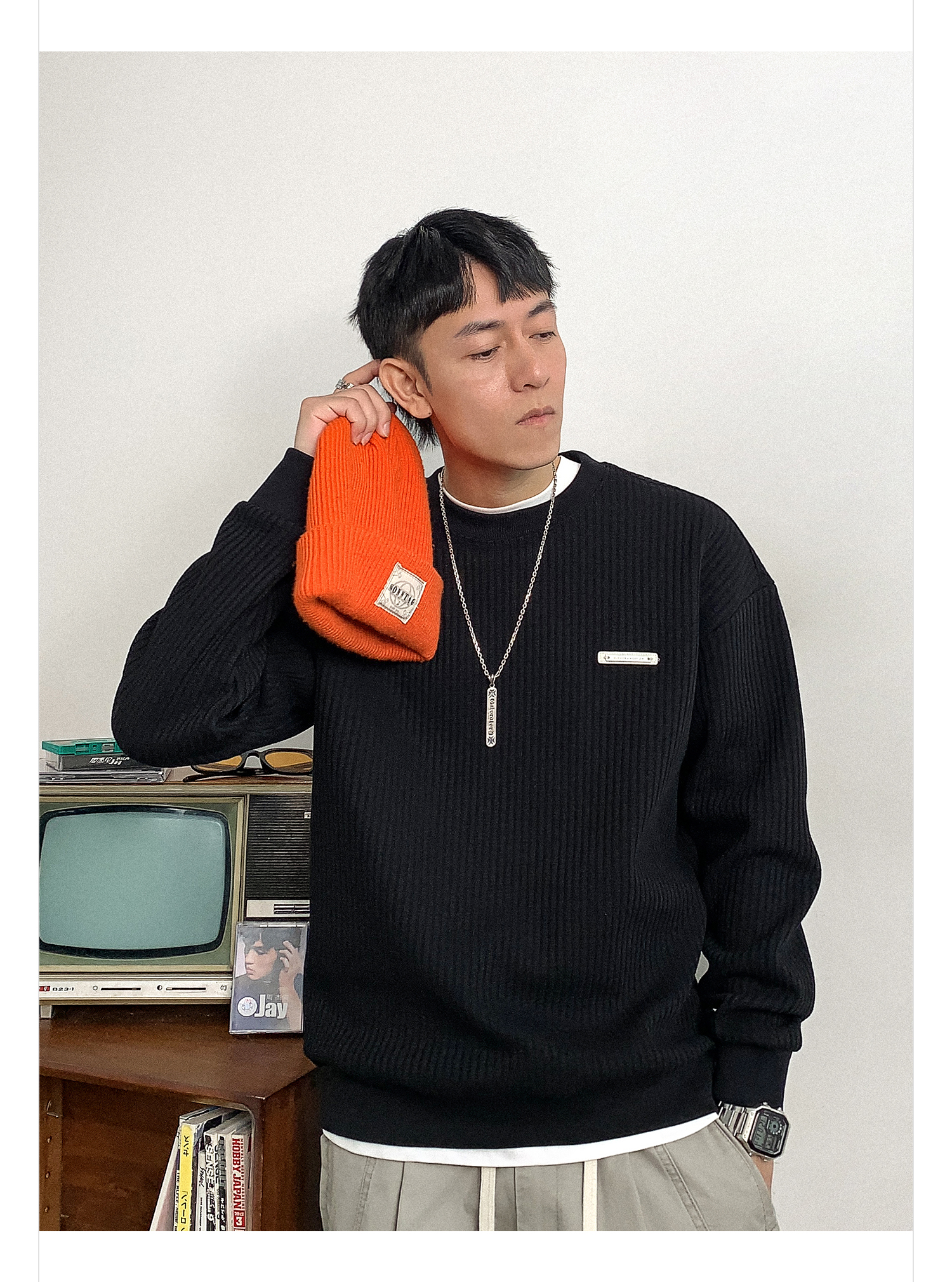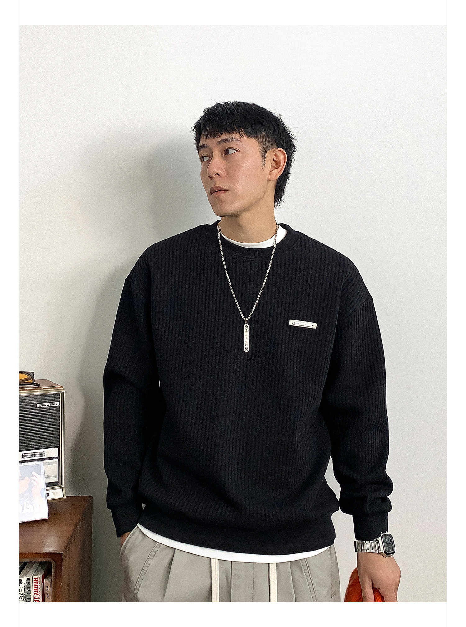 徐太浪时尚肌理纹圆领卫衣男秋冬季男装加绒宽松大码内搭打底上衣
