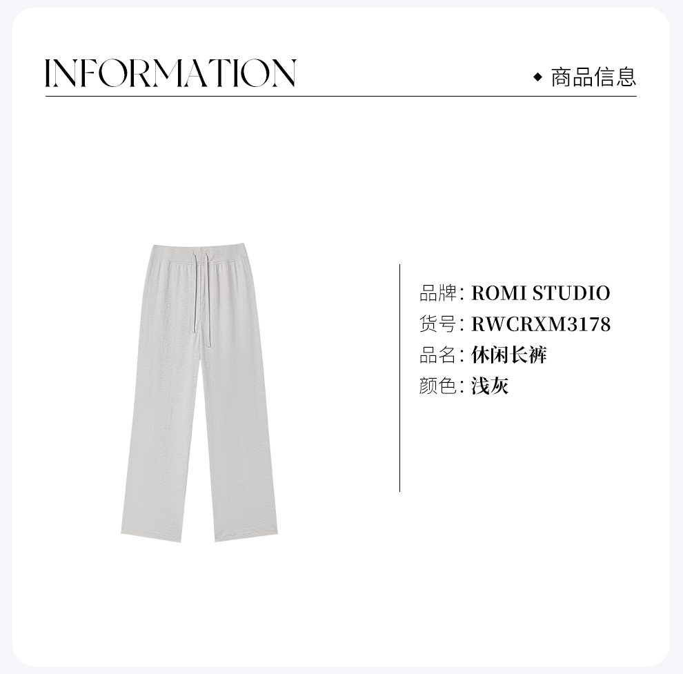 ROMI STUDIO“简约舒适”浅灰全棉轻柔松紧腰直筒休闲裤 RWCRXM3178(现货)