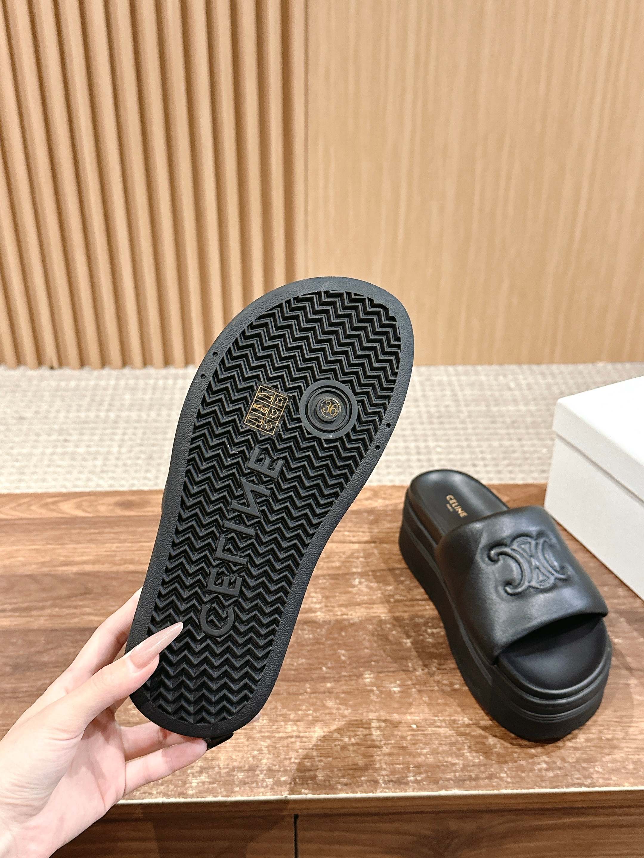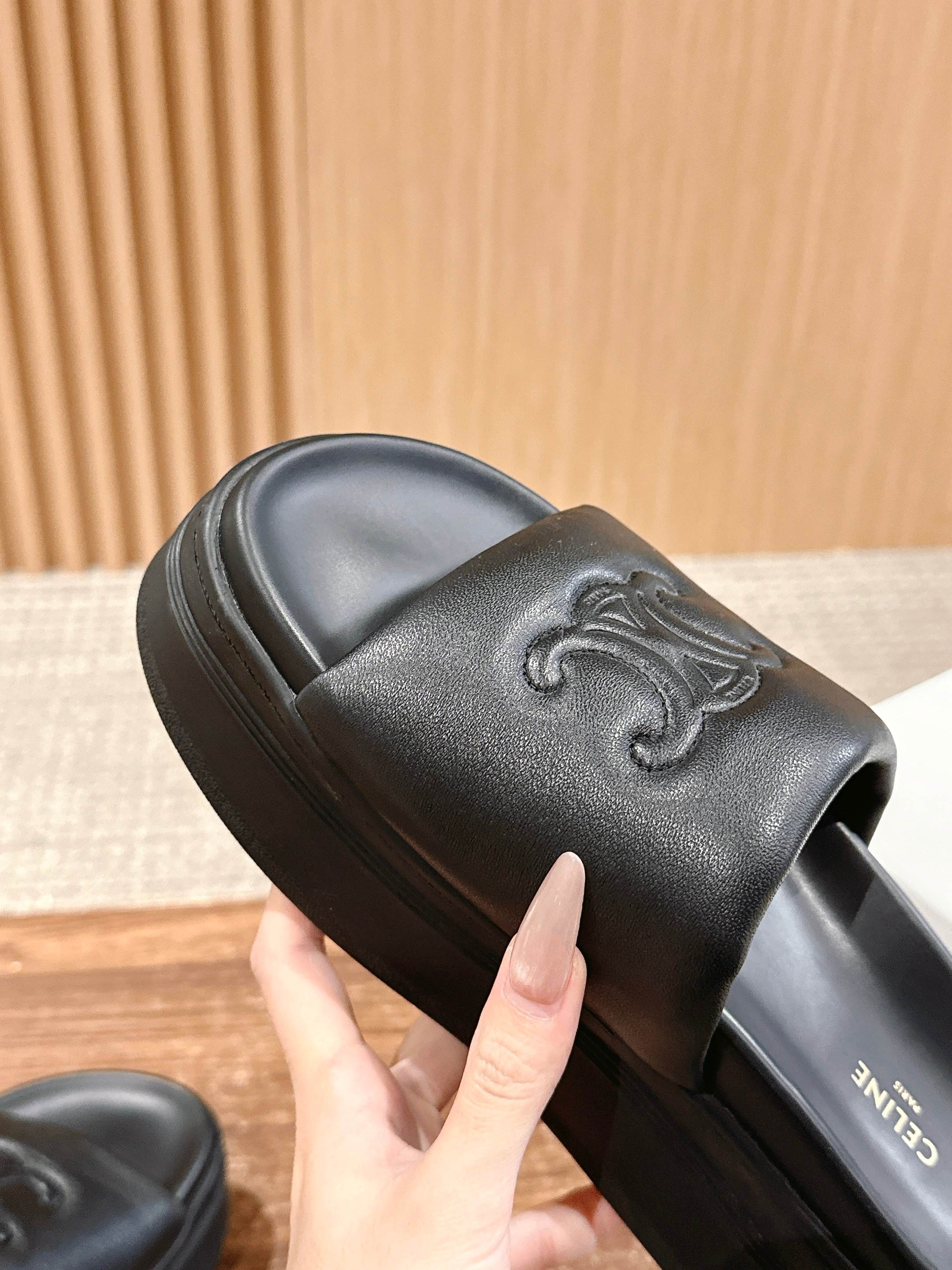 𝐂𝐞𝐥𝐢𝐧𝐞 𝟮𝟬𝟮𝟱/𝐬𝐬 思琳春夏新款厚底羊皮拖鞋