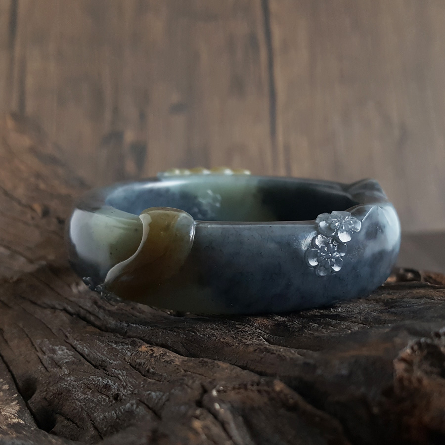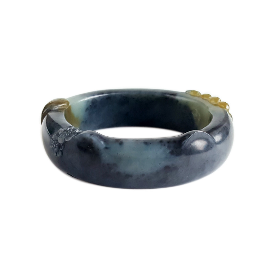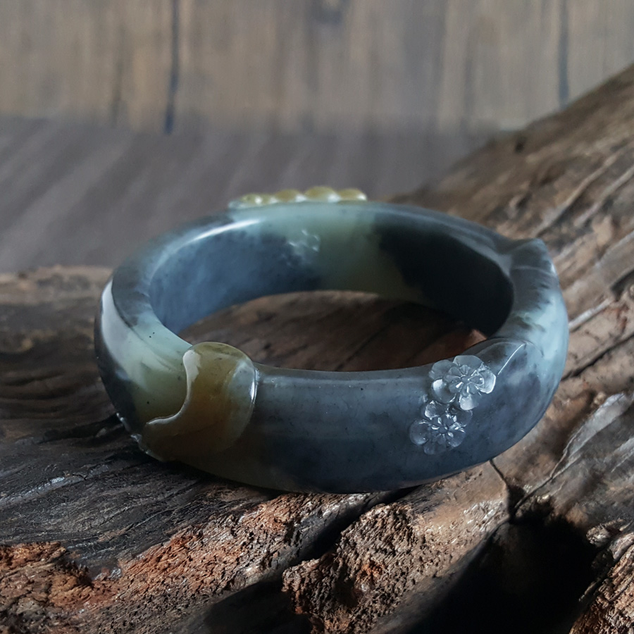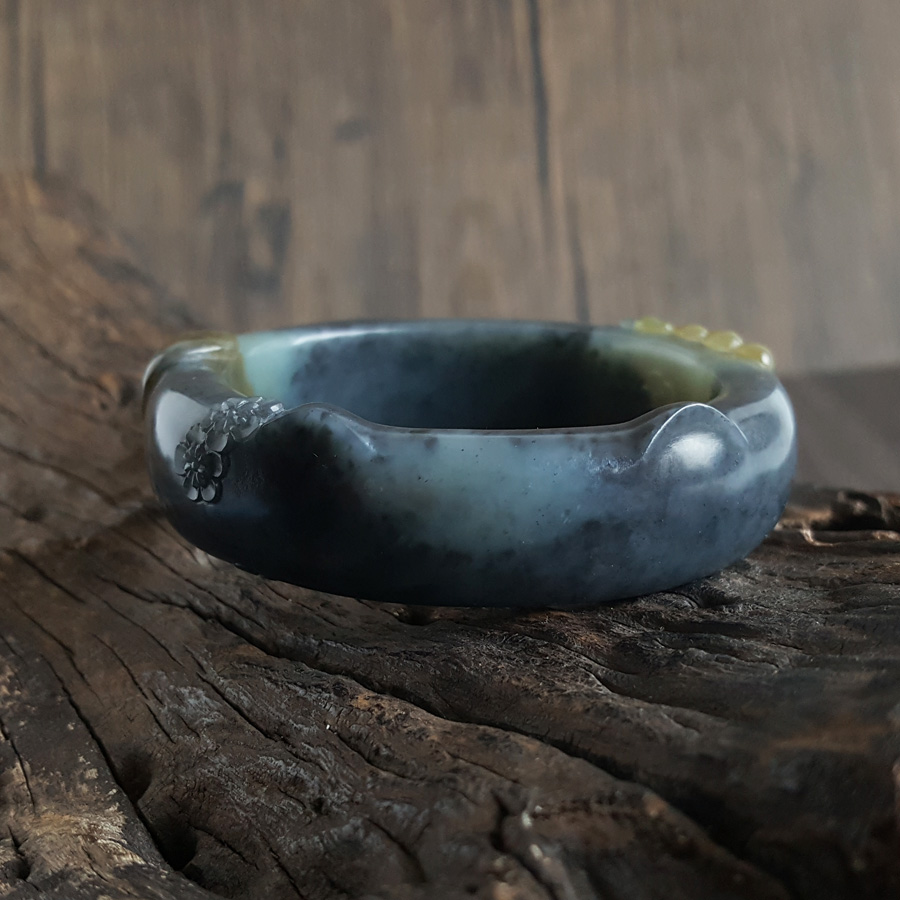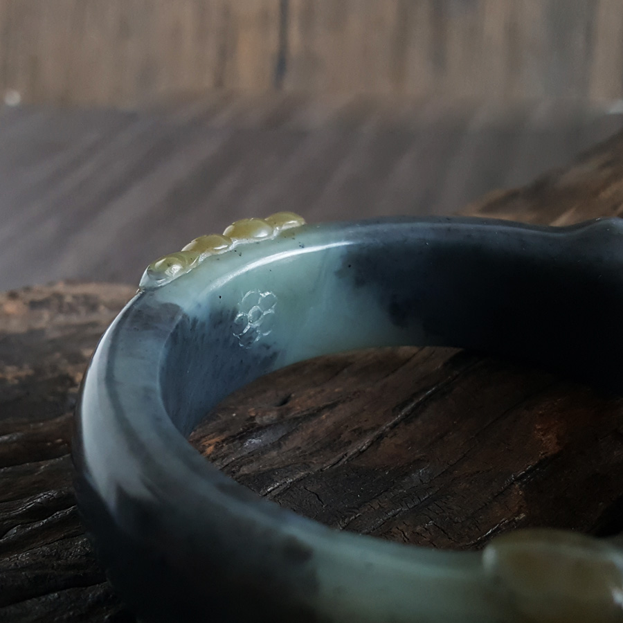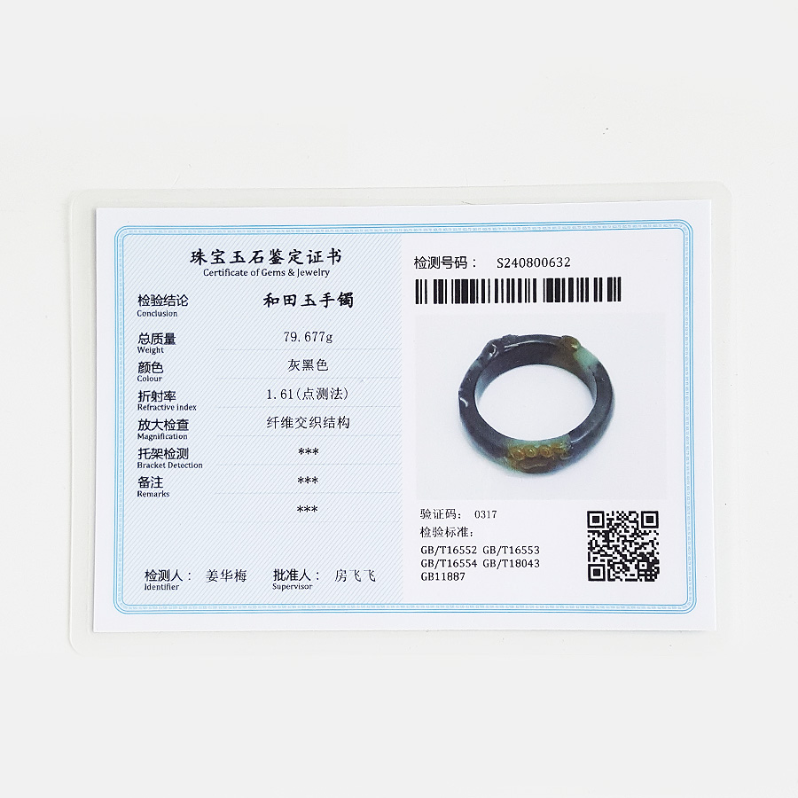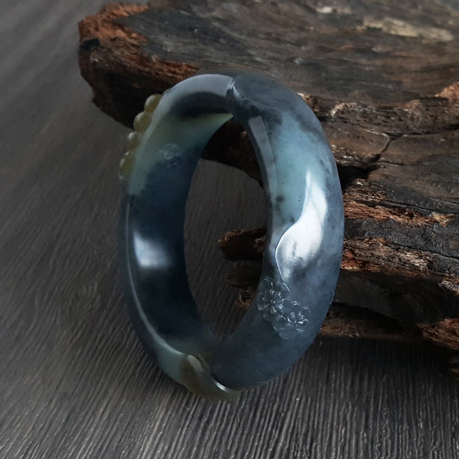 【天然正品】天然精品无杂裂青花籽料梅花猫咪凤系造型54号厚桩和田玉手镯 现售价:3880!160824NJ05