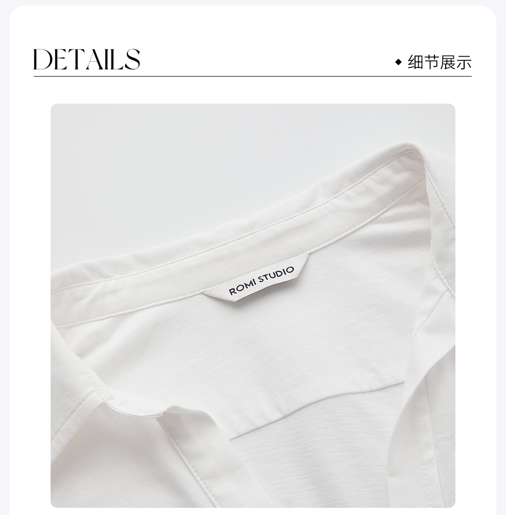 ROMI STUDIO 100%匹马棉轻柔舒适宽松V领白色针织衬衫 RWCSST3285
