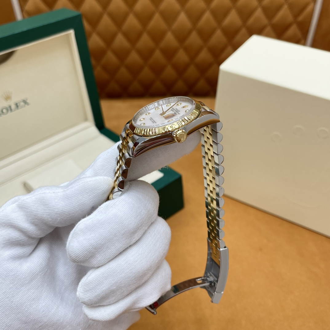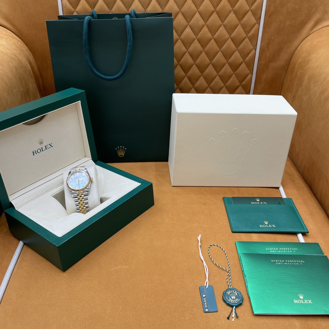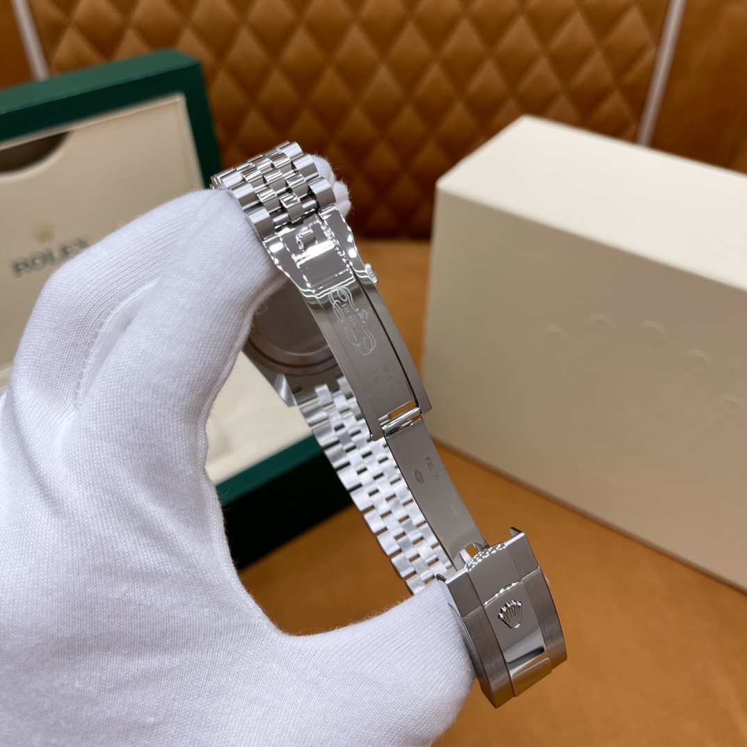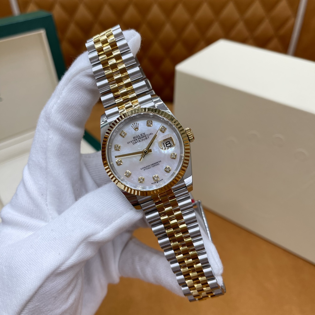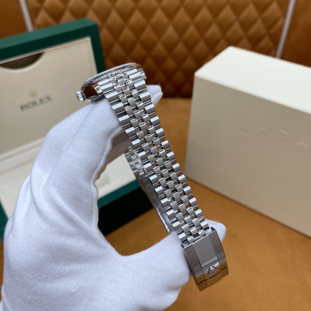 🏷️日志型系列m126233-0023 采用原版定制3235自动机械机芯,厚度宽度一致☑️机芯全面体现劳力士的创新技术,在精准可靠、动力储备、抗震防磁以及方便使用等方面,做了进一步的提升。 蚝式钢表壳搭配白珍珠母盘钻石刻度,表壳及表耳两侧折射出淡雅光泽,令36毫米蚝式表壳的轮廓更突出,倍添魅力。 表带质感拉满,推拉顺滑,高难度的龟壳外观开启方式轻易,锁扣紧密,戴起来非常踏实! 对版的日历字体,防反光凸透式放大日历窗,每个数字打磨精细,方便查看~ 尺寸:36mm