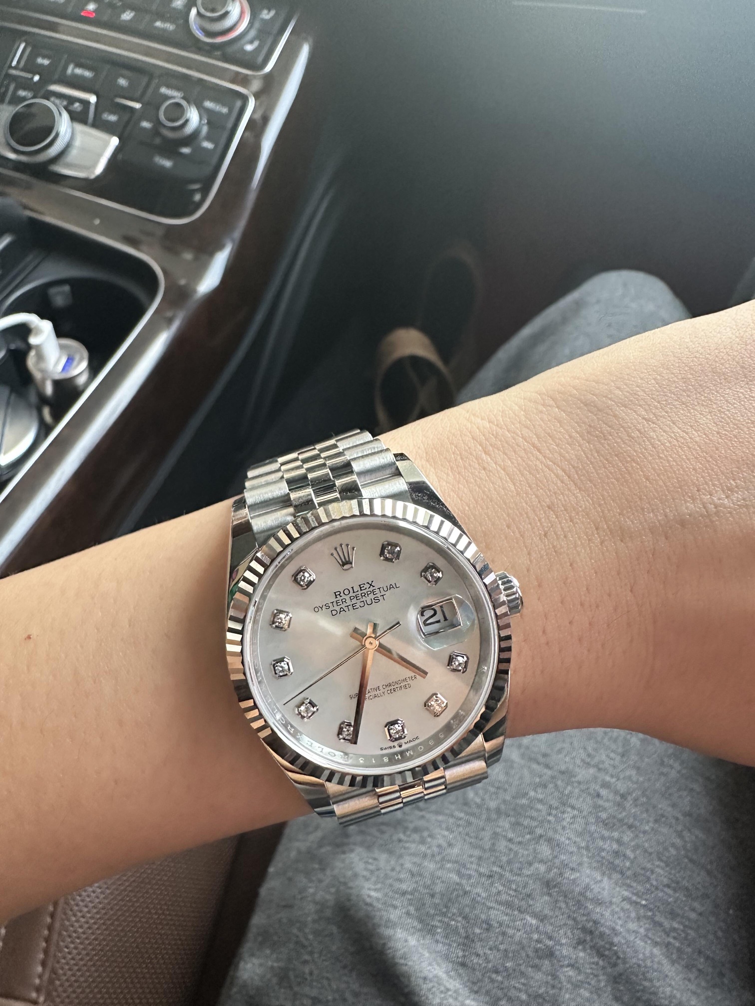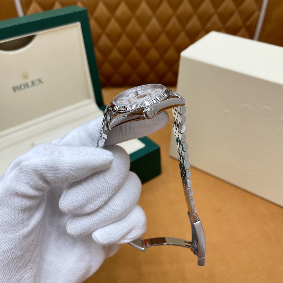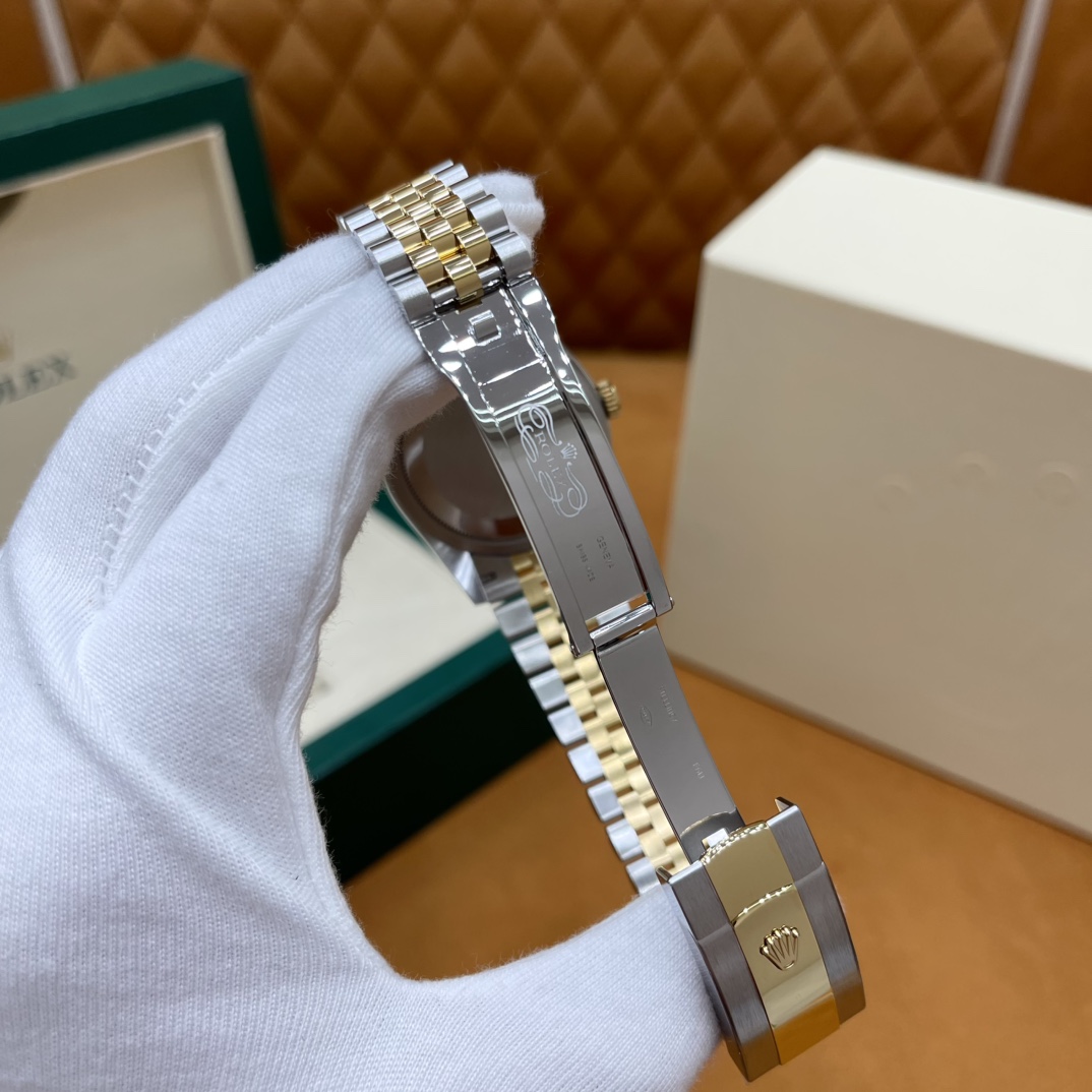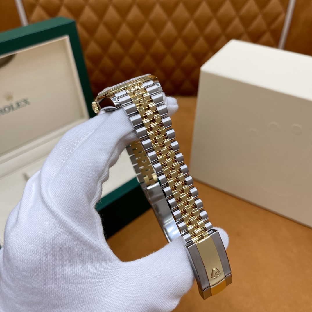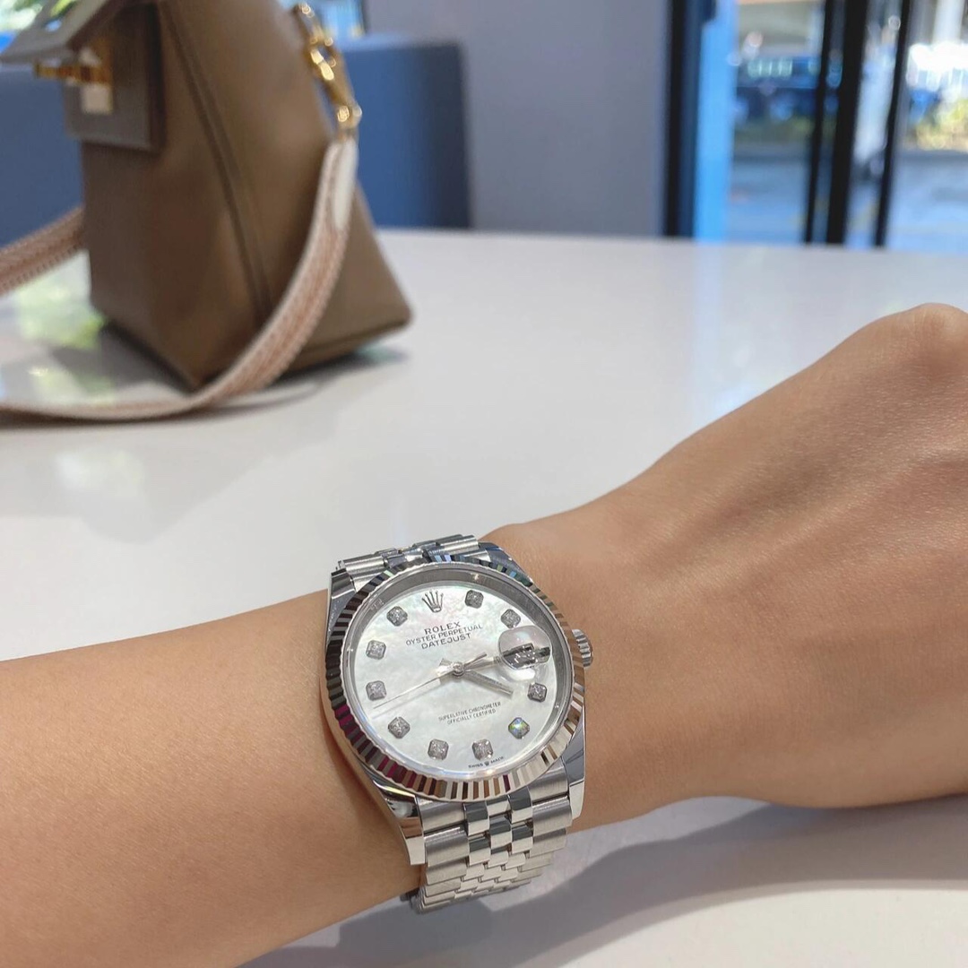 🏷️日志型系列m126233-0023 采用原版定制3235自动机械机芯,厚度宽度一致☑️机芯全面体现劳力士的创新技术,在精准可靠、动力储备、抗震防磁以及方便使用等方面,做了进一步的提升。 蚝式钢表壳搭配白珍珠母盘钻石刻度,表壳及表耳两侧折射出淡雅光泽,令36毫米蚝式表壳的轮廓更突出,倍添魅力。 表带质感拉满,推拉顺滑,高难度的龟壳外观开启方式轻易,锁扣紧密,戴起来非常踏实! 对版的日历字体,防反光凸透式放大日历窗,每个数字打磨精细,方便查看~ 尺寸:36mm