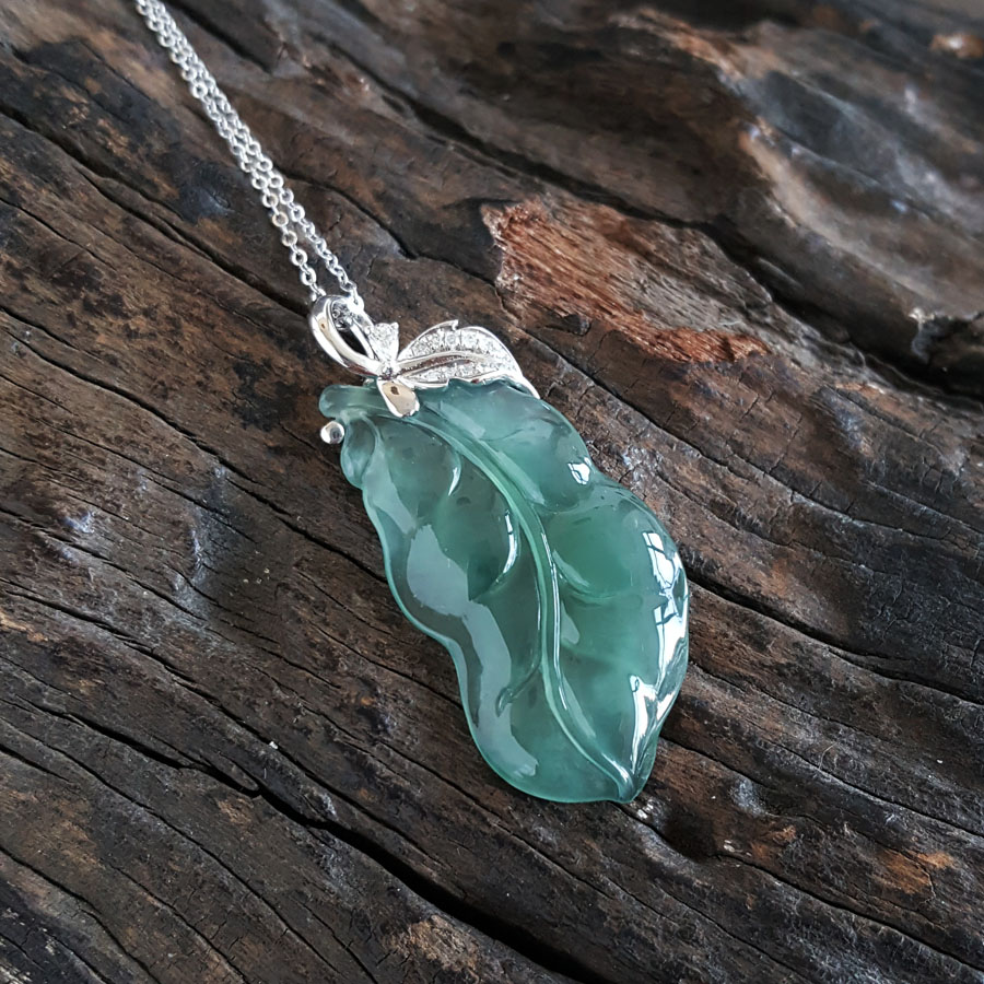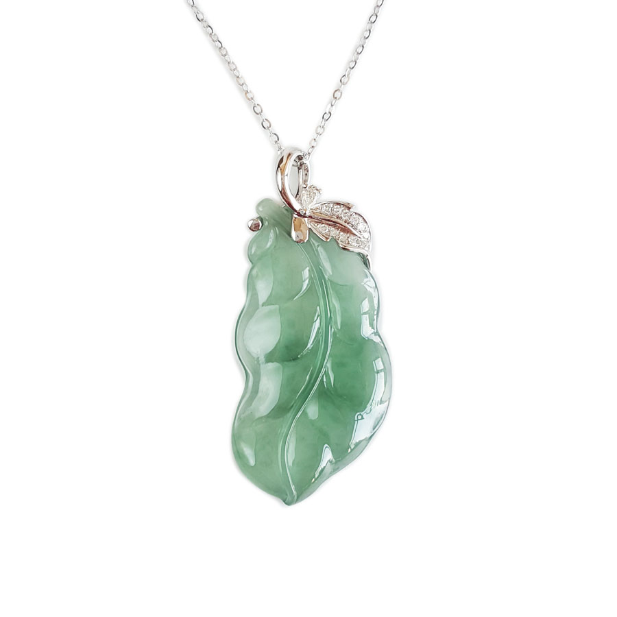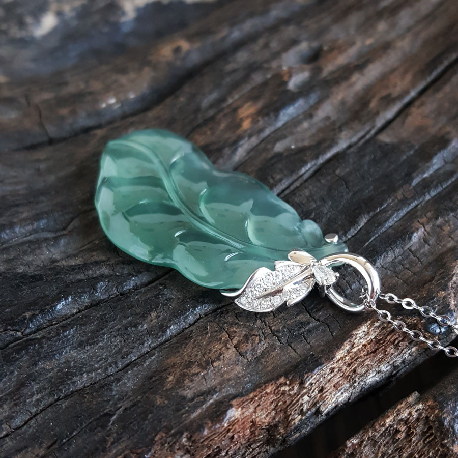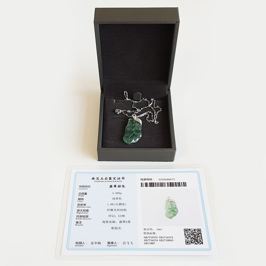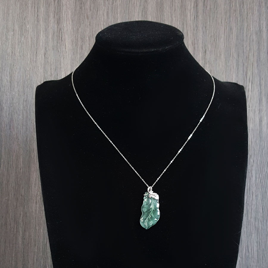 名称 | AU750白金镶钻镶天然冰种叶子(金枝玉叶)翡翠吊坠项链 |
