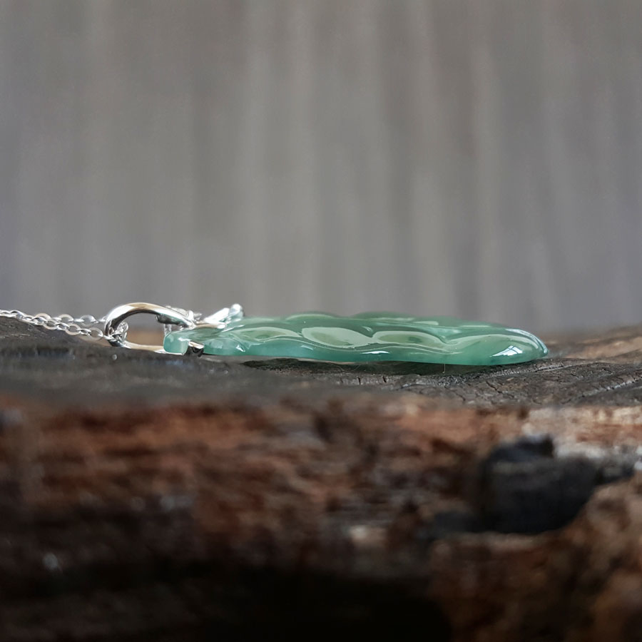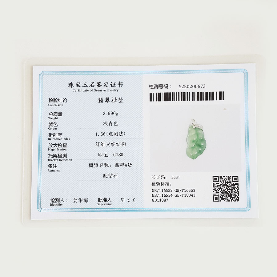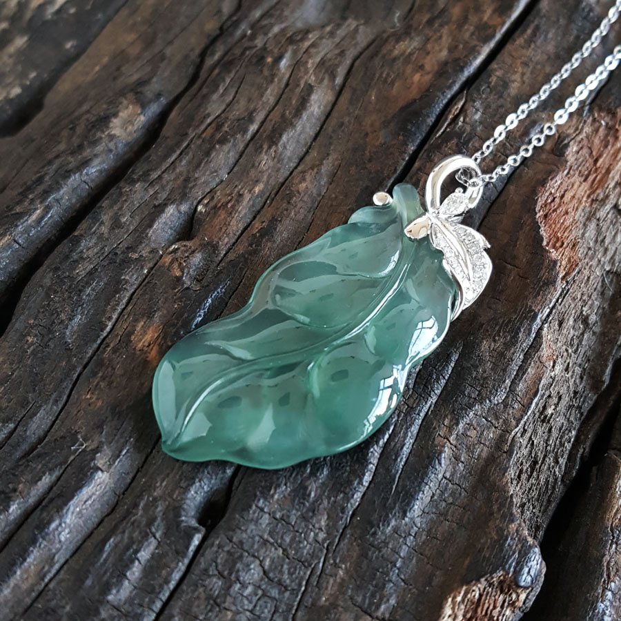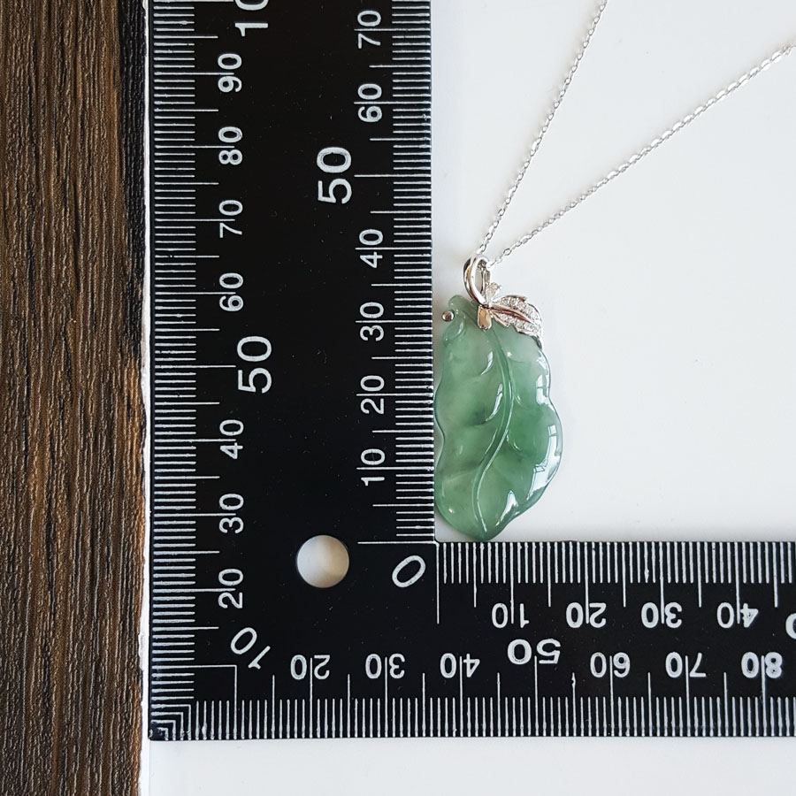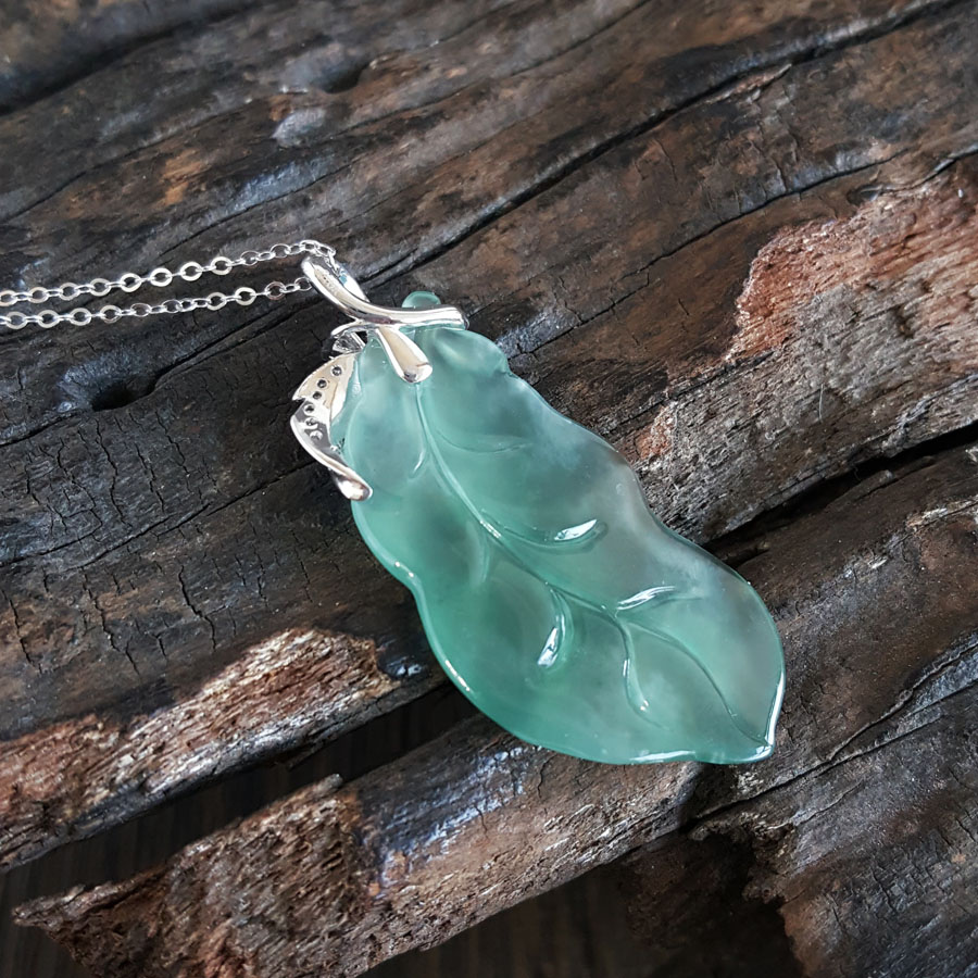 名称 | AU750白金镶钻镶天然冰种叶子(金枝玉叶)翡翠吊坠项链 |