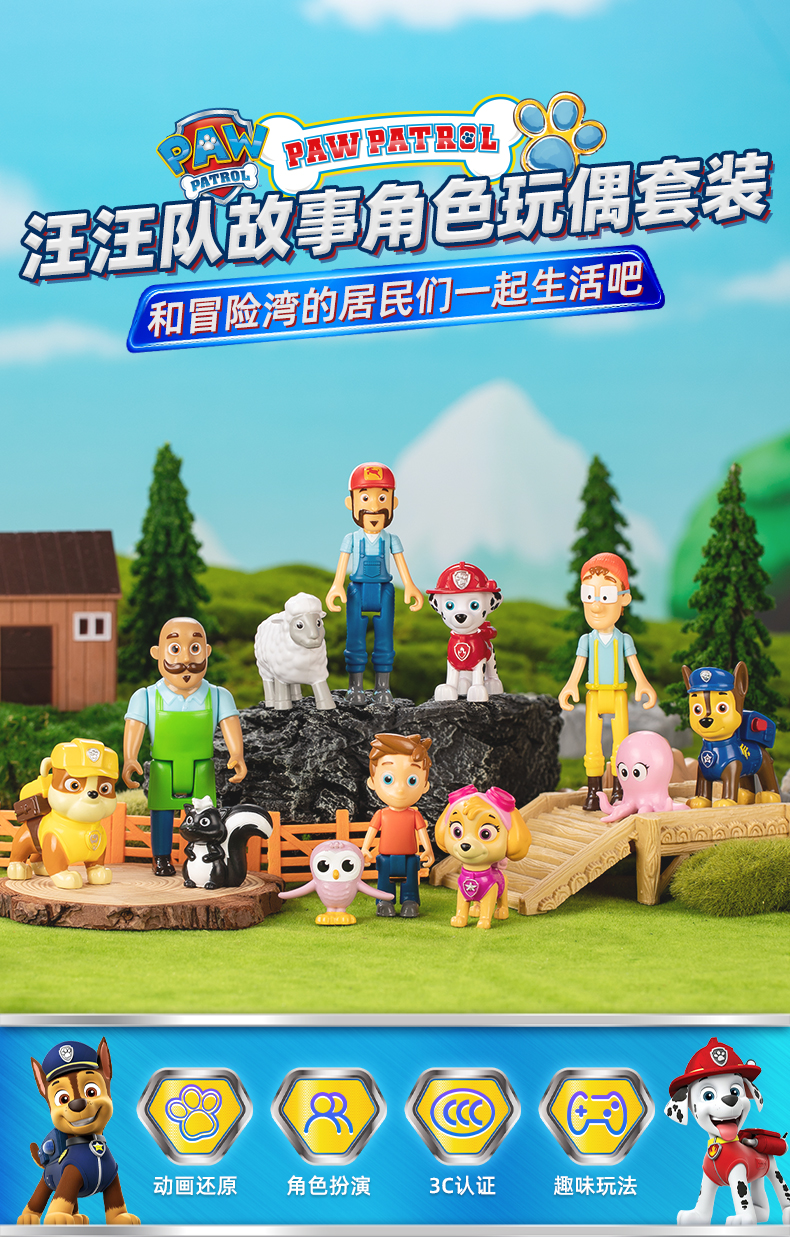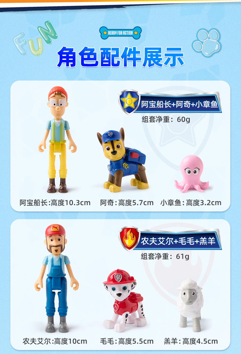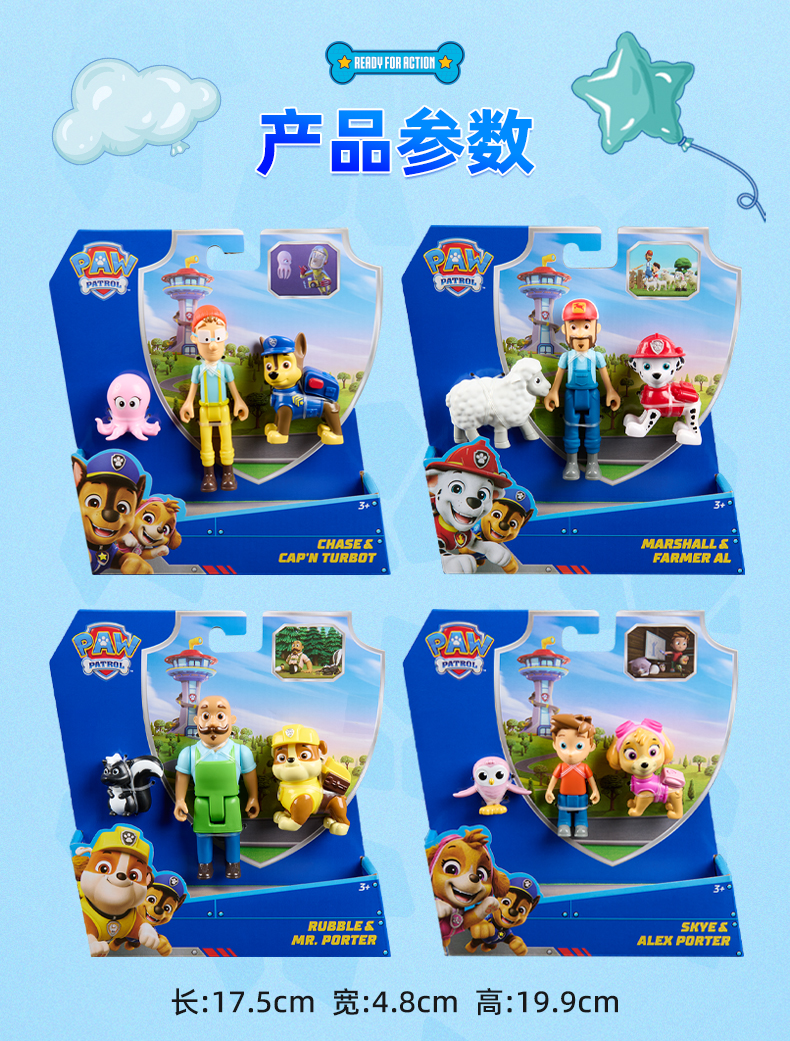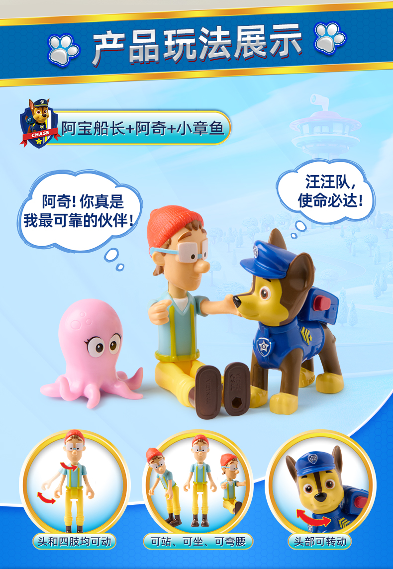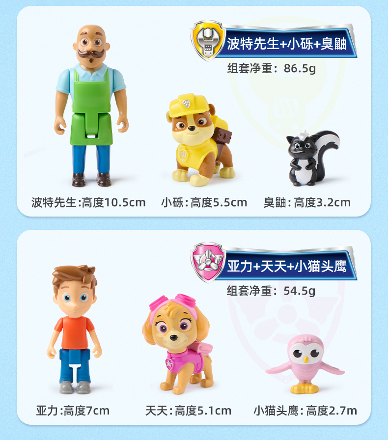 新品汪汪队立大功故事角色玩偶阿奇天天阿宝船长公仔套装狗狗周边